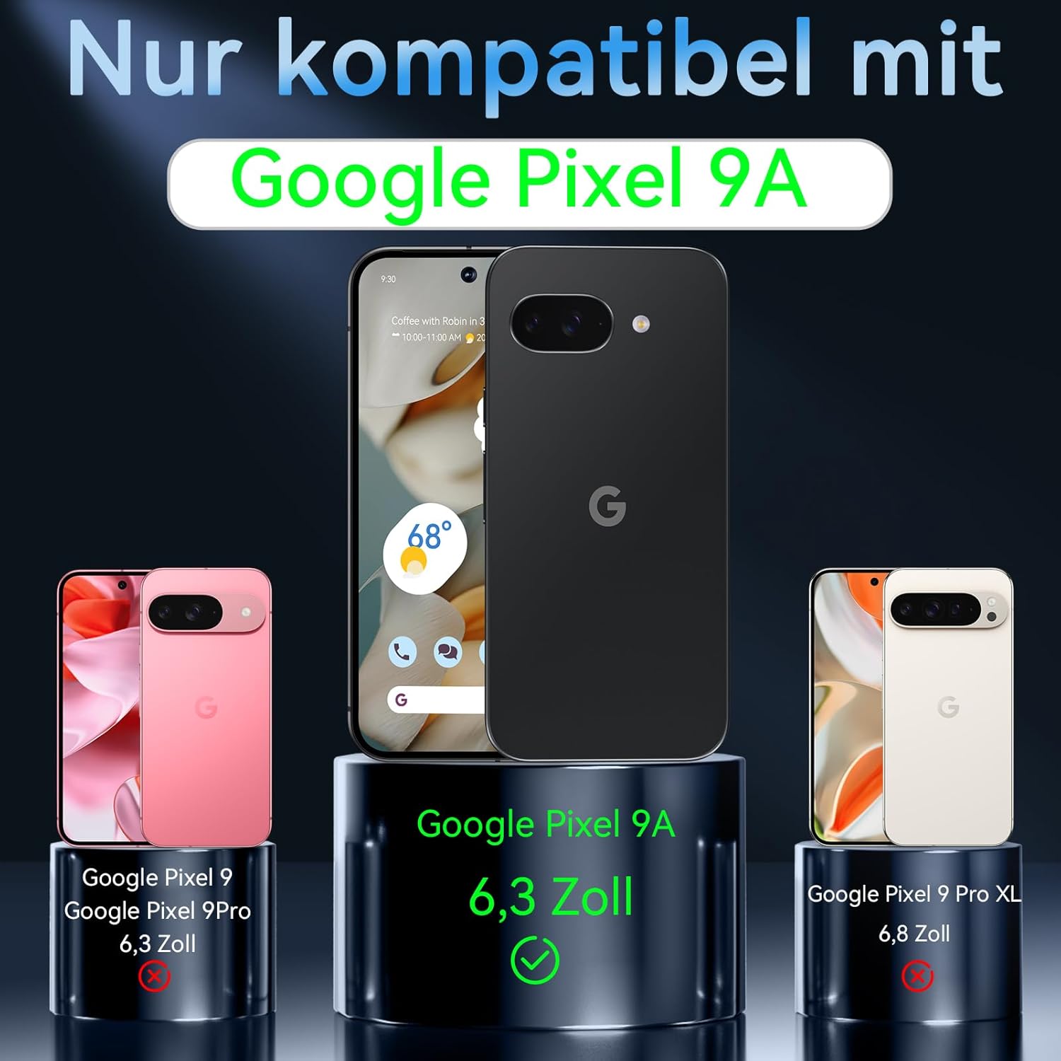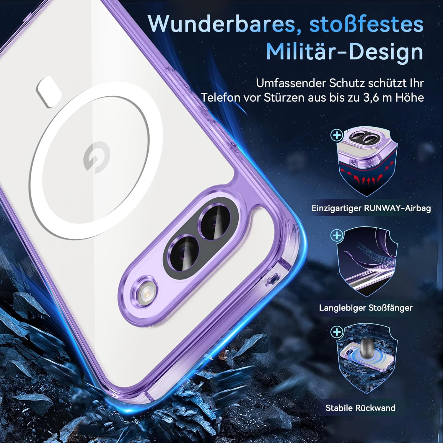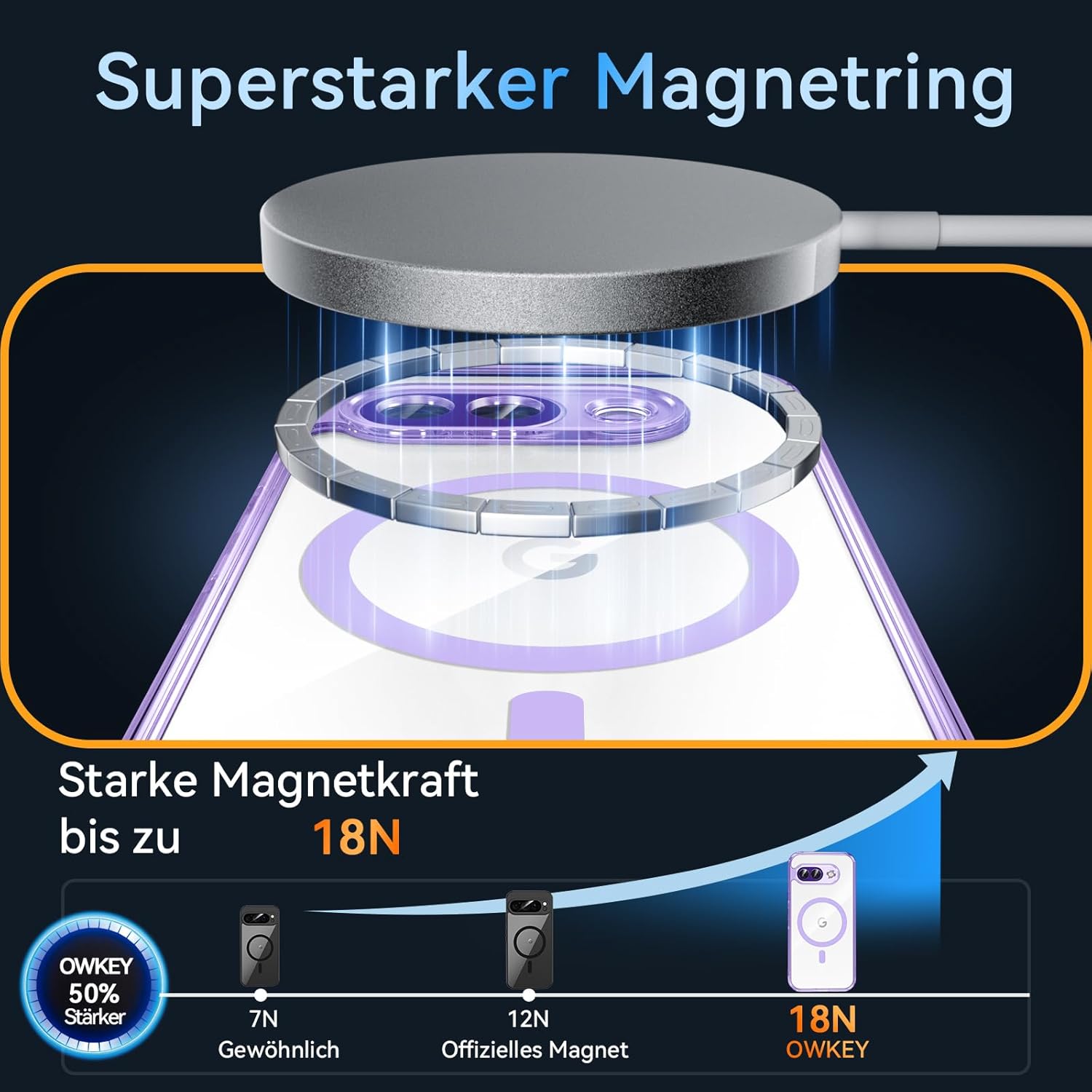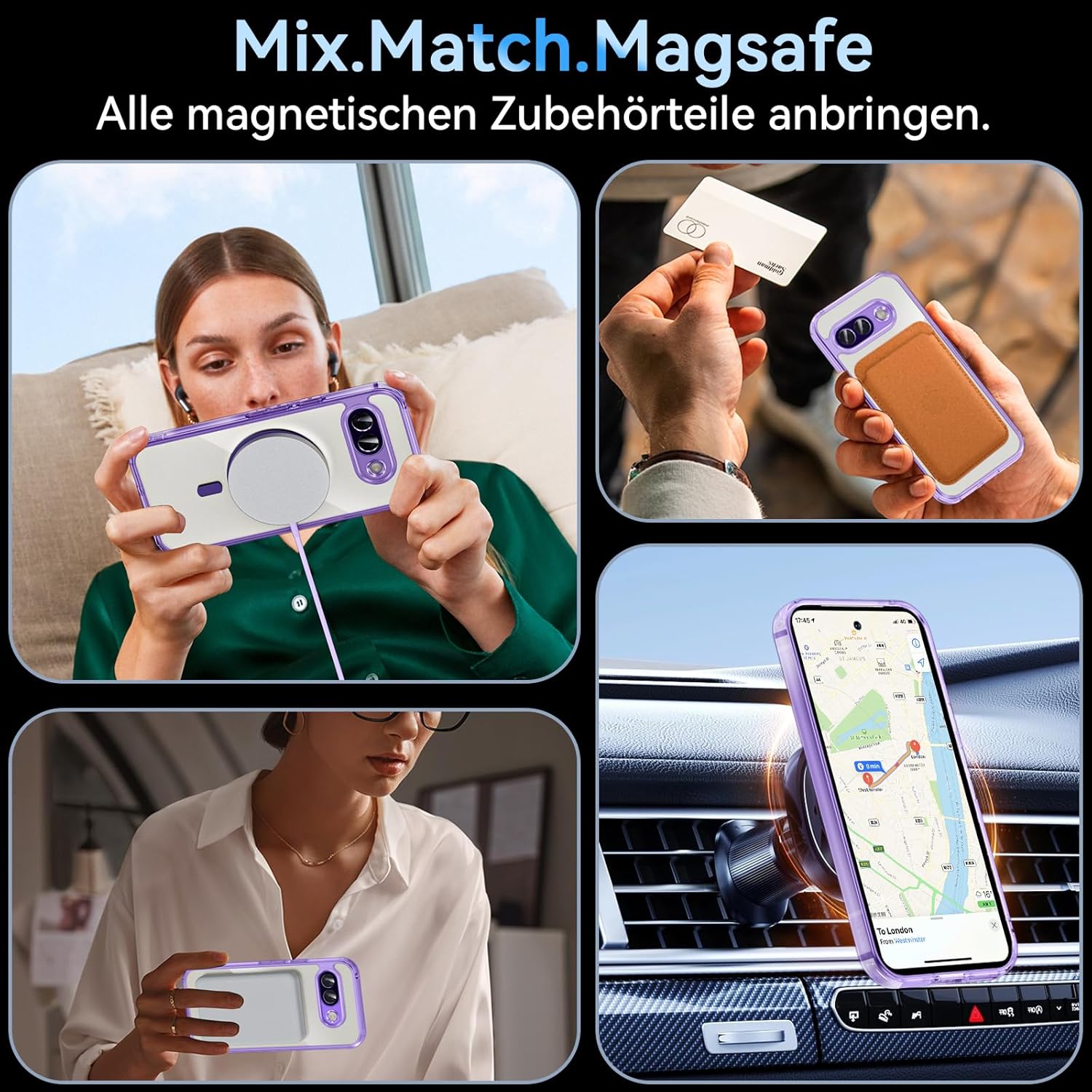 OWKEY Калъф за Google Pixel 9A, Магнитен калъф за мобилен телефон за MagSafe със защитно стъкло, тънък военен защитен калъф за Google Pixel 9A (лилав)