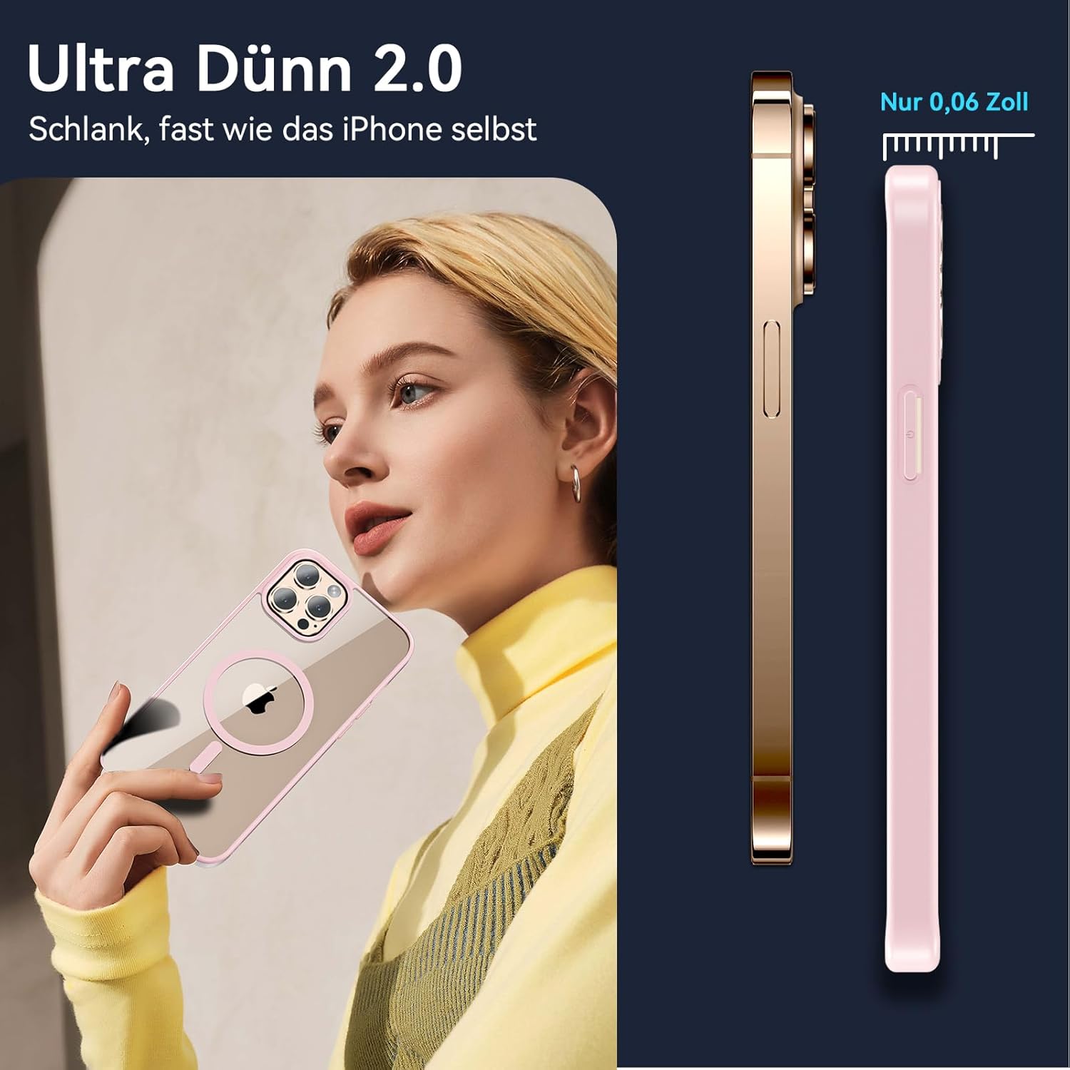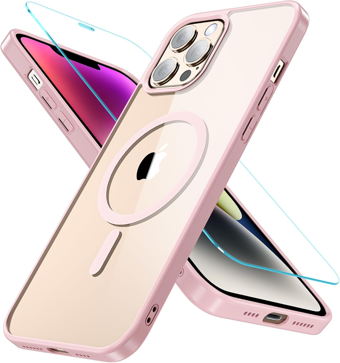 OWKEY Калъф за iPhone 12 Pro Max с Magsafe, Магнитен калъф за мобилен телефон за iPhone 12 Pro Max 6.7 инча със закалено стъкло, [Военен клас защита] Удароустойчив тънък защитен калъф за iPhone 12 Pro