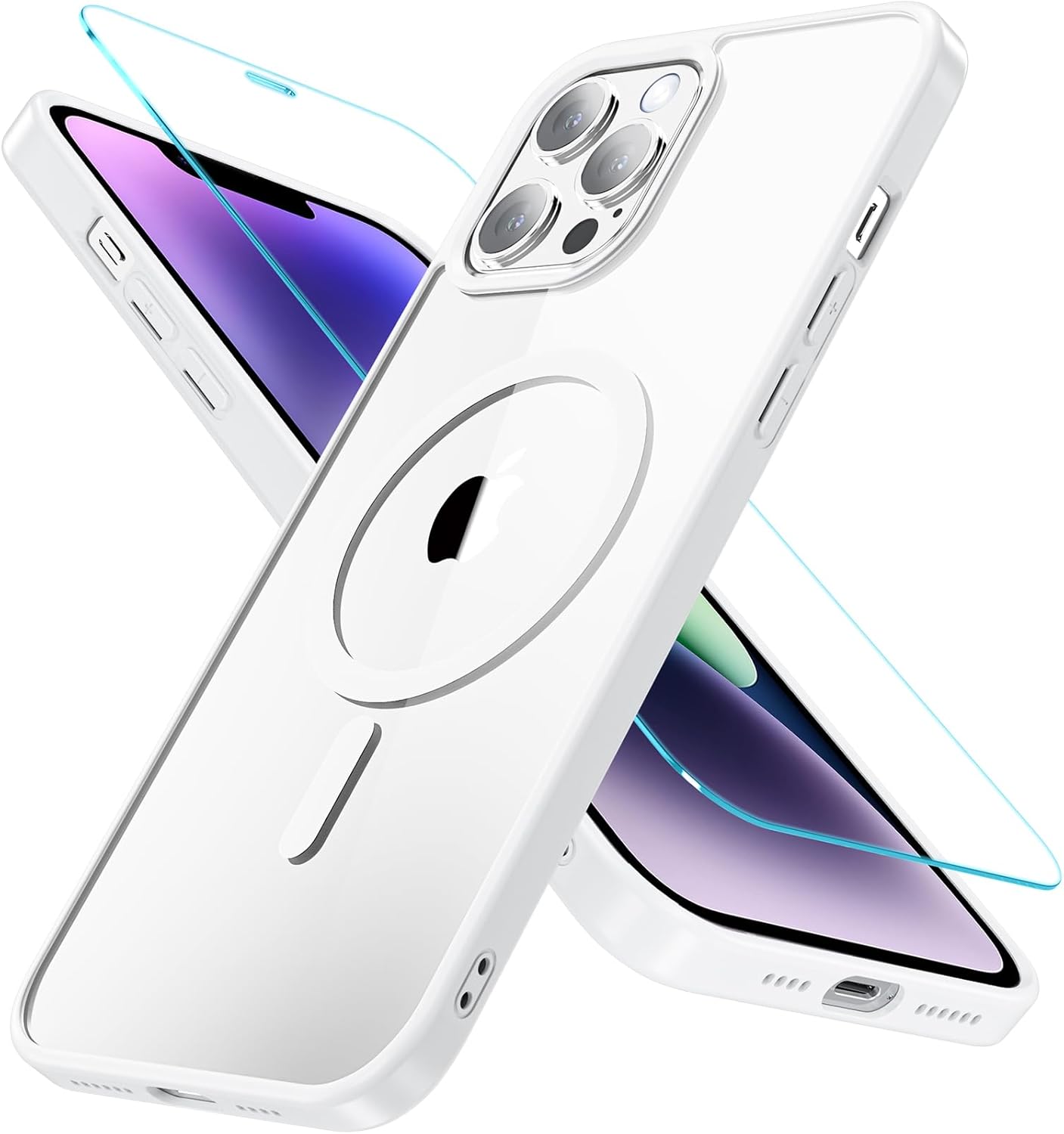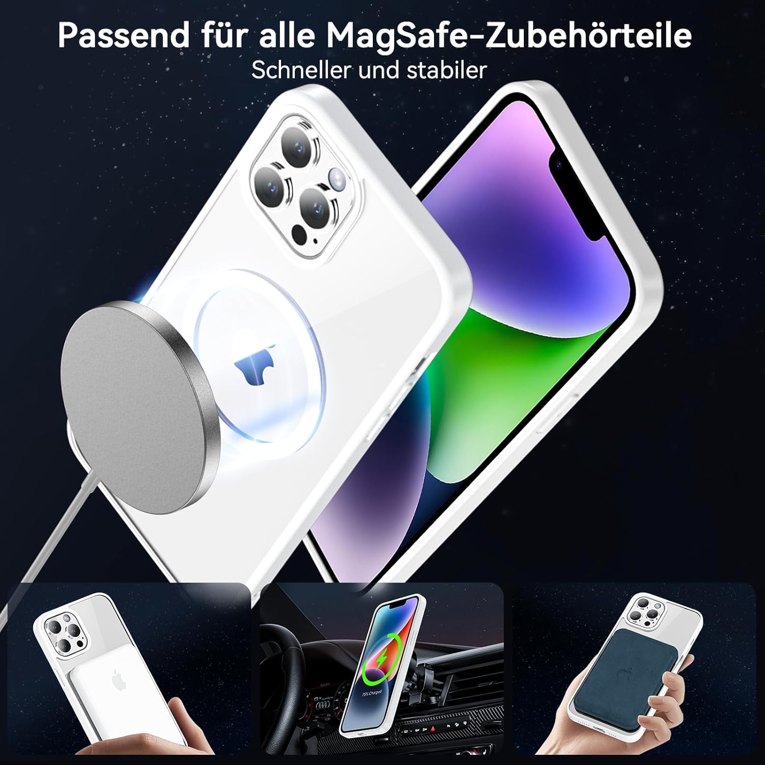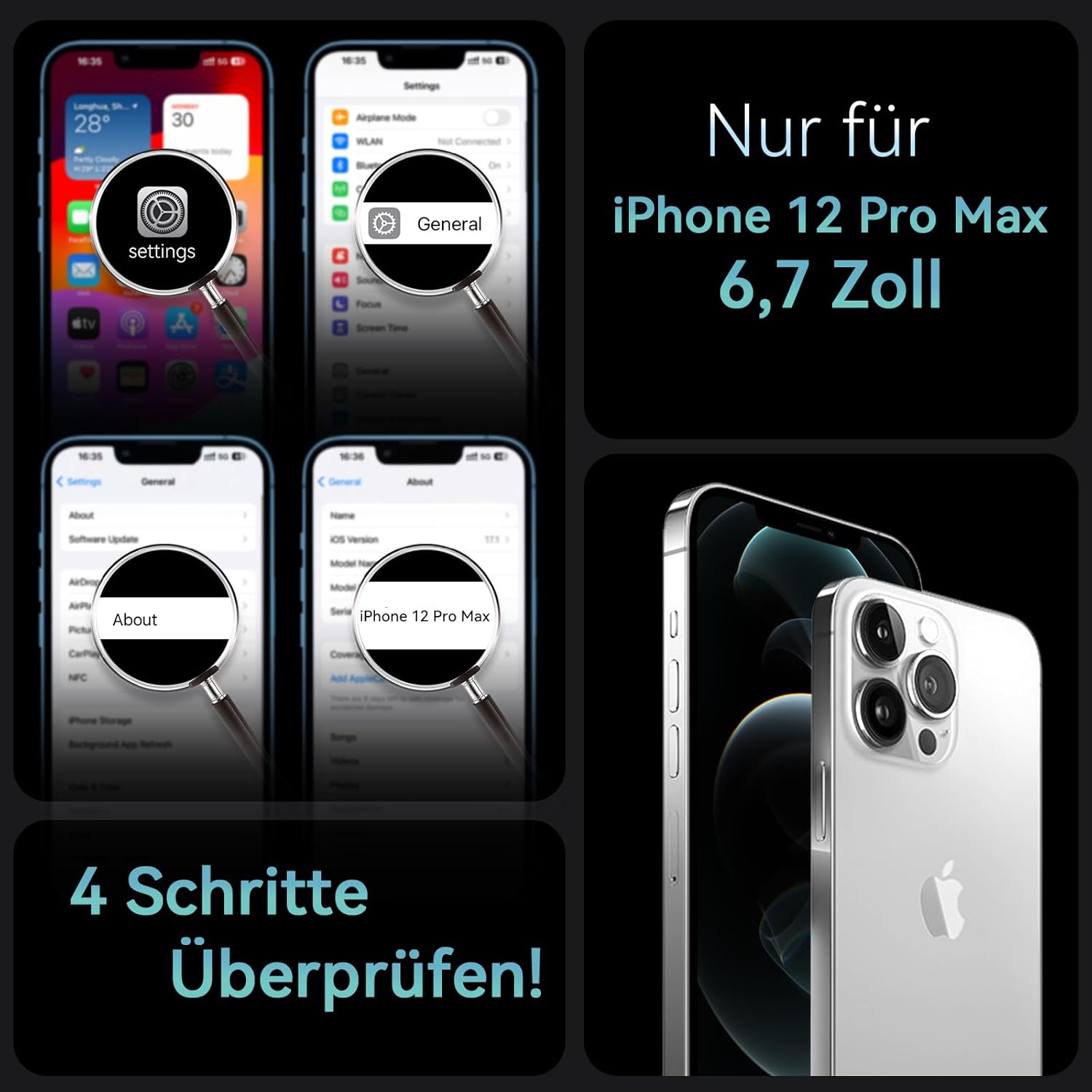 OWKEY Калъф за iPhone 12 Pro Max с Magsafe, Магнитен калъф за мобилен телефон за iPhone 12 Pro Max 6.7 инча със закалено стъкло, [Военен клас защита] Удароустойчив тънък защитен калъф за iPhone 12 Pro