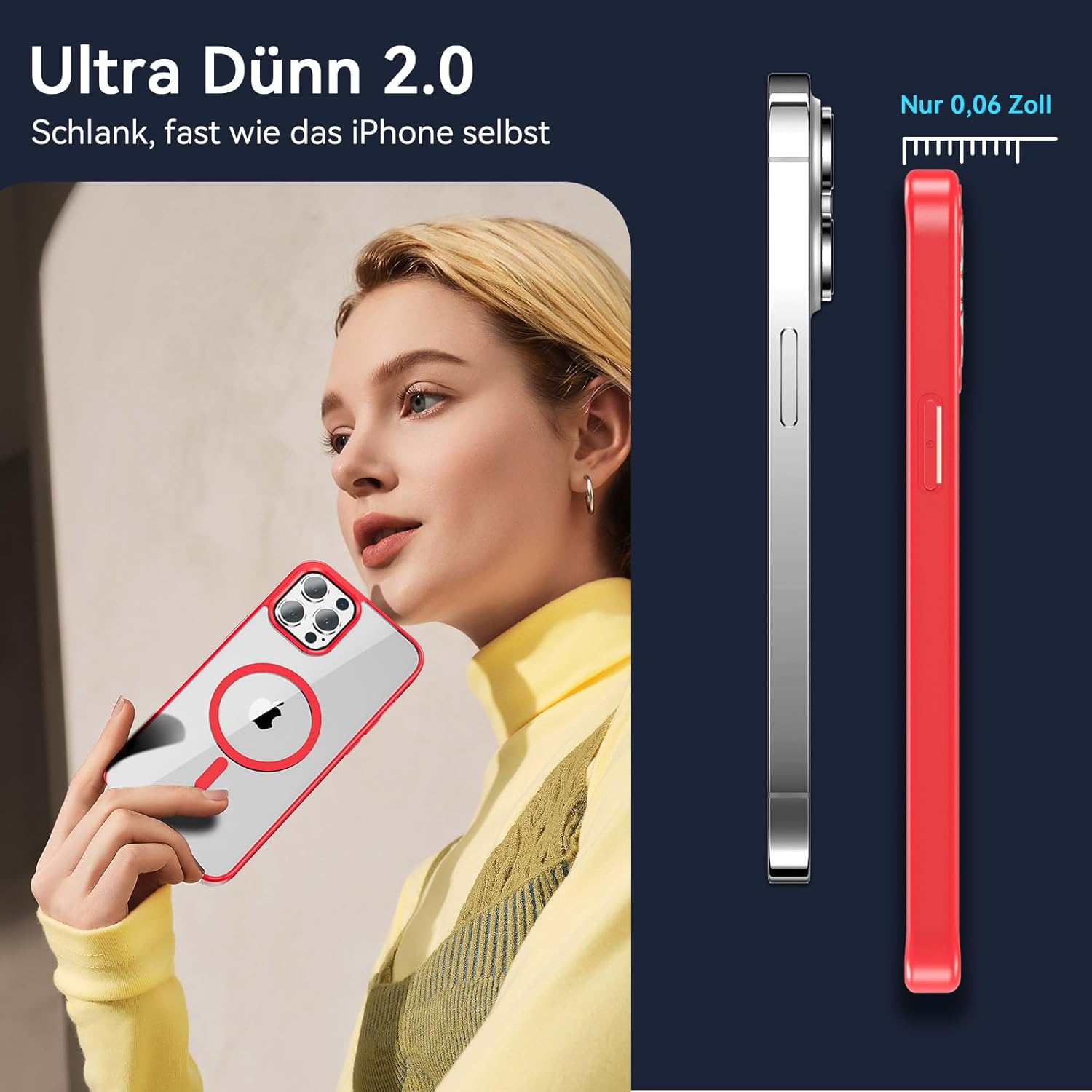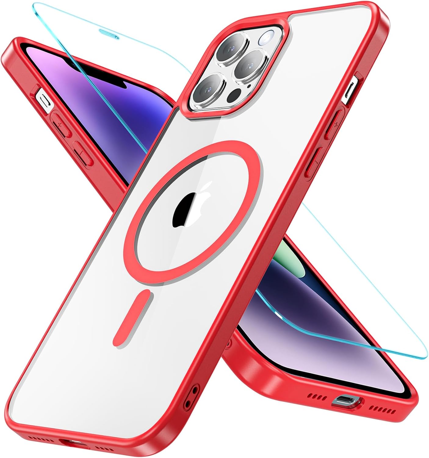 OWKEY Калъф за iPhone 12 Pro Max с Magsafe, Магнитен калъф за мобилен телефон за iPhone 12 Pro Max 6.7 инча със закалено стъкло, [Военен клас защита] Удароустойчив тънък защитен калъф за iPhone 12 Pro