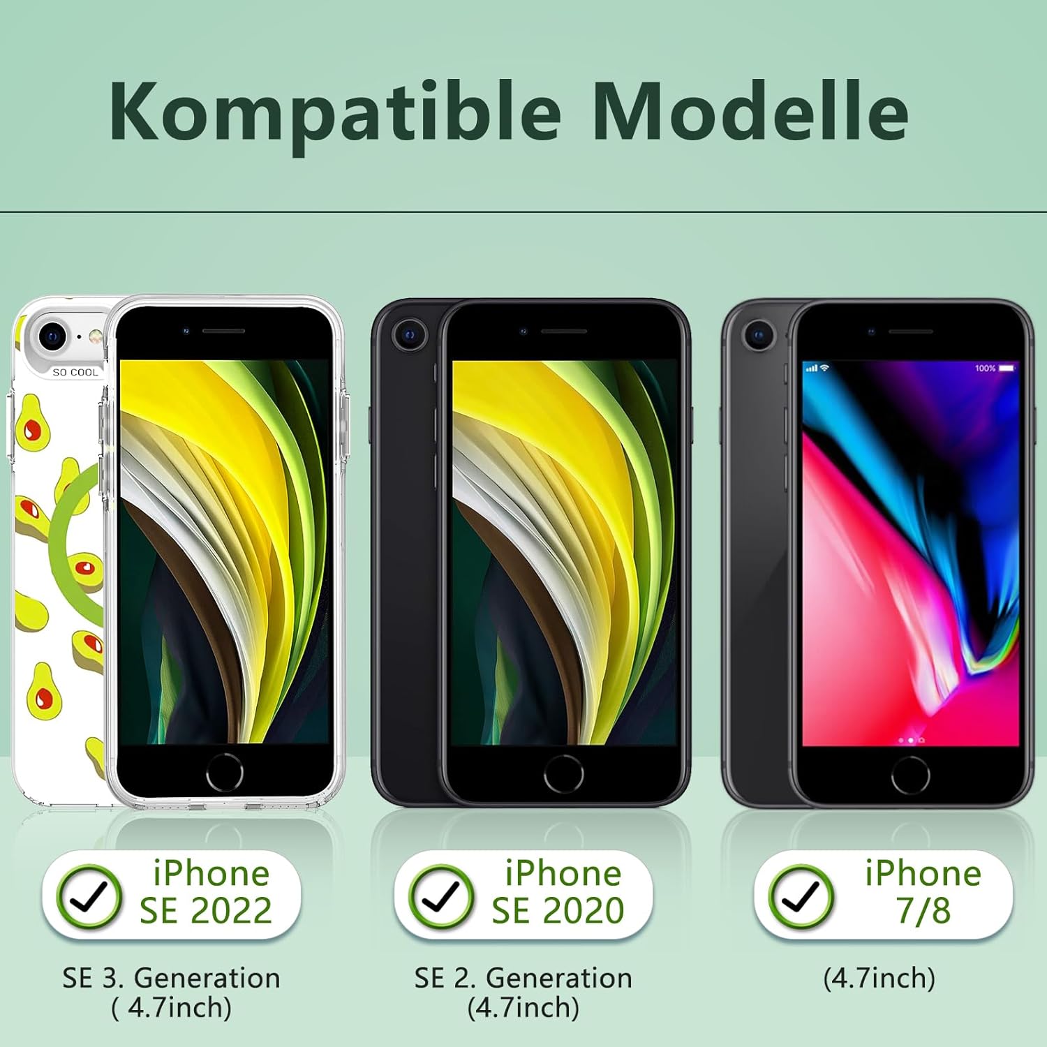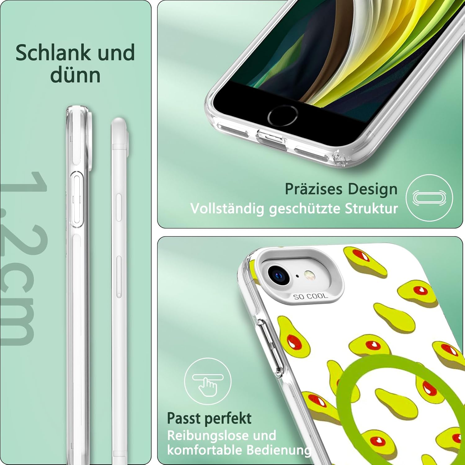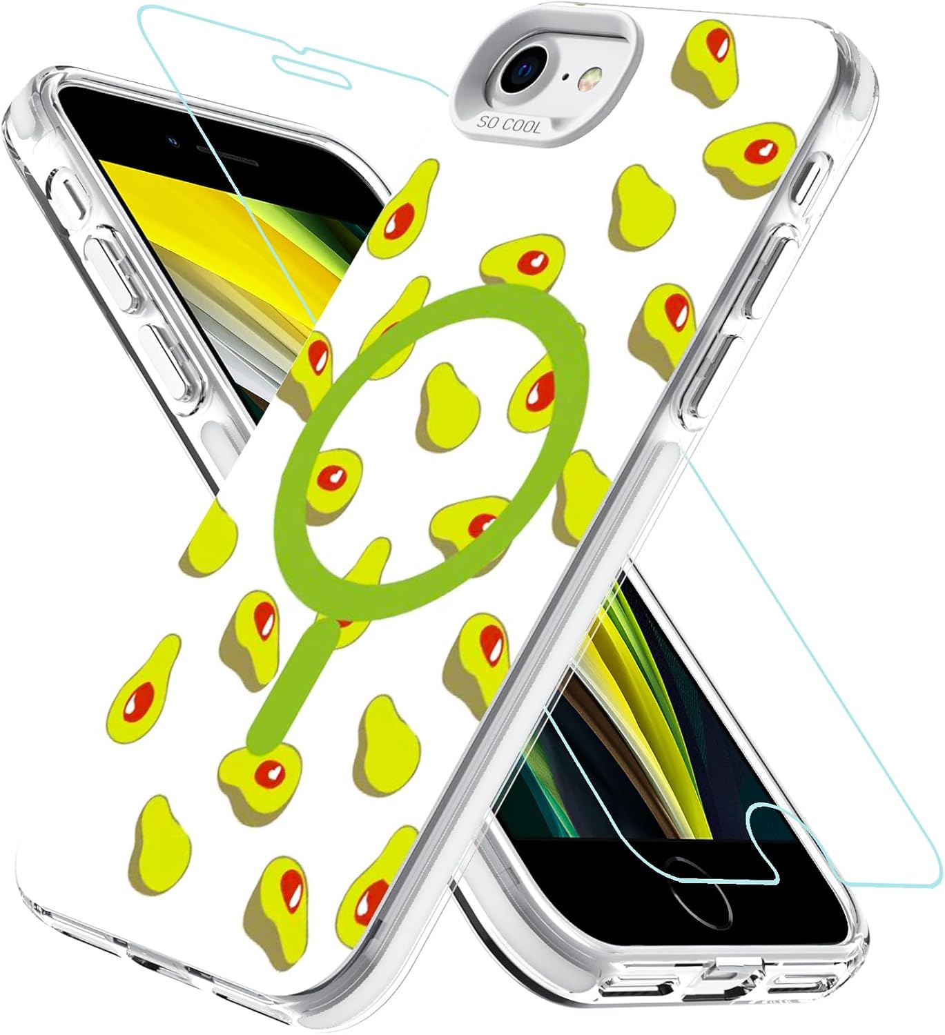 OWKEY калъф за iPhone SE 2020/2022 (iPhone SE 2/3), iPhone 8/iPhone 7, магнитен защитен калъф за MagSafe с 9H защитно стъкло, естетичен дизайн с усмивка и сладък мотив (зелен)