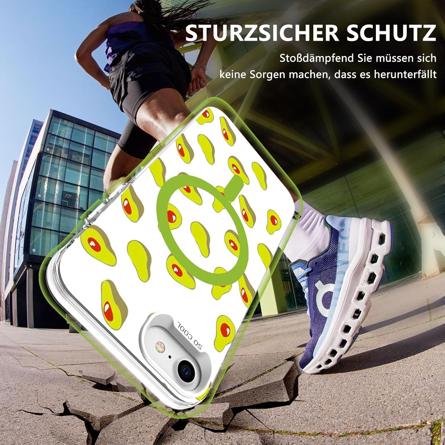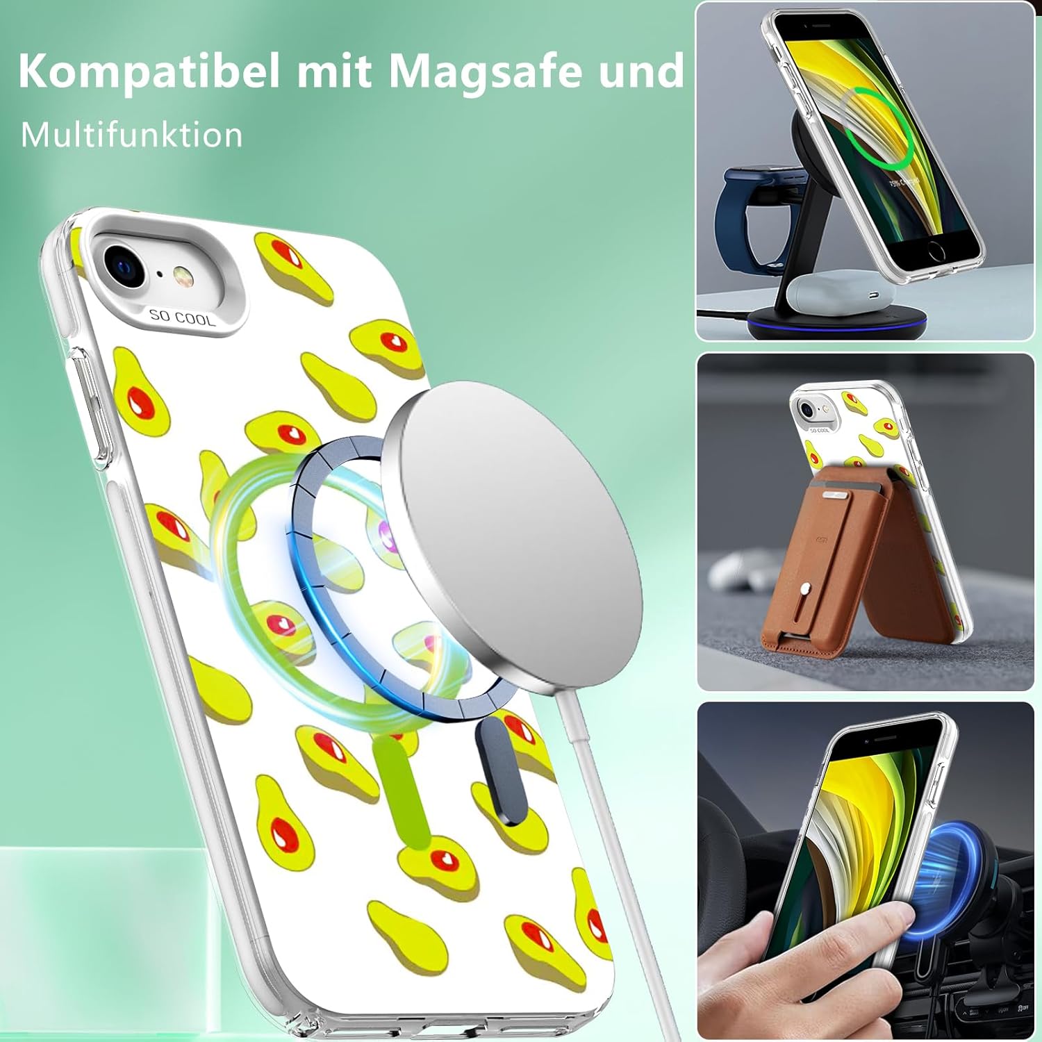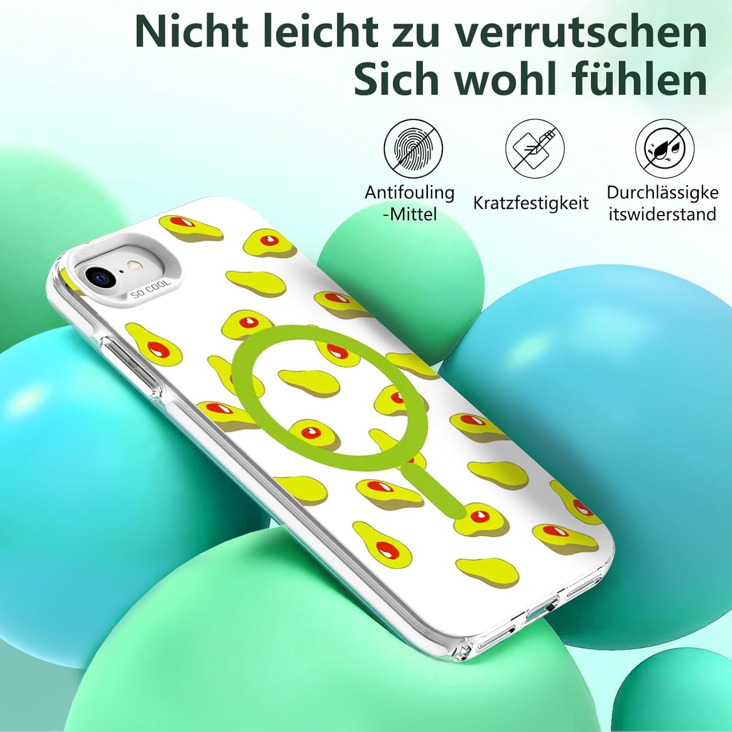 OWKEY калъф за iPhone SE 2020/2022 (iPhone SE 2/3), iPhone 8/iPhone 7, магнитен защитен калъф за MagSafe с 9H защитно стъкло, естетичен дизайн с усмивка и сладък мотив (зелен)