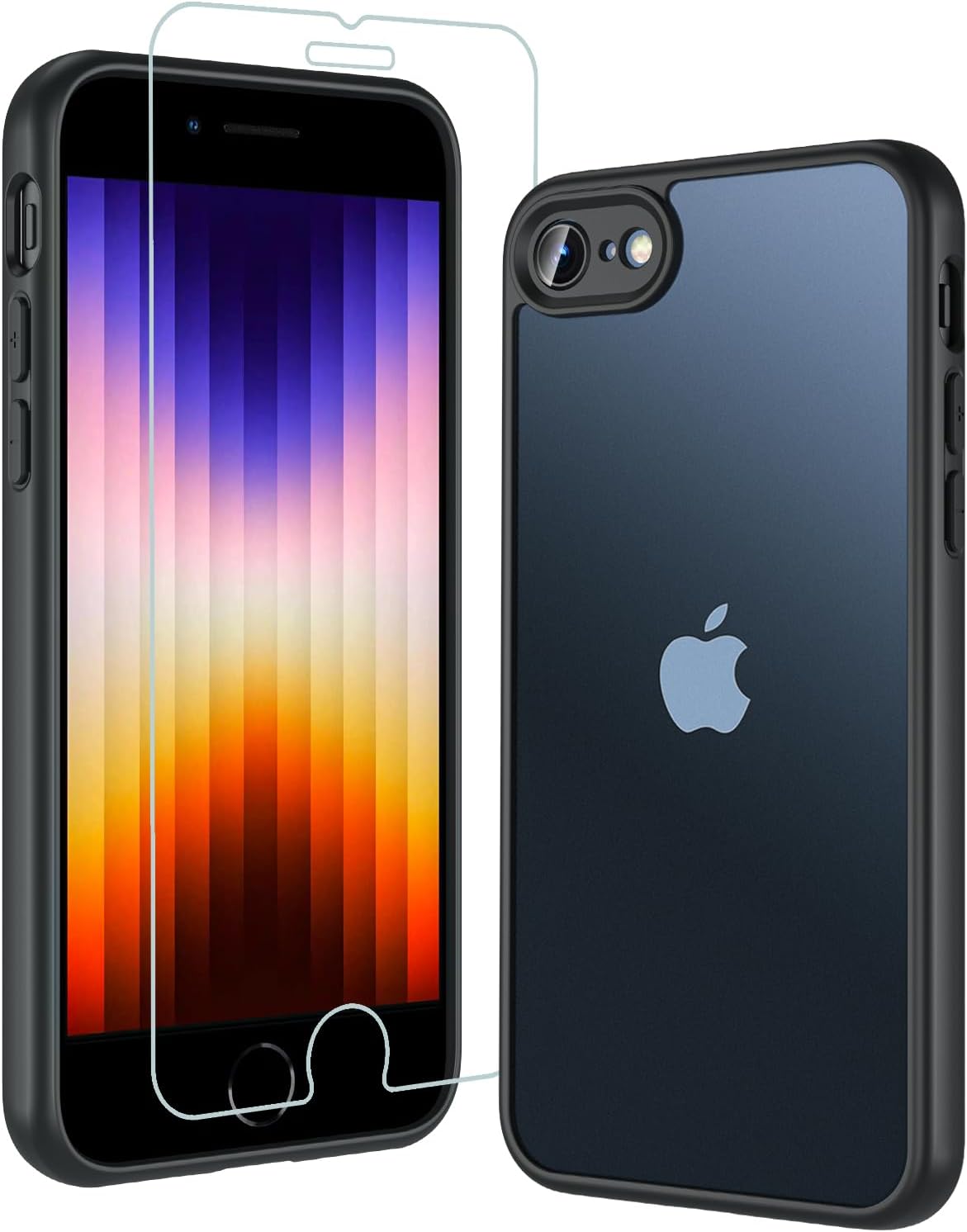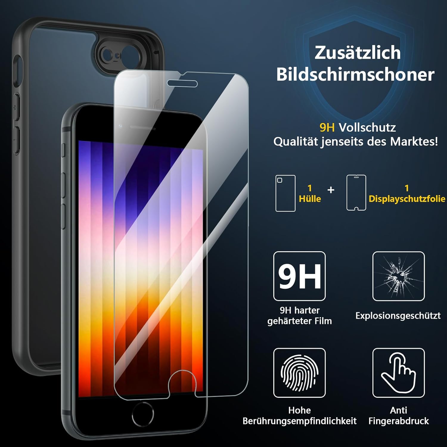 OWKEY калъф за iPhone SE 2020/iPhone SE 2022 (iPhone SE 2/3), калъф за iPhone 8/iPhone 7 с [1 x 9H защитно стъкло] защитен калъф, тънък матов силиконов калъф за мобилен телефон за iPhone 8/7/6S/6