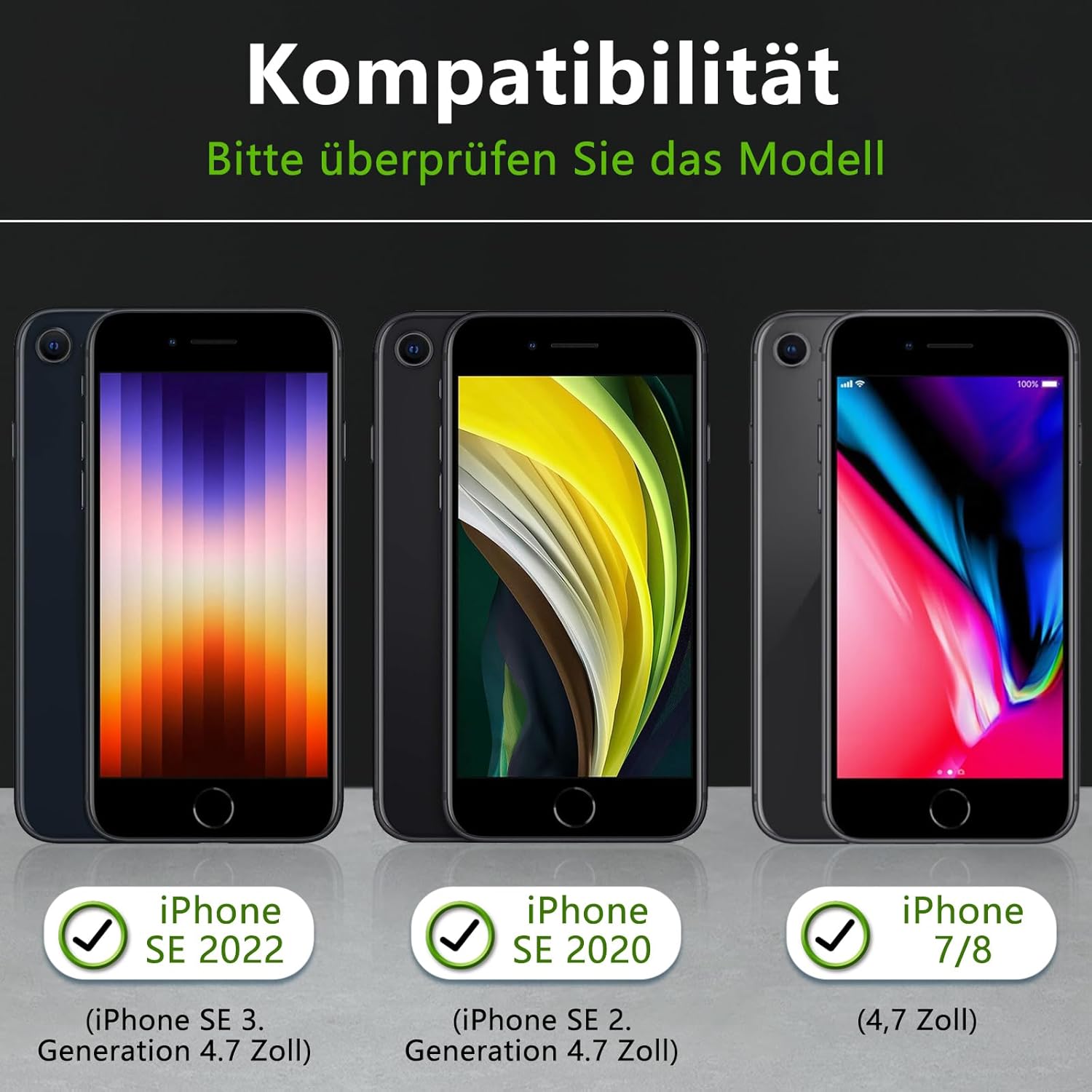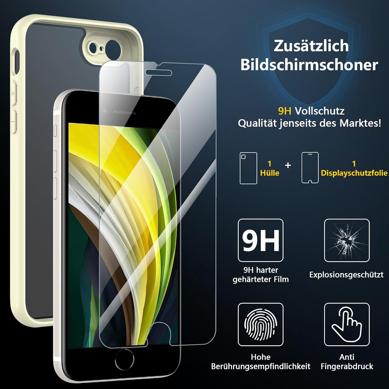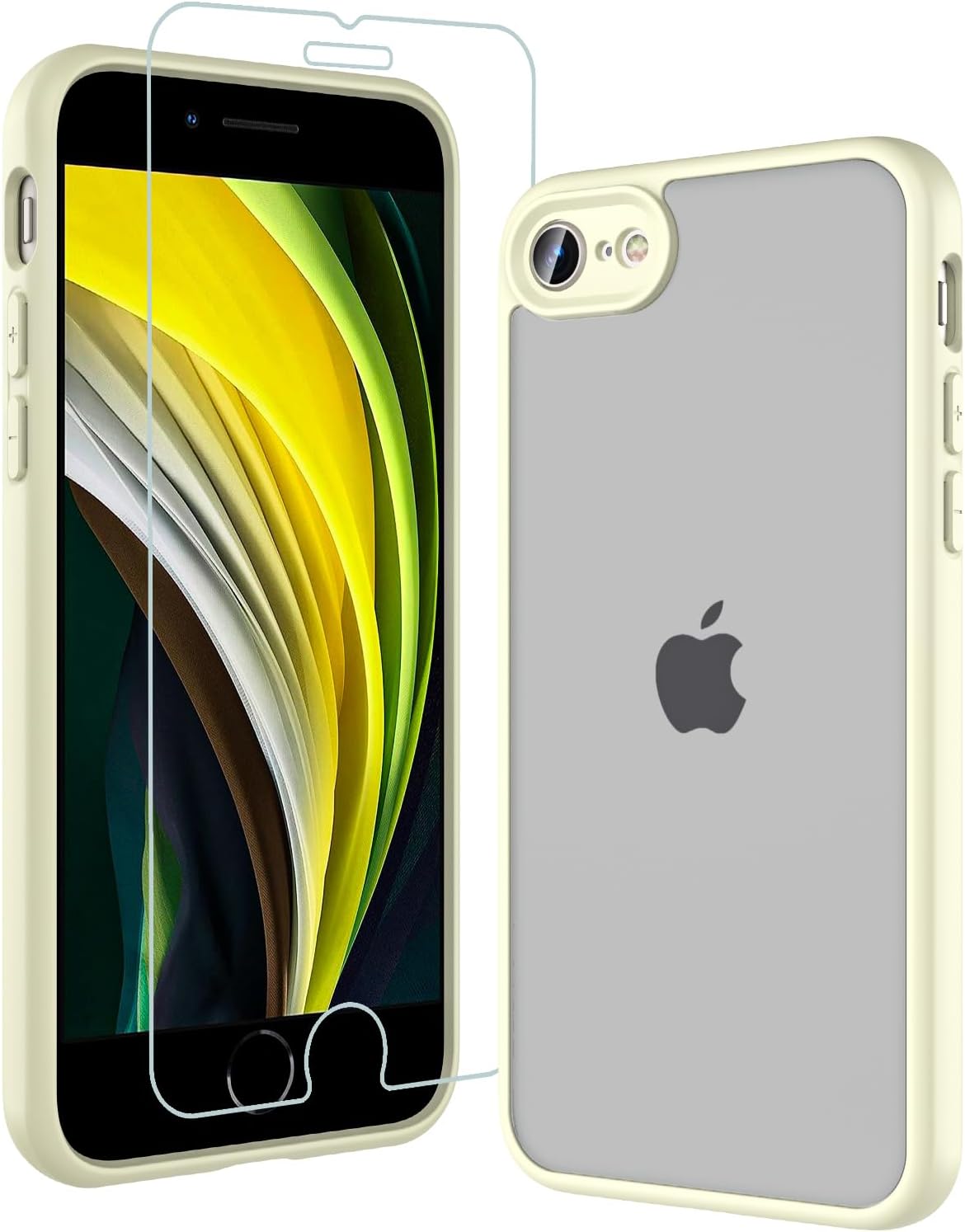 OWKEY калъф за iPhone SE 2020/iPhone SE 2022 (iPhone SE 2/3), калъф за iPhone 8/iPhone 7 с [1 x 9H защитно стъкло] защитен калъф, тънък матов силиконов калъф за мобилен телефон за iPhone 8/7/6S/6