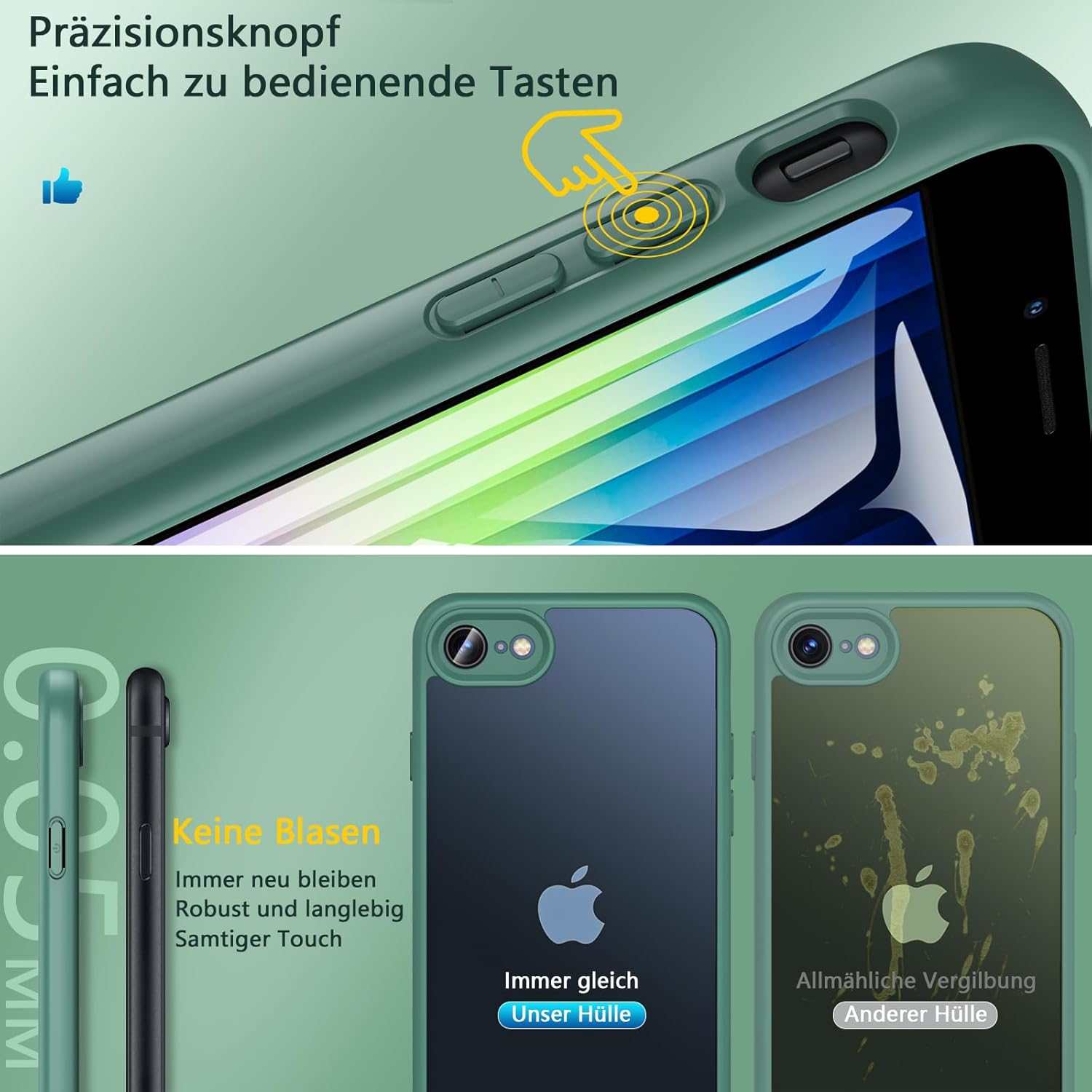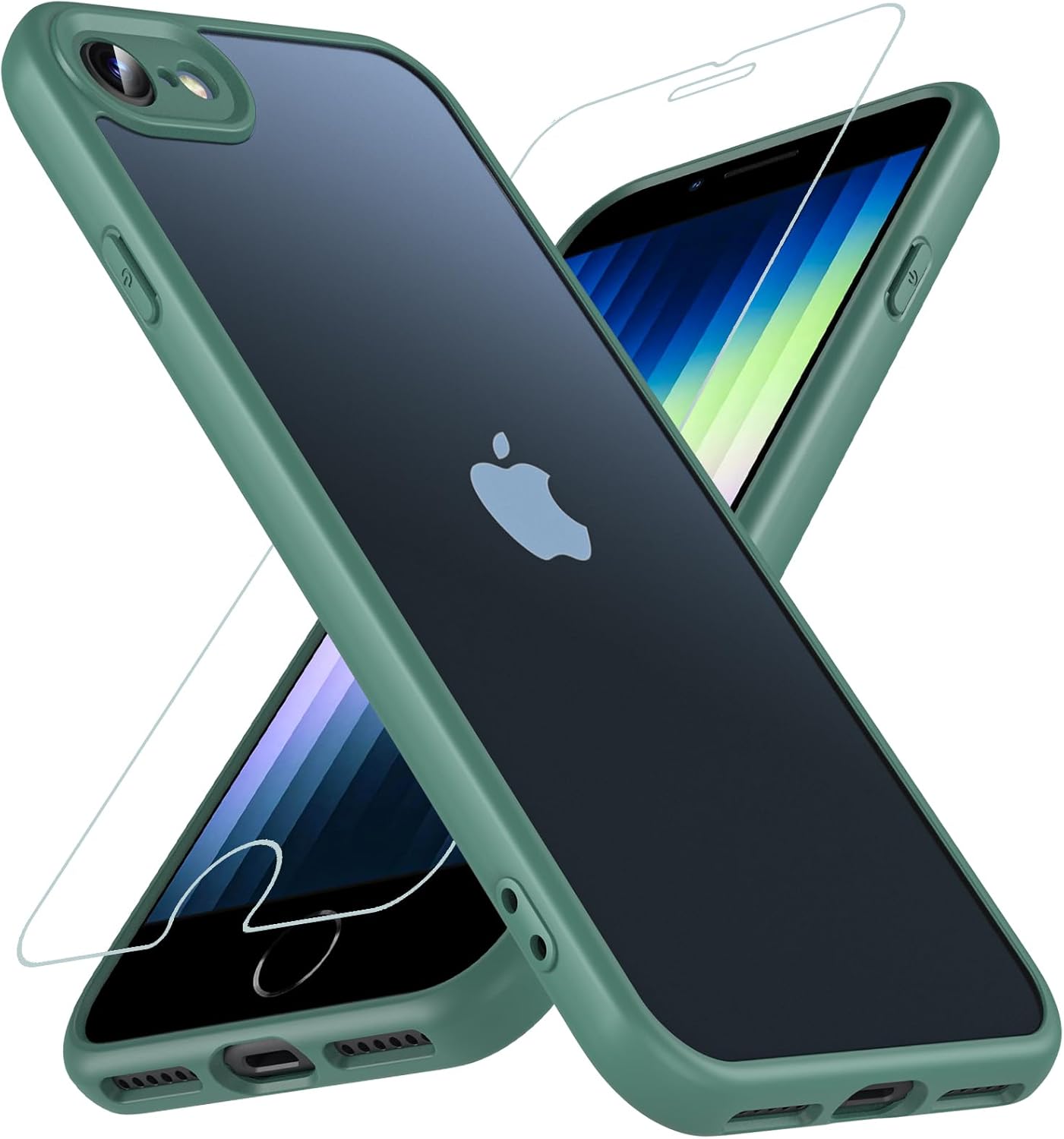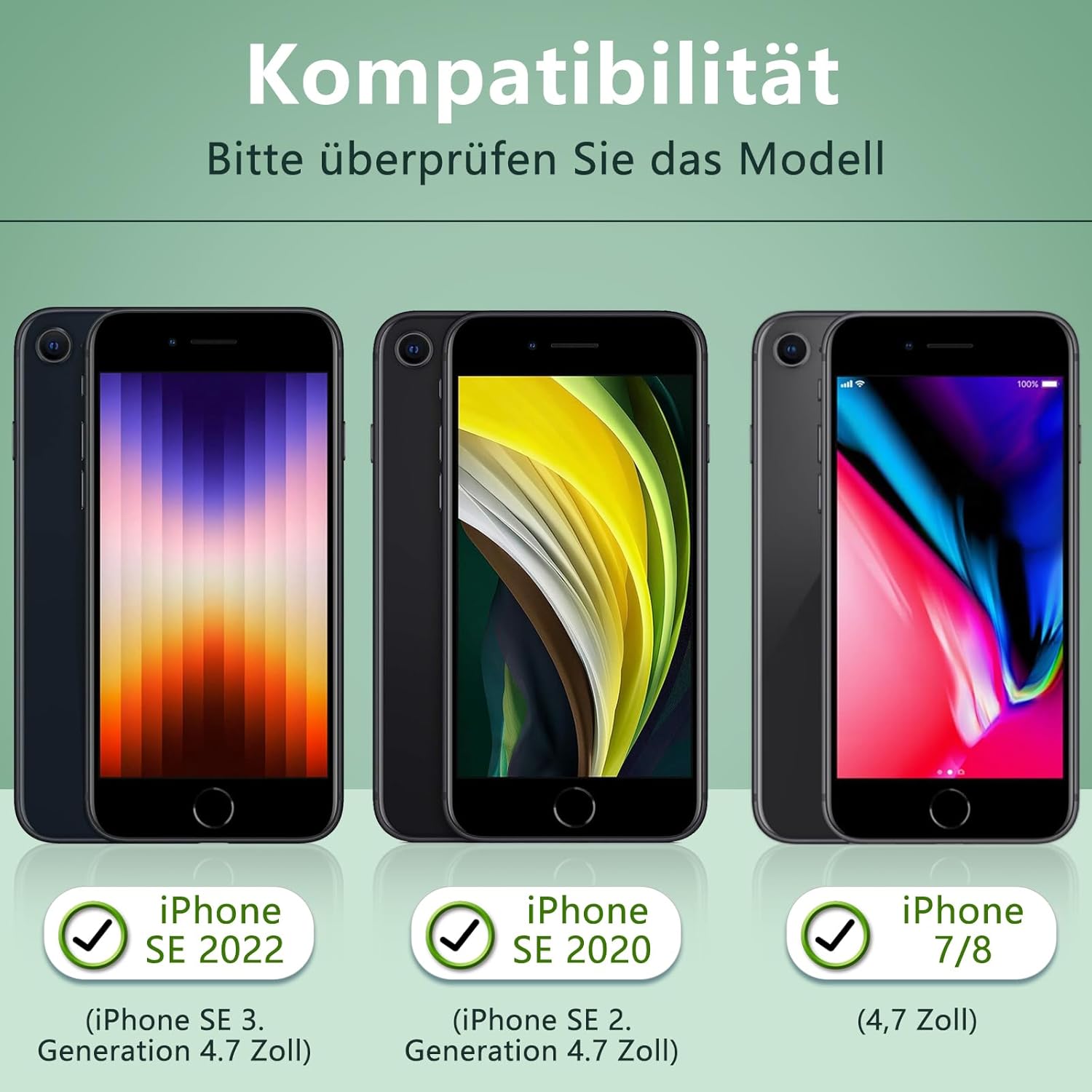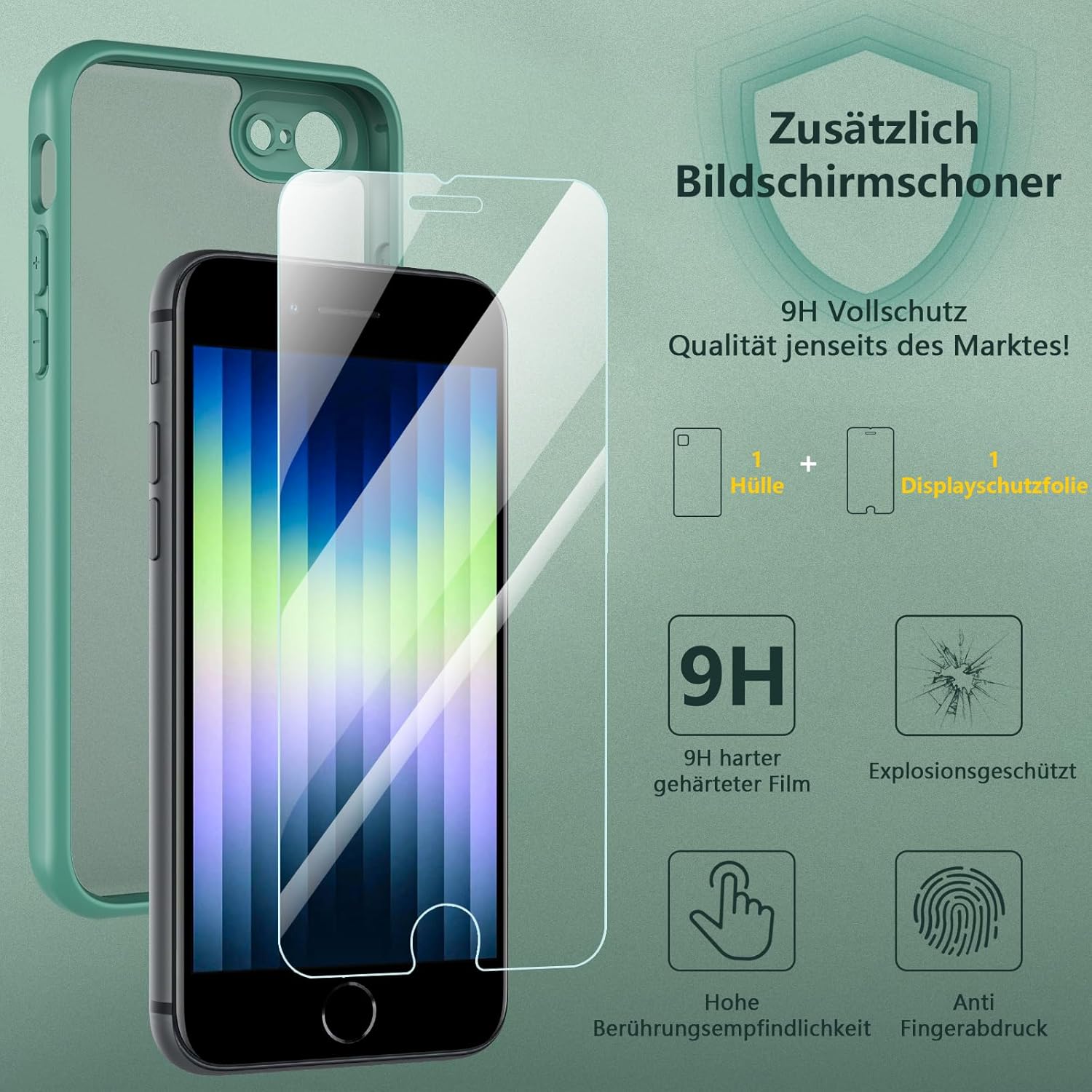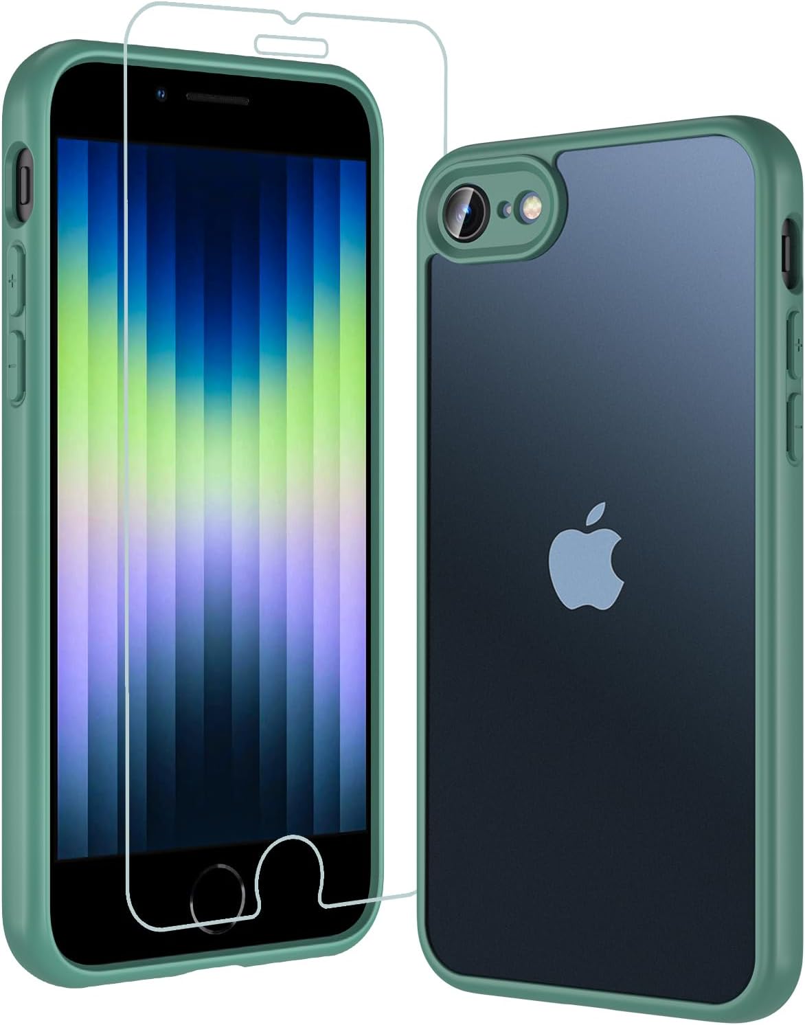OWKEY калъф за iPhone SE 2020/iPhone SE 2022 (iPhone SE 2/3), калъф за iPhone 8/iPhone 7 с [1 x 9H защитно стъкло] защитен калъф, тънък матов силиконов калъф за мобилен телефон за iPhone 8/7/6S/6