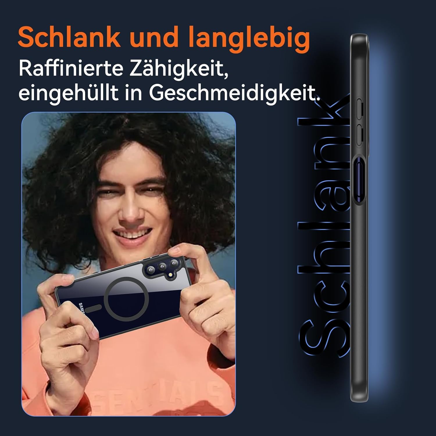 • [Супер магнитно привличане]: Този магнитен калъф за Samsung S25 5G подсилва магнитната връзка и осигурява автоматично подравняване с вграден магнитен пръстен N55. Калъфът се прикрепя добре към магнитни аксесоари като портфейли, стойки за кола и зарядни устройства.