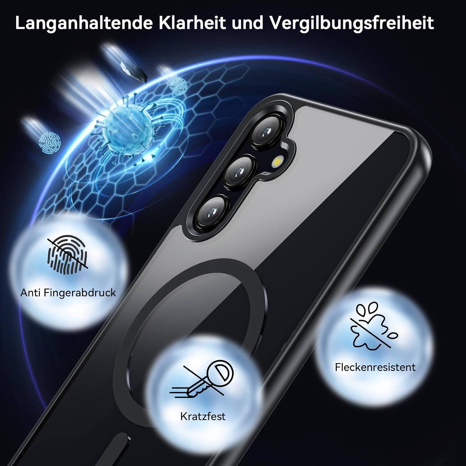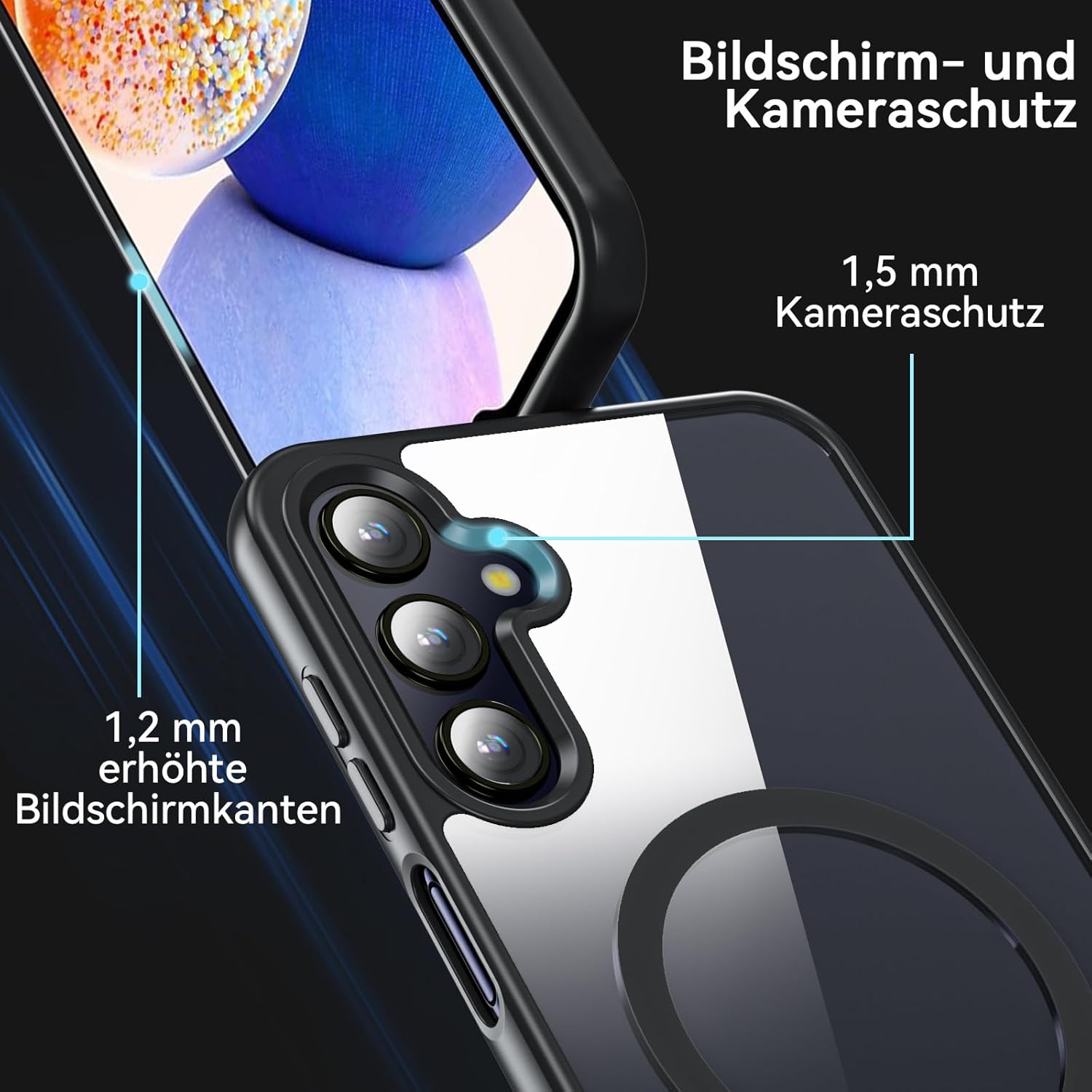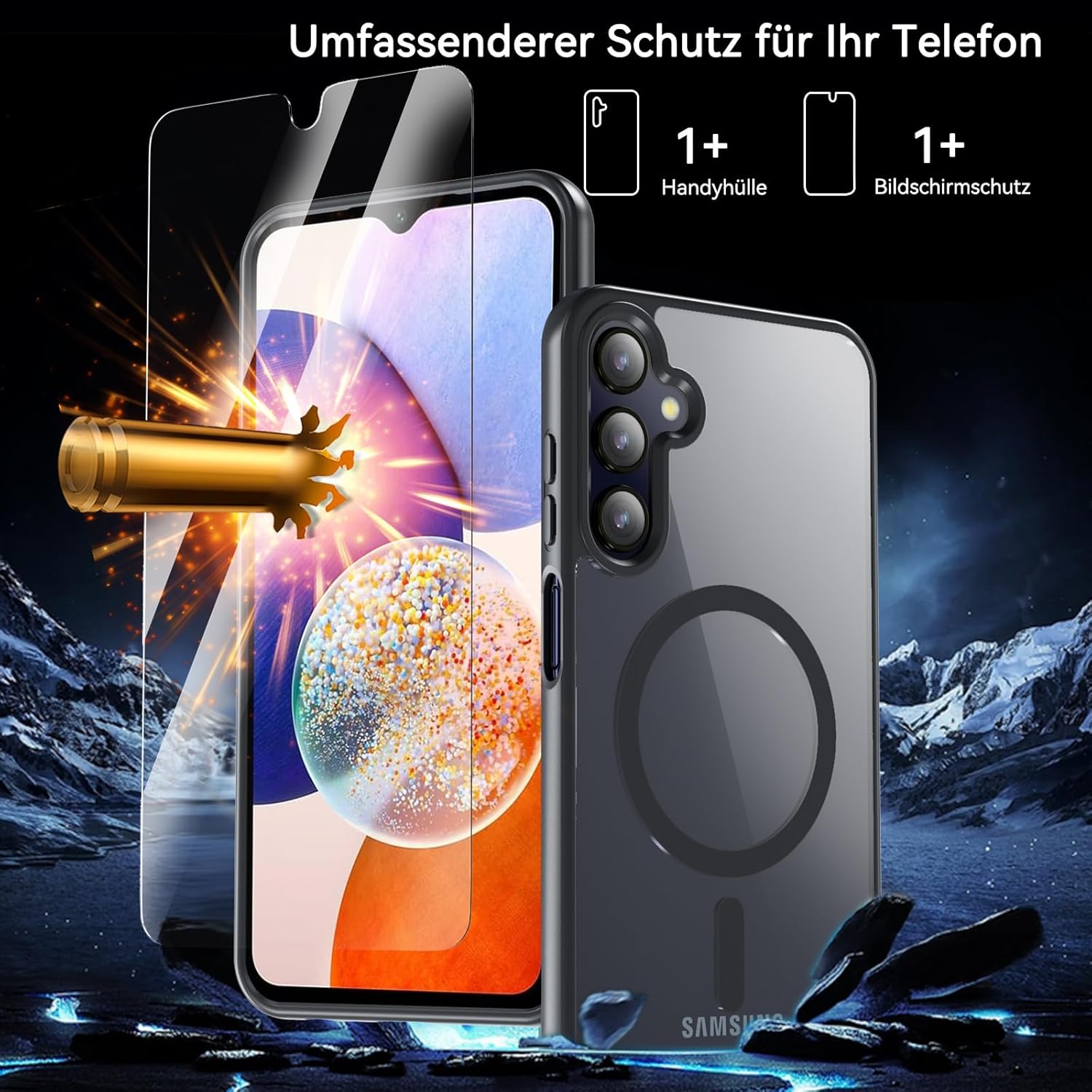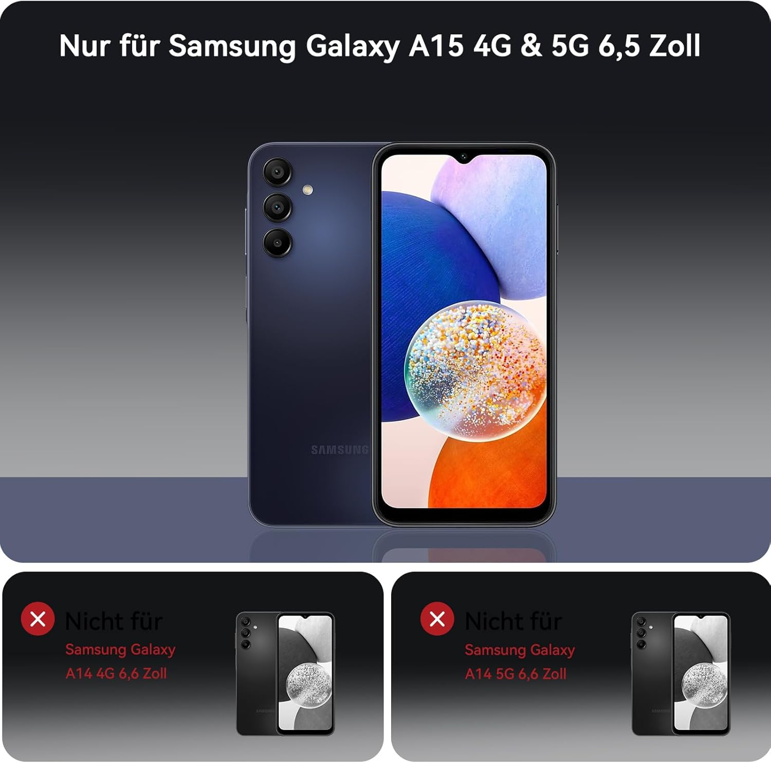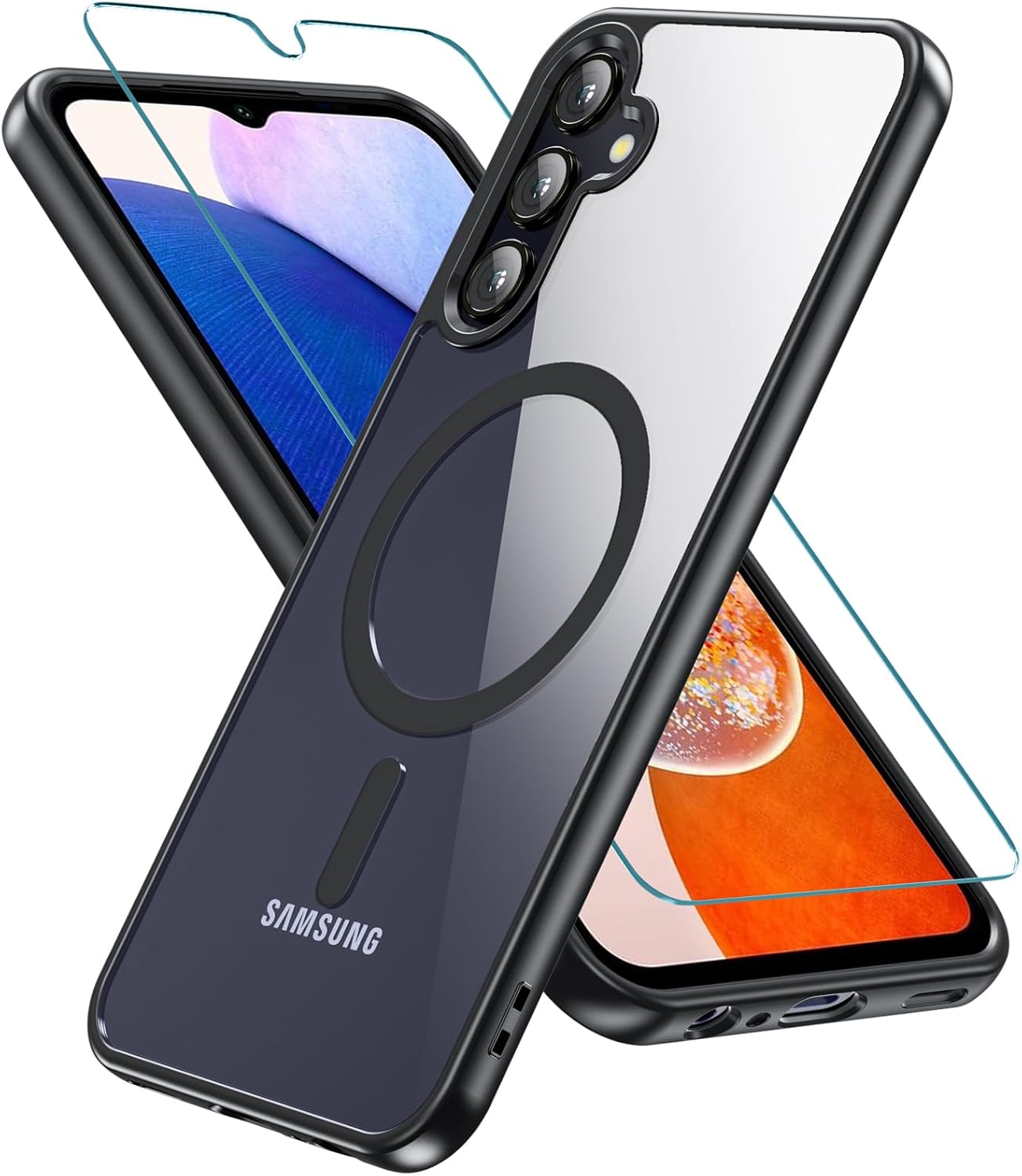 OWKEY калъф за Samsung Galaxy A15, магнитен защитен калъф с протектор за екран, тънък, прозрачен, военна защита, калъф за мобилен телефон за Samsung Galaxy A15 5G/4G (черен)