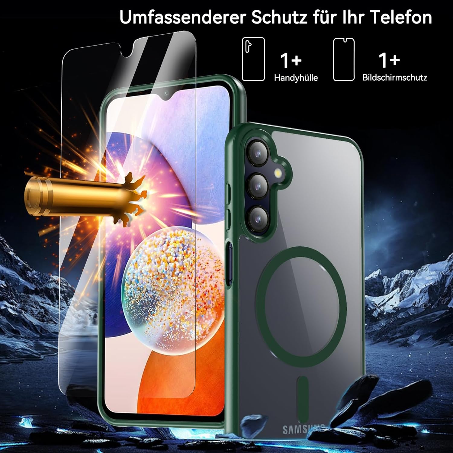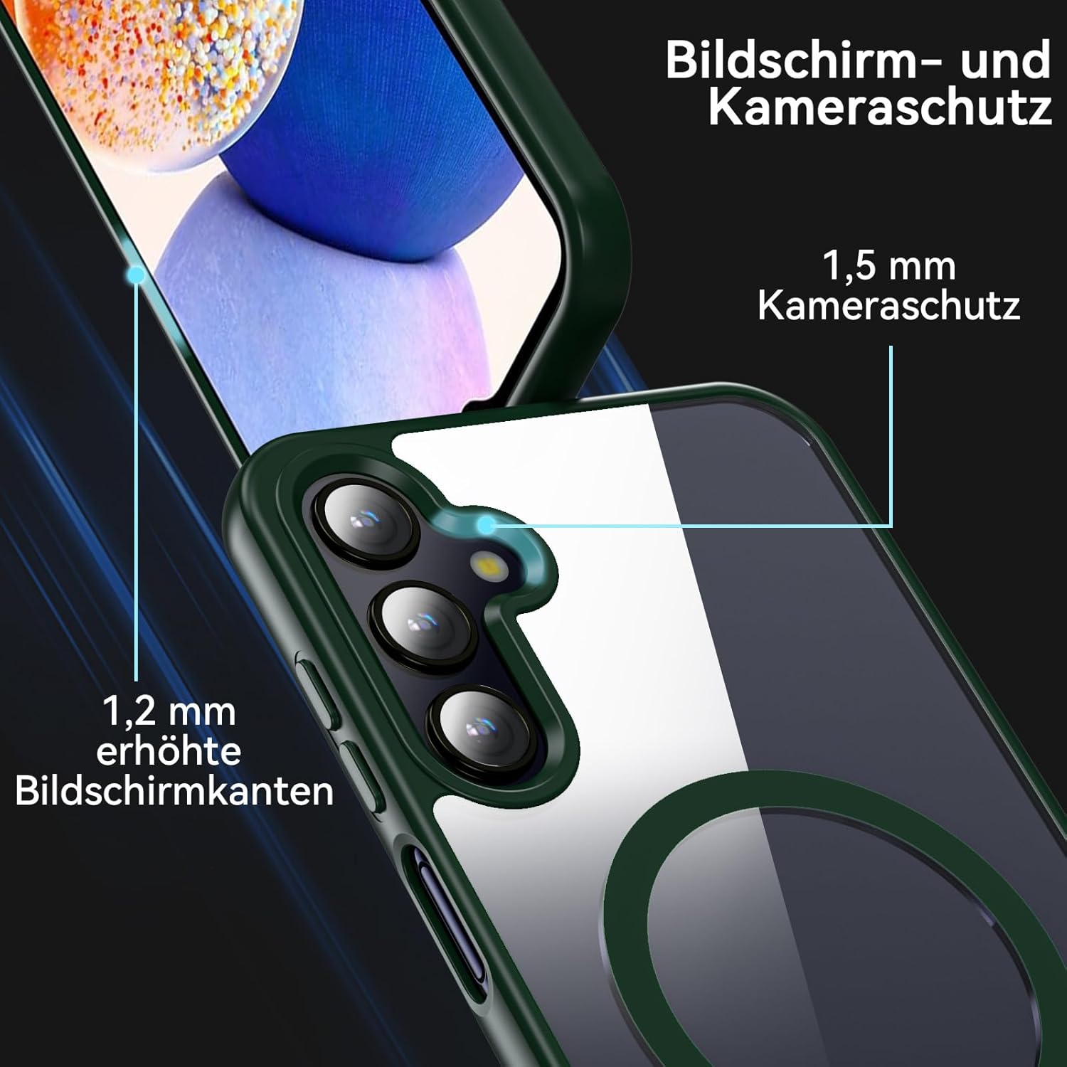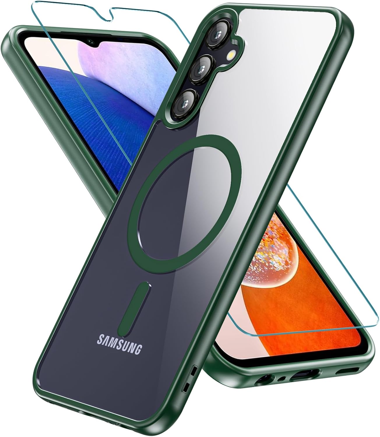 OWKEY калъф за Samsung Galaxy A15, магнитен защитен калъф за MagSafe с протектор за екран, тънък, прозрачен, калъф за мобилен телефон с военна защита за Samsung Galaxy A15 5G/4G (зелен)