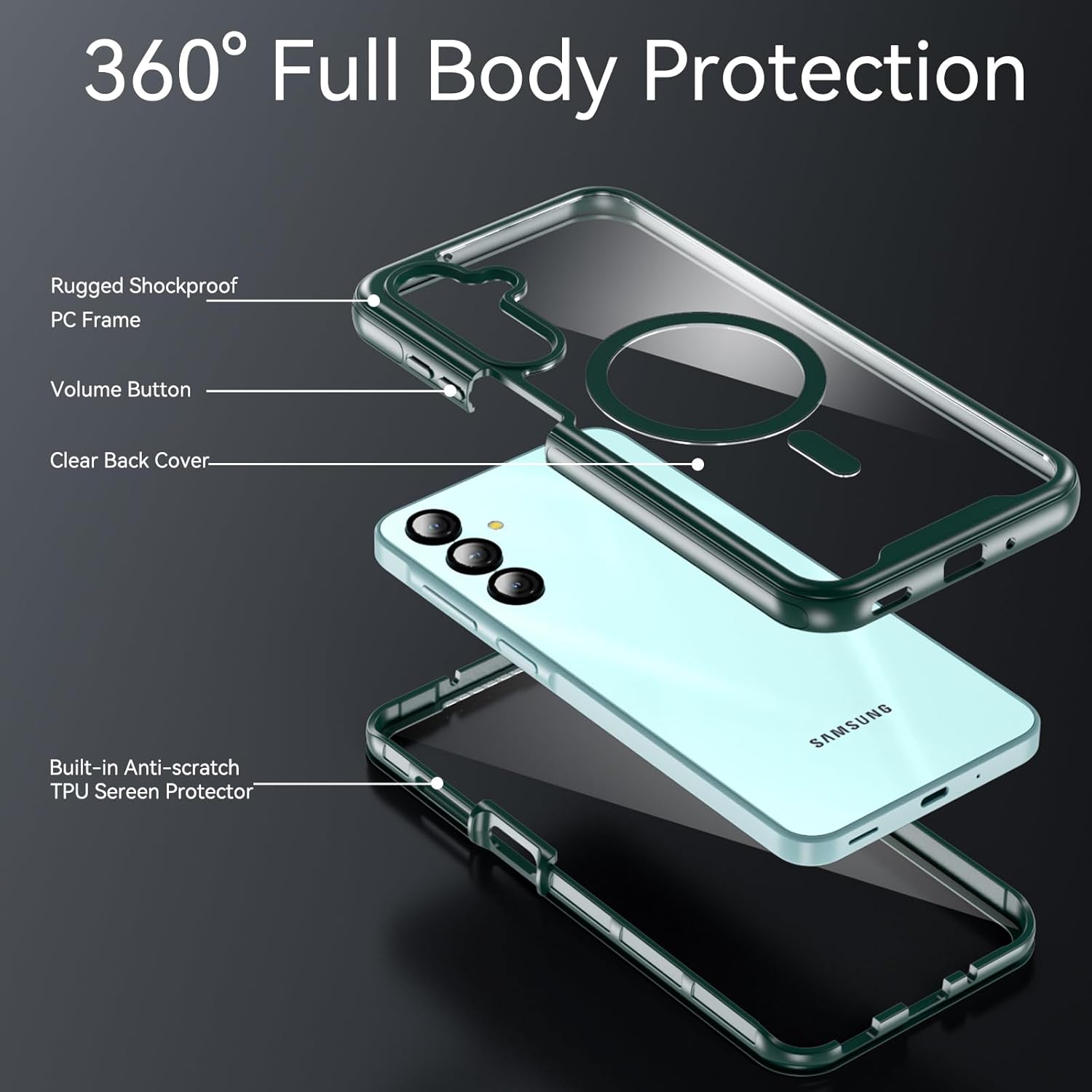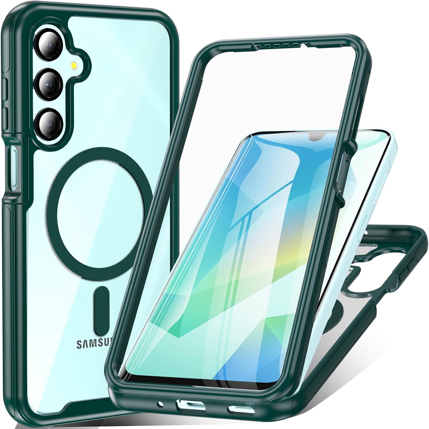 OWKEY калъф за Samsung Galaxy A16 5G/4G, магнитен калъф за мобилен телефон Samsung A16 5G/4G с вграден протектор за екрана, 360-градусова всестранна защита, удароустойчив, здрав калъф-бъмпер, калъф за външна употреба,