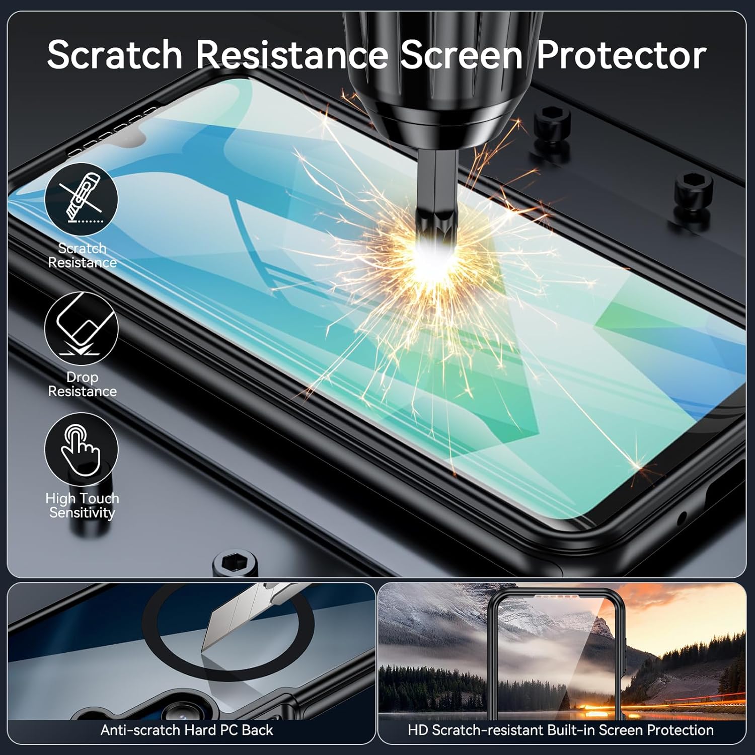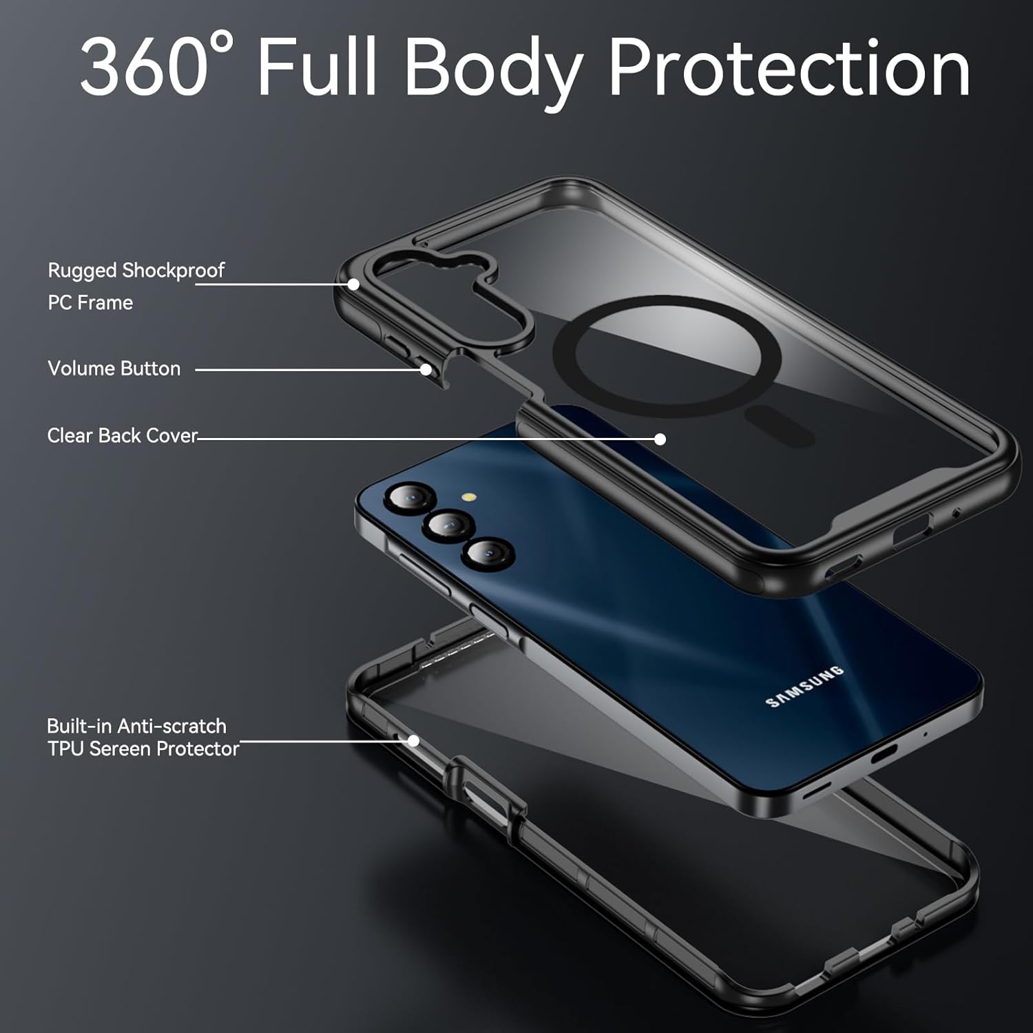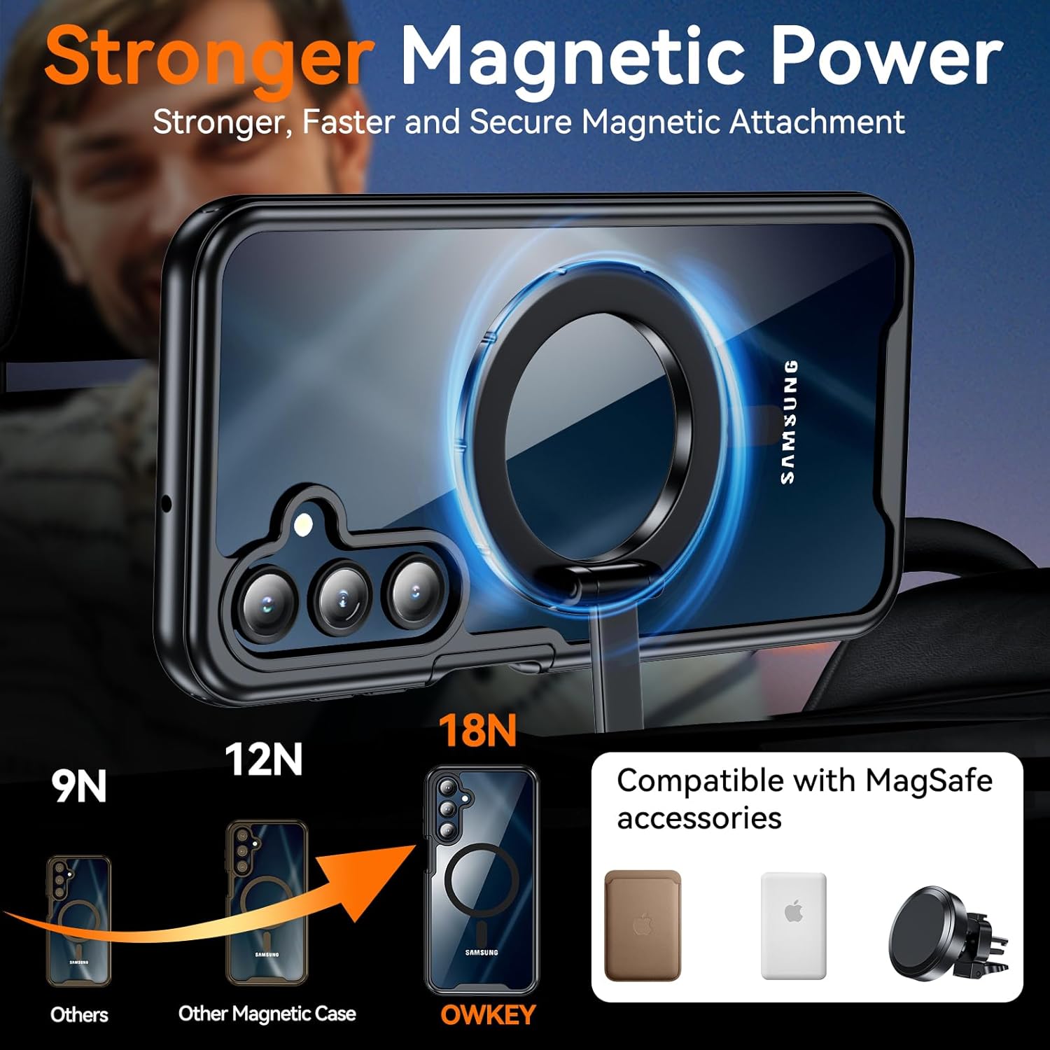 OWKEY калъф за Samsung Galaxy A16 5G/4G, магнитен калъф за мобилен телефон Samsung A16 5G/4G с вграден протектор за екрана, 360-градусова всестранна защита, удароустойчив, здрав калъф-бъмпер, калъф за външна употреба,