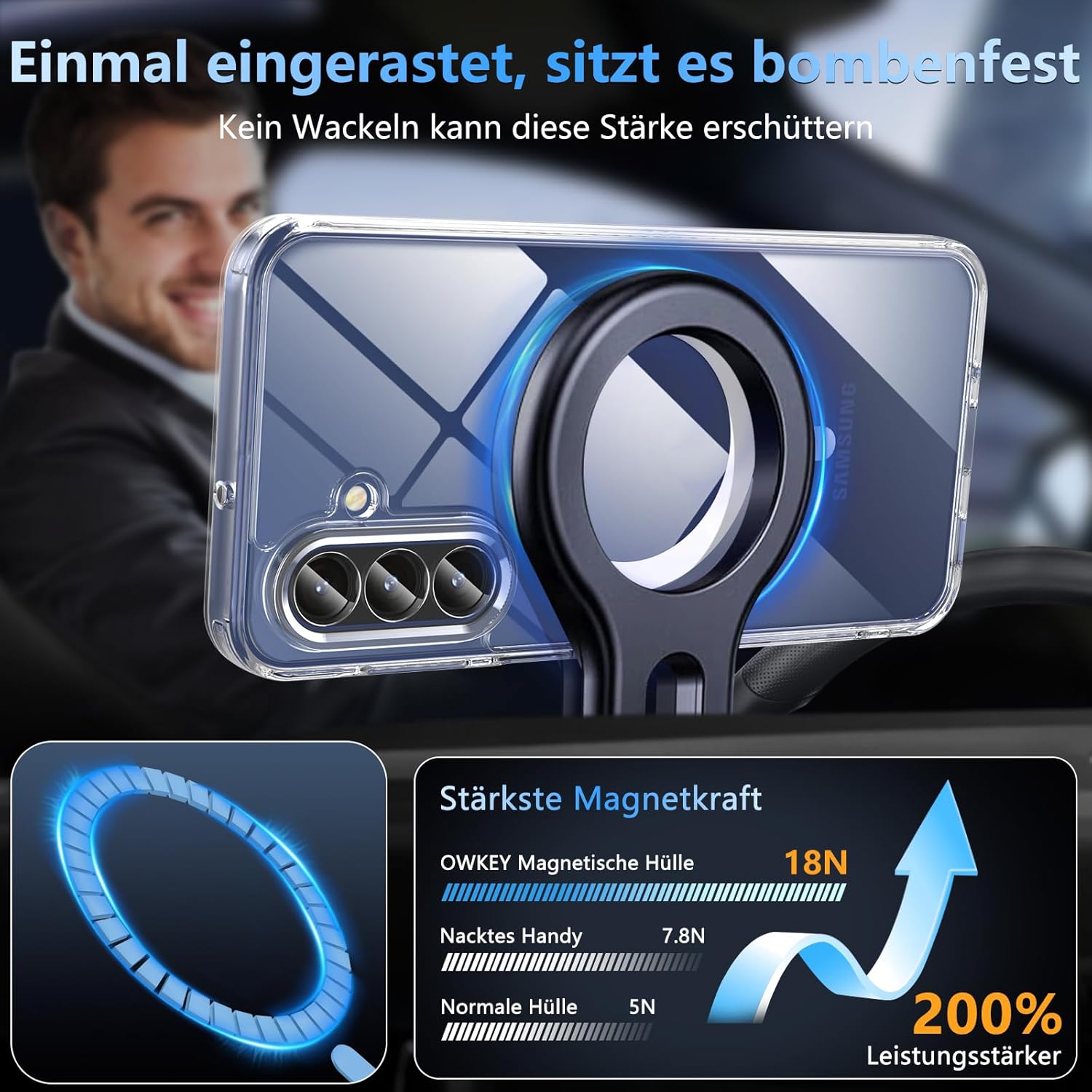 • [Супер магнитно привличане]: Този магнитен калъф за Samsung S25 5G подсилва магнитната връзка и осигурява автоматично подравняване с вграден магнитен пръстен N55. Калъфът се прикрепя добре към магнитни аксесоари като портфейли, стойки за кола и зарядни устройства.