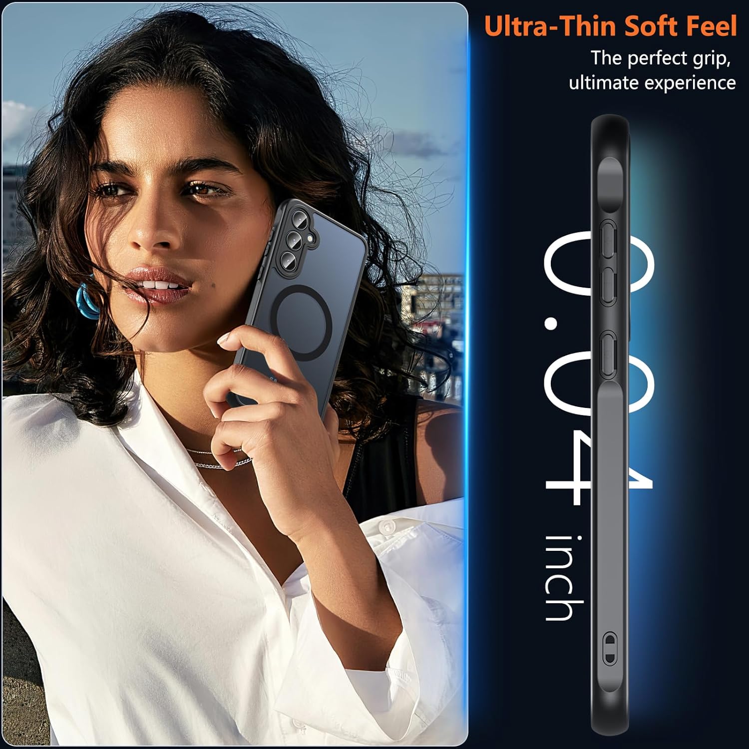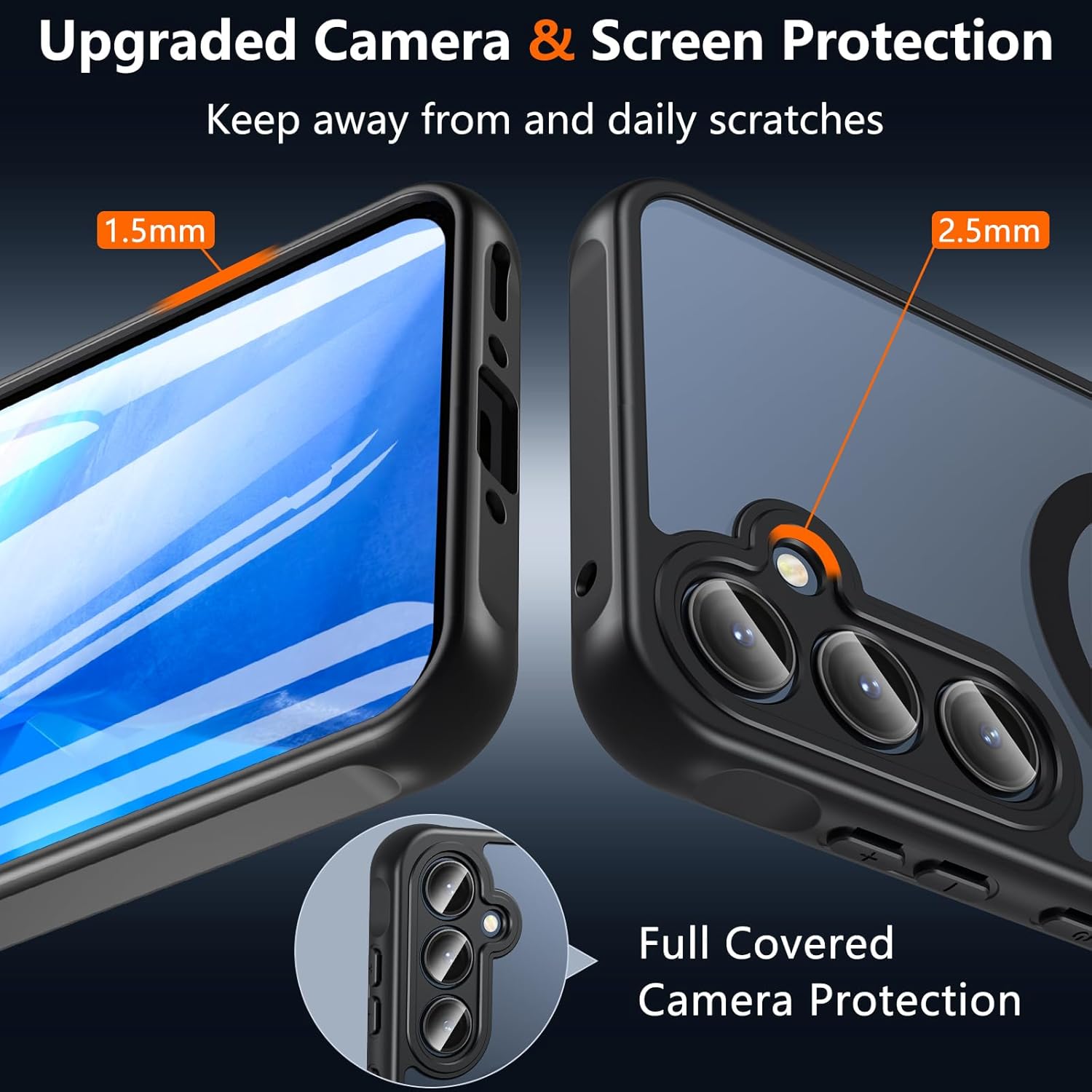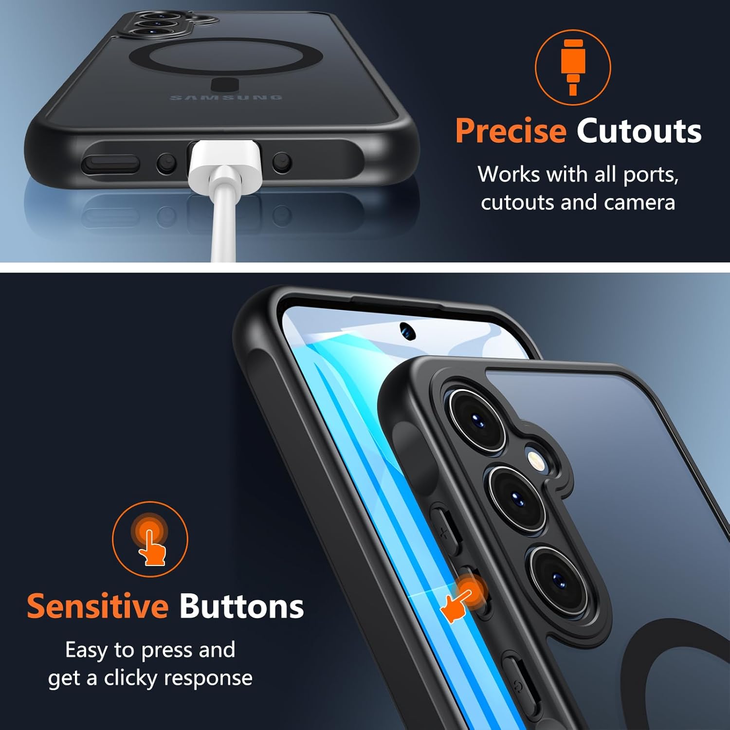 • [Супер магнитно привличане]: Този магнитен калъф за Samsung S25 5G подсилва магнитната връзка и осигурява автоматично подравняване с вграден магнитен пръстен N55. Калъфът се прикрепя добре към магнитни аксесоари като портфейли, стойки за кола и зарядни устройства.