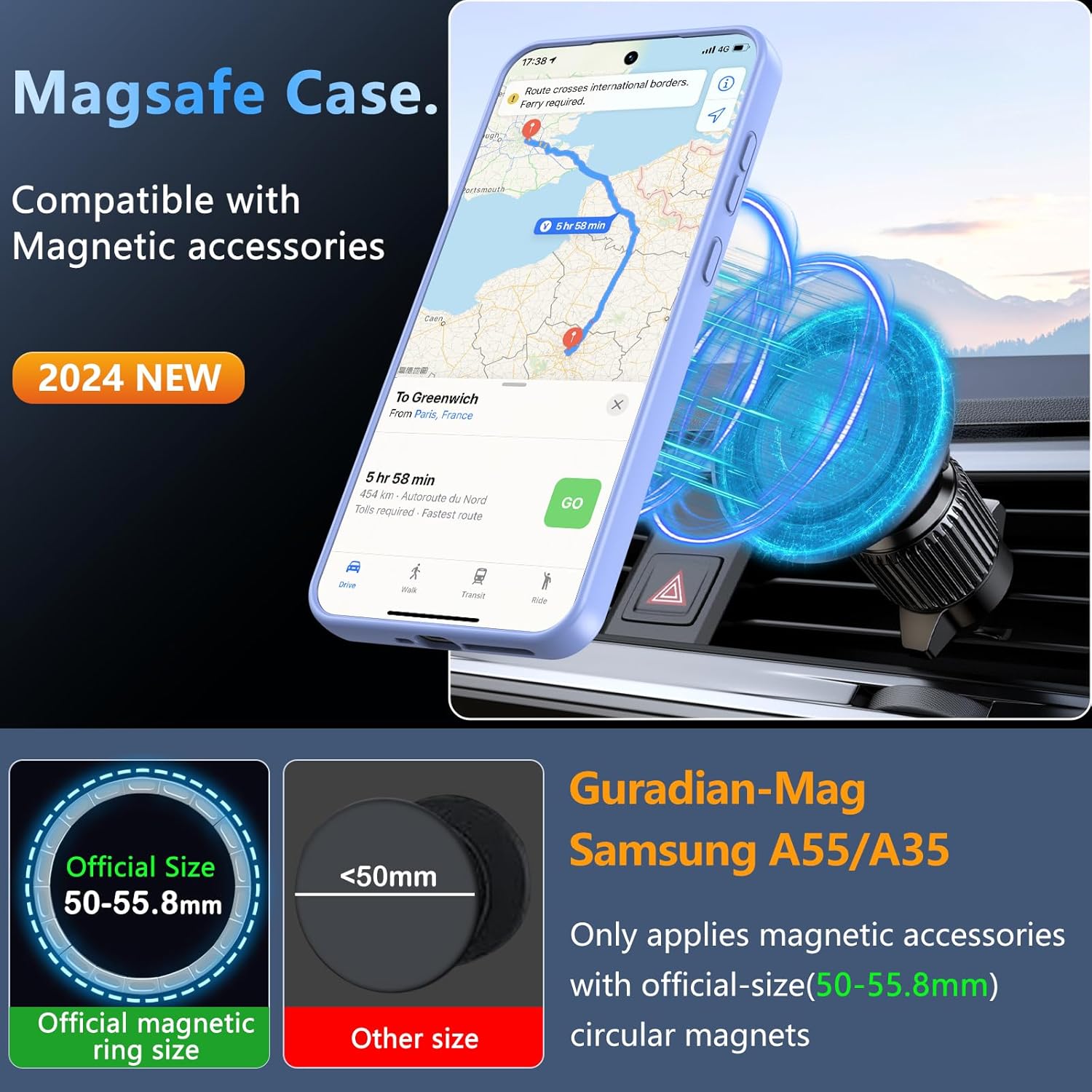 • [Супер магнитно привличане]: Този магнитен калъф за Samsung S25 5G подсилва магнитната връзка и осигурява автоматично подравняване с вграден магнитен пръстен N55. Калъфът се прикрепя добре към магнитни аксесоари като портфейли, стойки за кола и зарядни устройства.