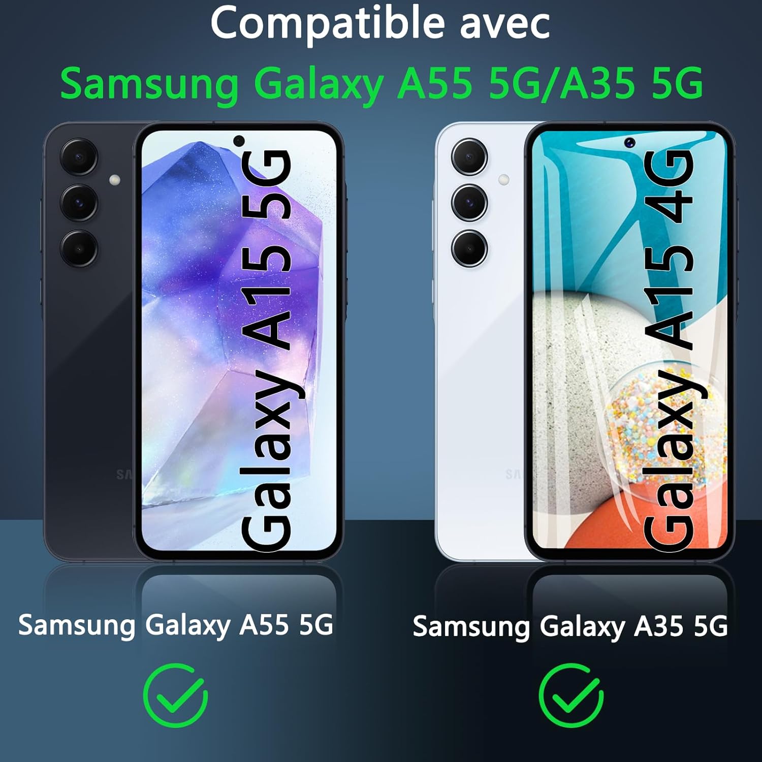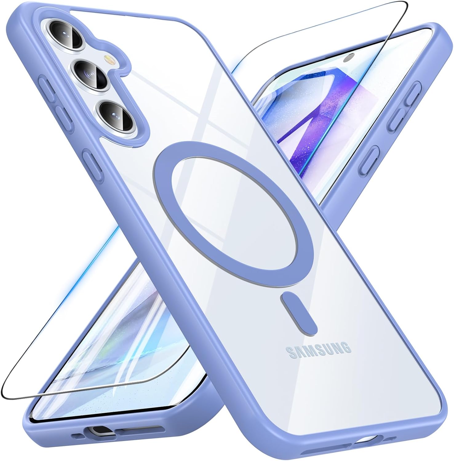 OWKEY калъф за Samsung Galaxy A35 5G, магнитен калъф за мобилен телефон Samsung A35 за MagSafe със защитно стъкло, тънък военен защитен калъф за Samsung Galaxy A35 (син)
