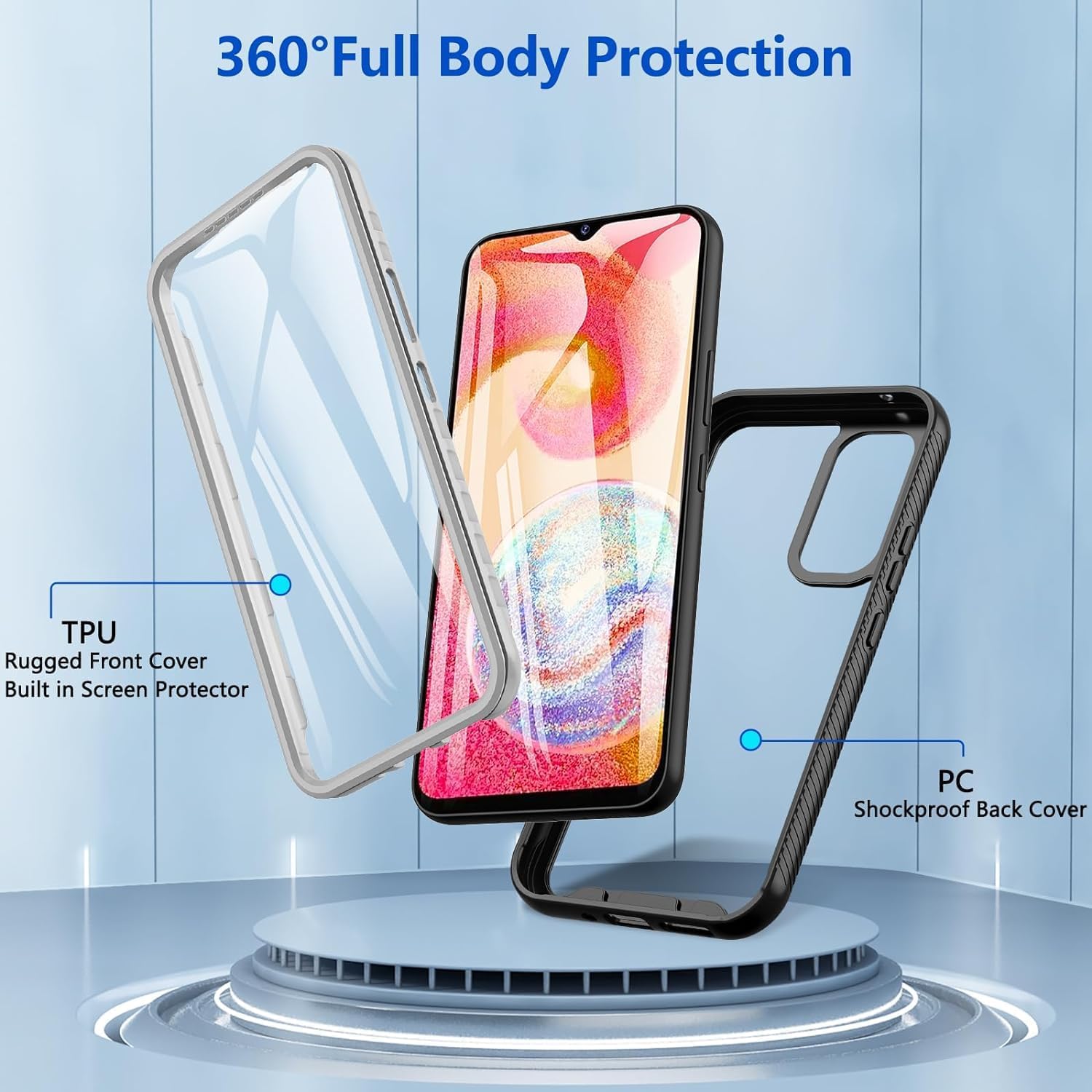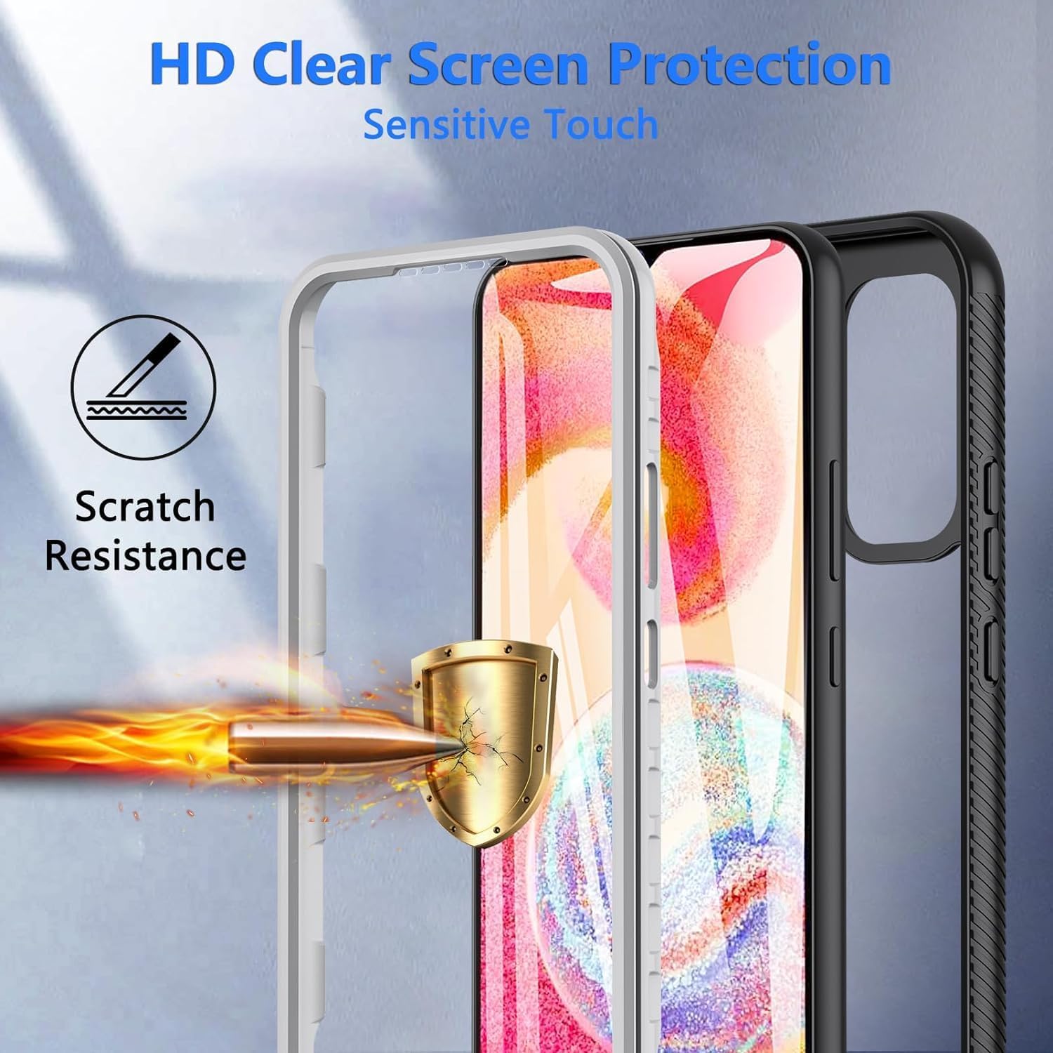 OWKEY калъф за Samsung Galaxy A54, удароустойчив силиконов калъф за мобилен телефон Samsung A54 5G, 360° всестранна защита, защитен калъф с вграден протектор за екрана, предпазващ калъф за Samsung Galaxy A54