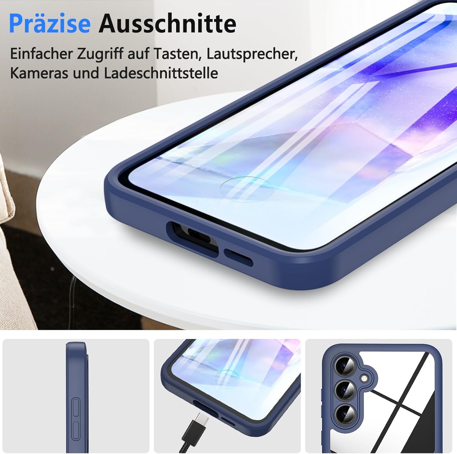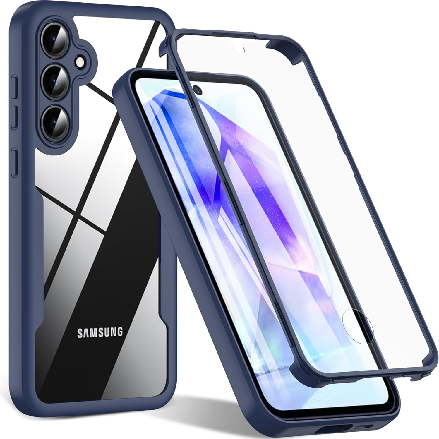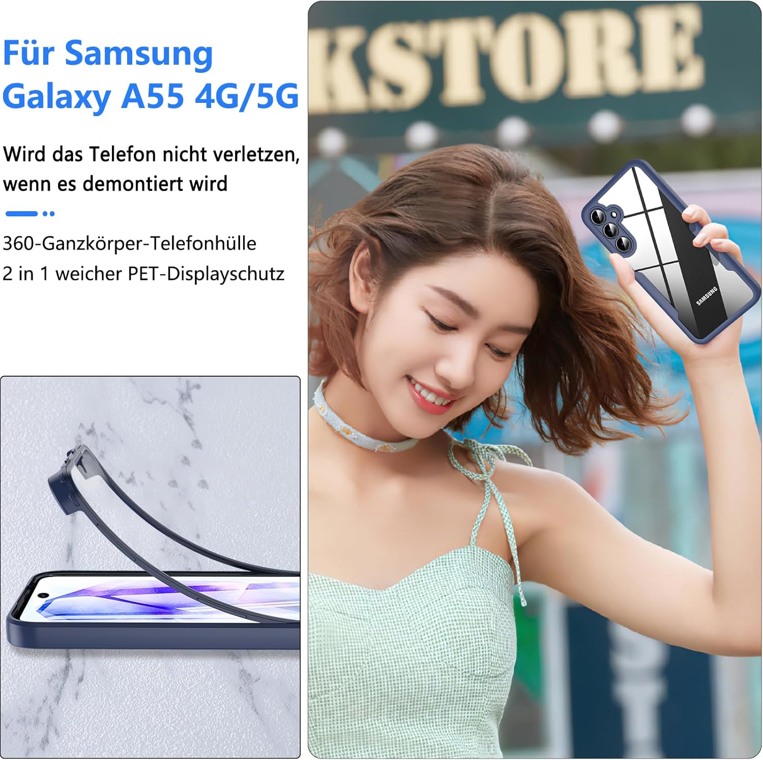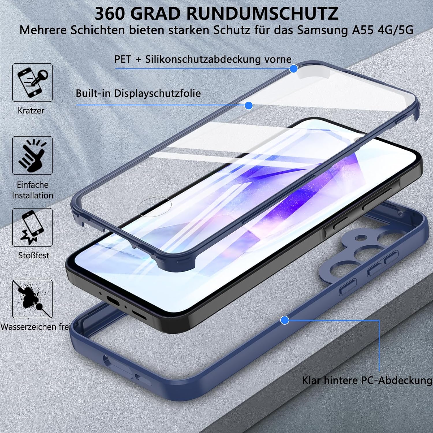 OWKEY калъф за Samsung Galaxy A55, удароустойчив силиконов калъф за мобилен телефон Samsung A55 5G, 360° всестранна защита, защитен калъф с вграден протектор за екрана, предпазващ калъф за Samsung Galaxy A55