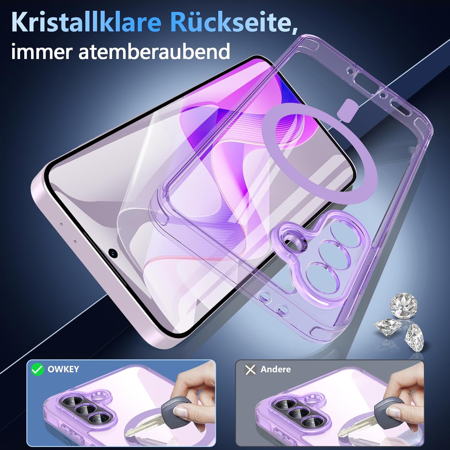 OWKEY калъф за Samsung Galaxy A56 5G, магнитен калъф за Samsung A56 5G за MagSafe със закалено стъкло, [военен клас защита] удароустойчив калъф за мобилен телефон Samsung A56 5G прозрачен защитен гръб
