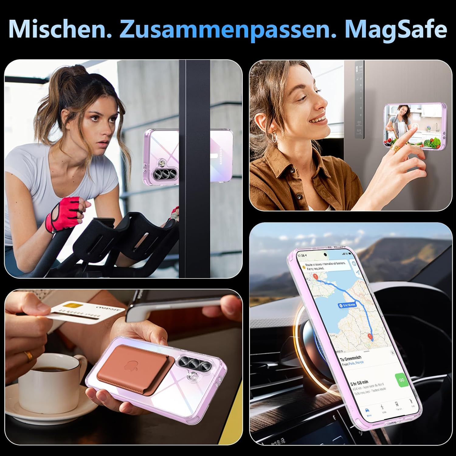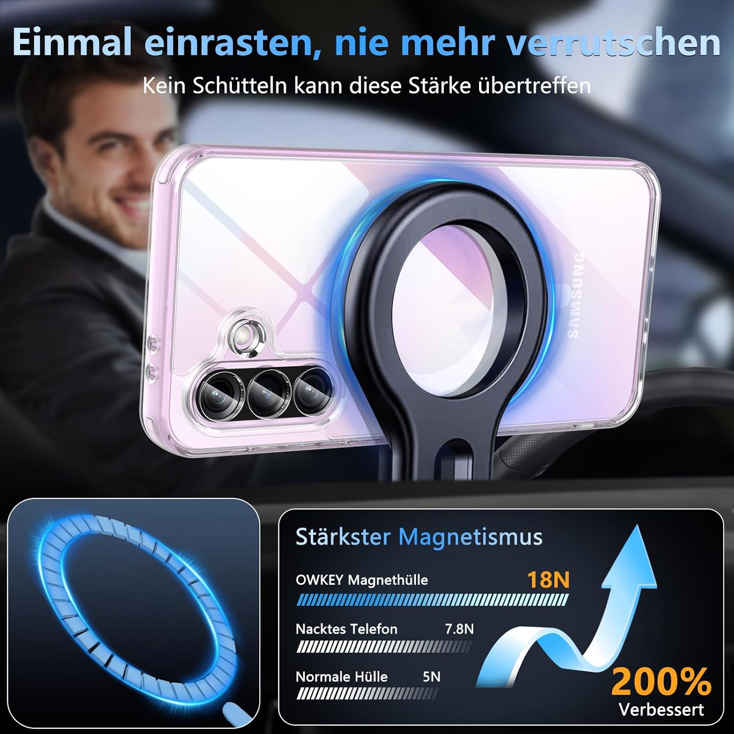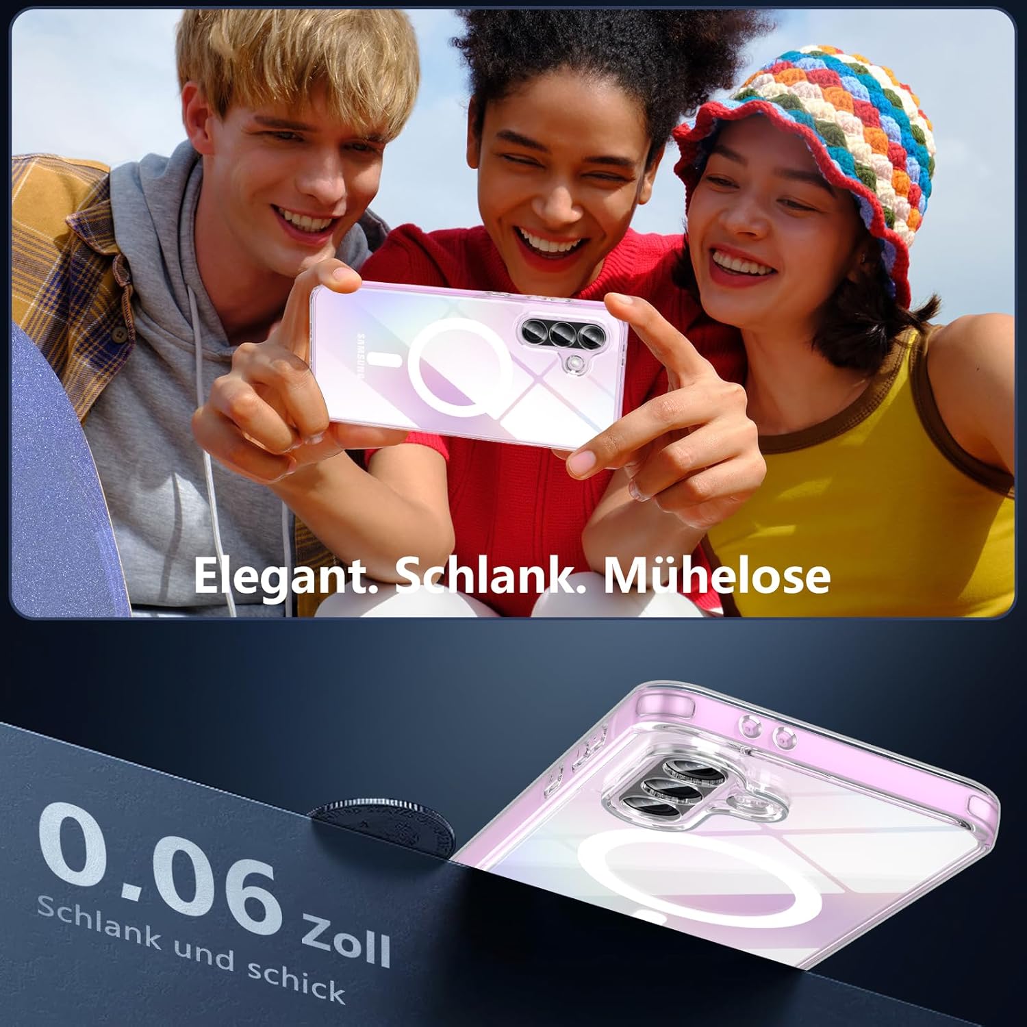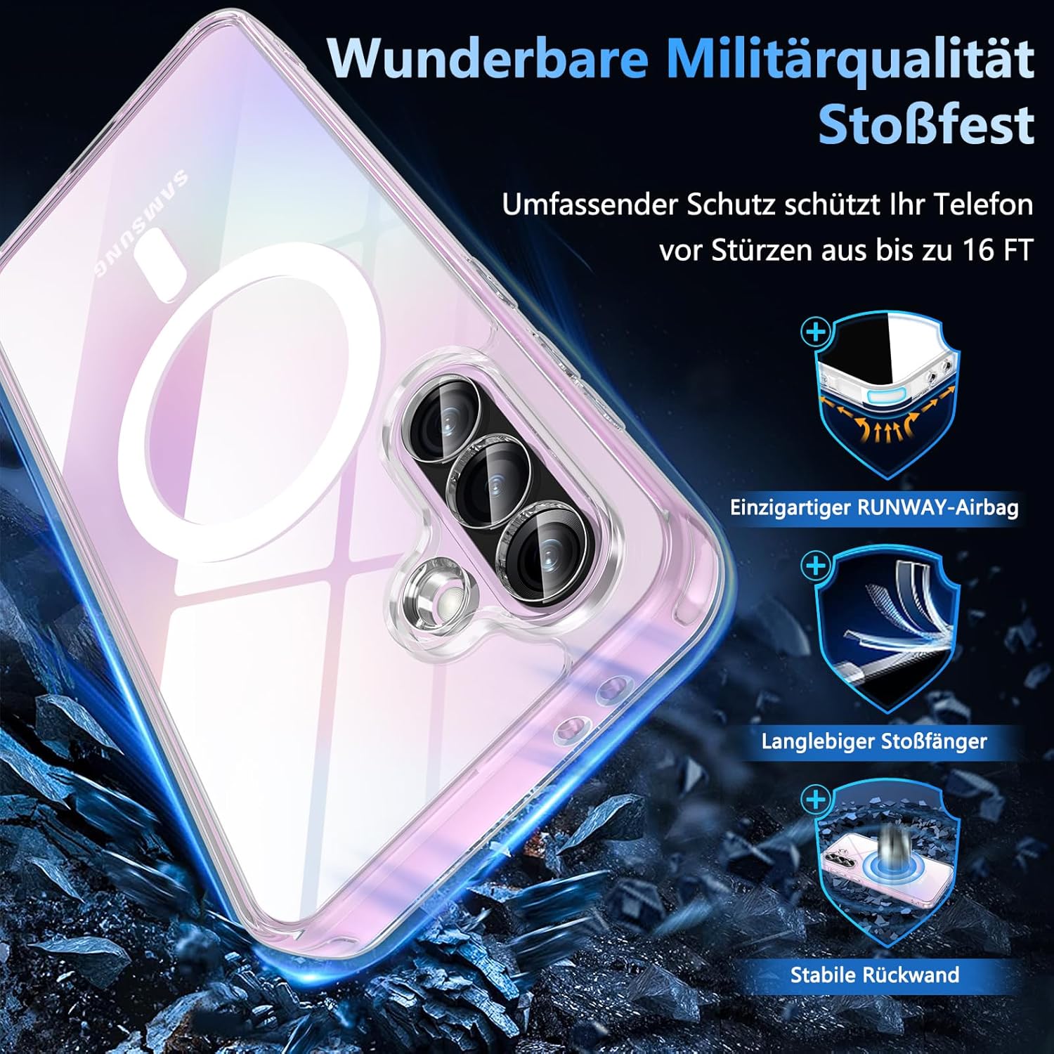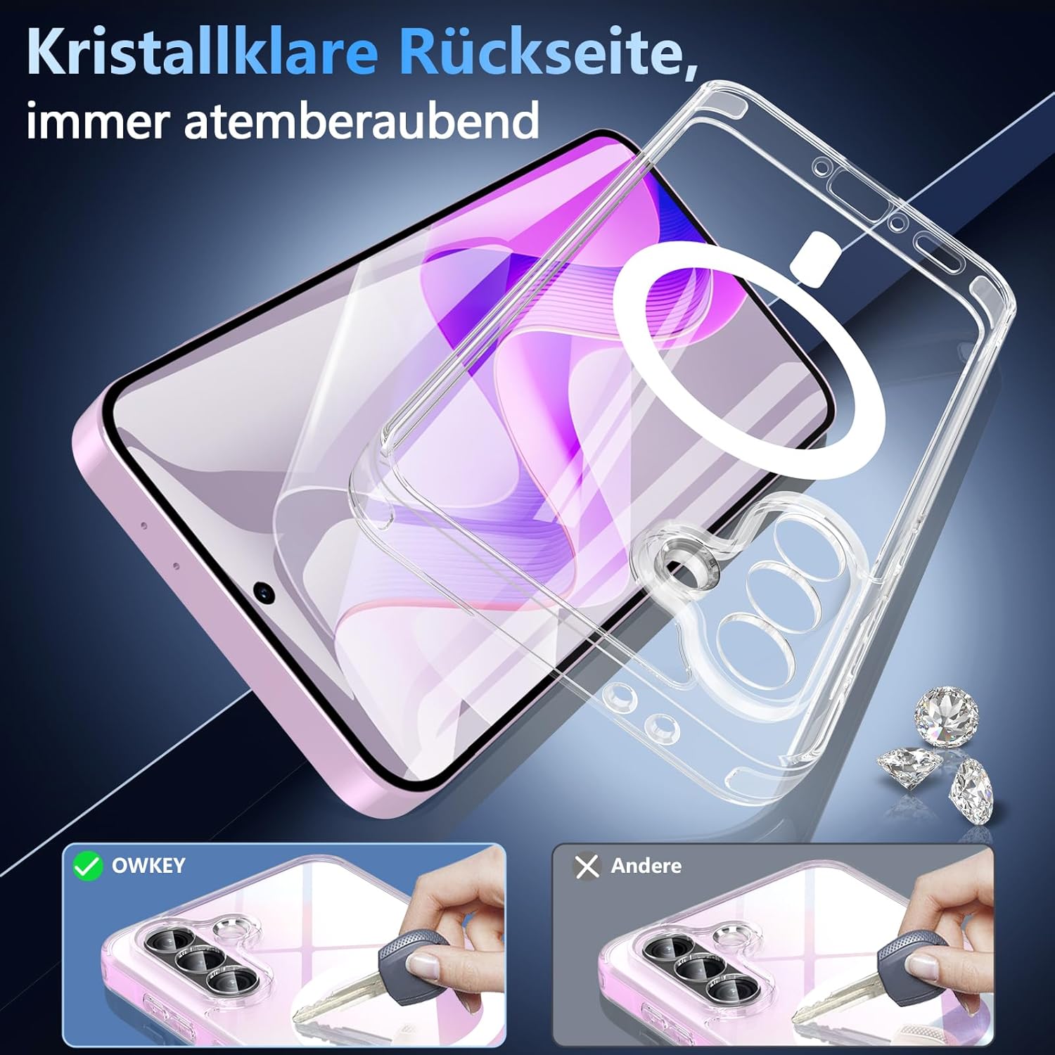 OWKEY калъф за Samsung Galaxy A56 5G, магнитен калъф за Samsung A56 5G за MagSafe със закалено стъкло, [военен клас защита] удароустойчив калъф за мобилен телефон Samsung A56 5G прозрачен защитен гръб