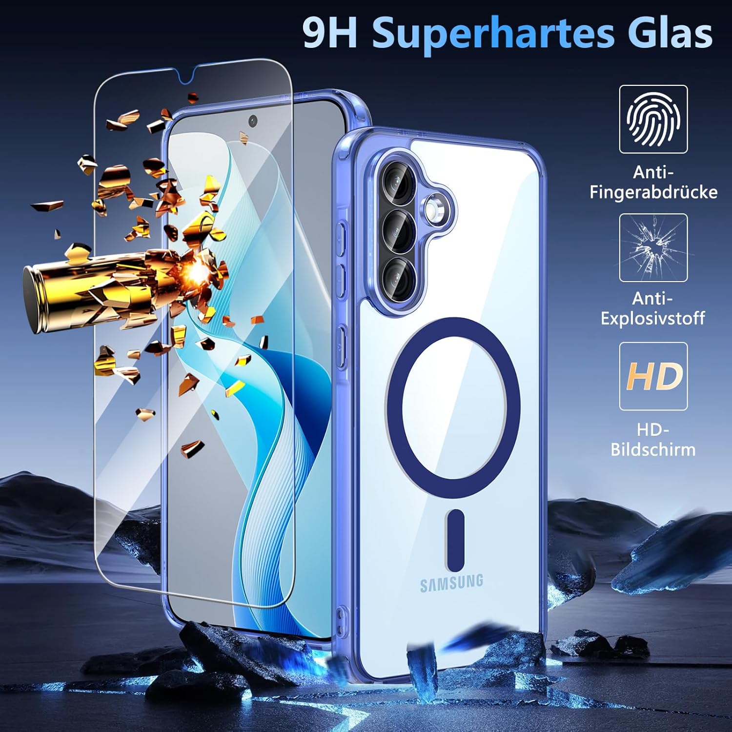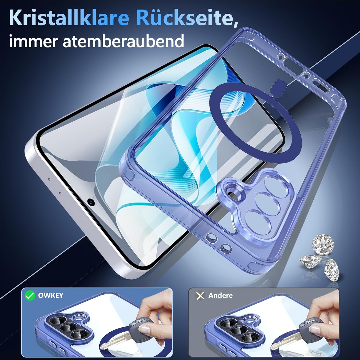 OWKEY калъф за Samsung Galaxy A56 5G, магнитен калъф за Samsung A56 5G за MagSafe със закалено стъкло, [военен клас защита] удароустойчив калъф за мобилен телефон Samsung A56 5G прозрачен защитен гръб