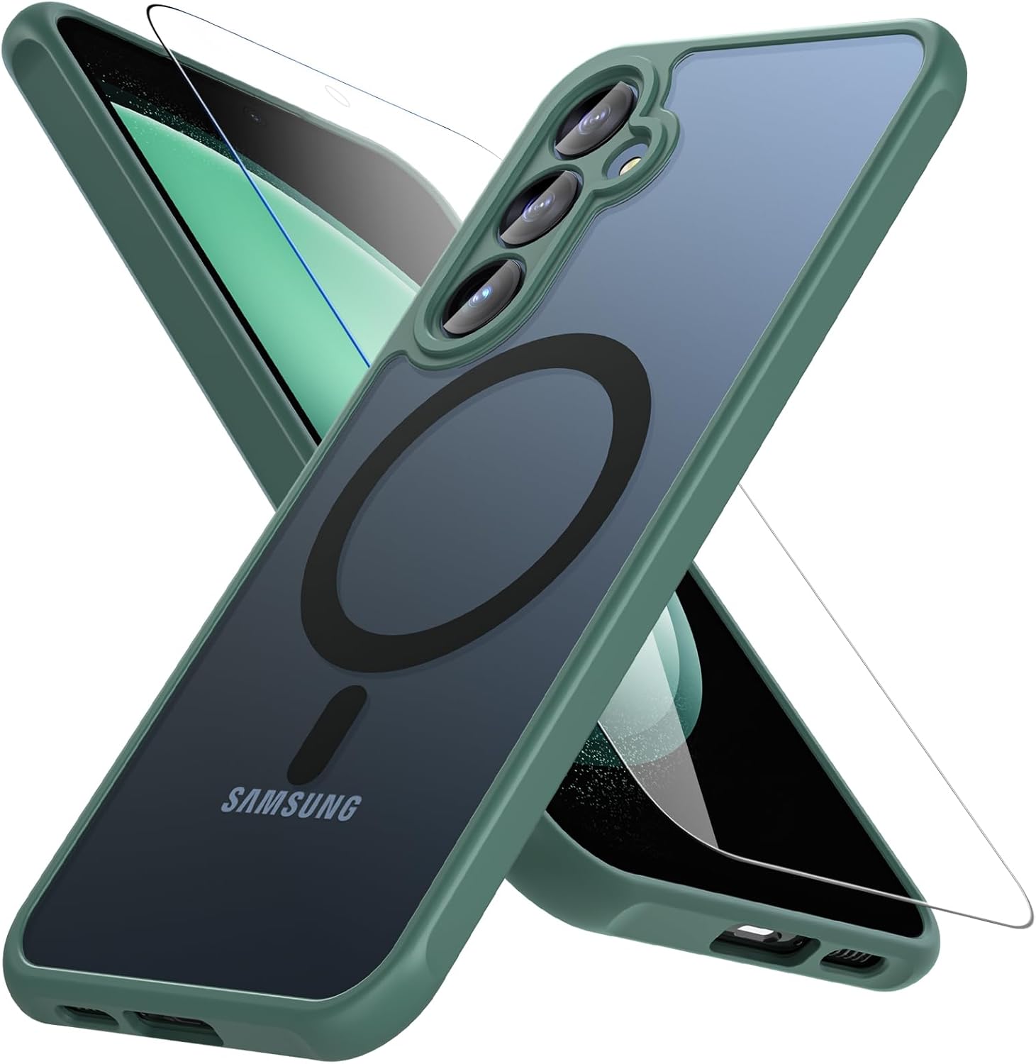 OWKEY Калъф за Samsung Galaxy S23 FE за MagSafe със защита от закалено стъкло [Военен клас защита] Удароустойчив магнитен калъф за мобилен телефон Samsung S23 FE Калъф, тънък, за външен защитен калъф за