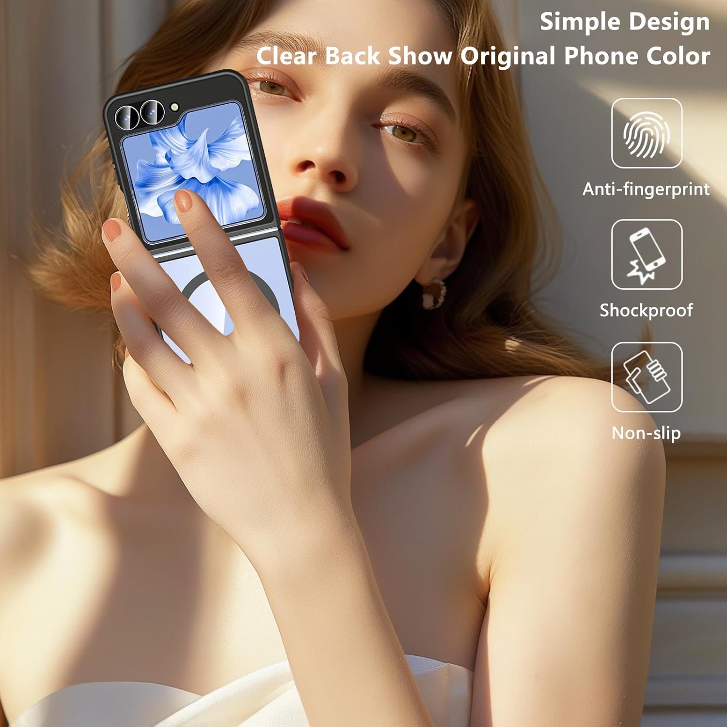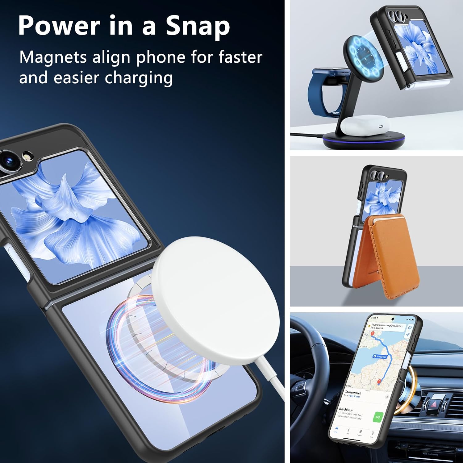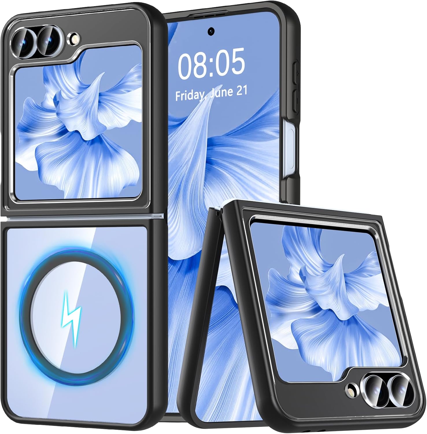 OWKEY калъф за Samsung Galaxy Z Flip 7 FE/Z Flip 6, магнитен калъф за мобилен телефон, съвместим с Magsafe, устойчив на надраскване, тънък, защитен калъф, броня (черен)