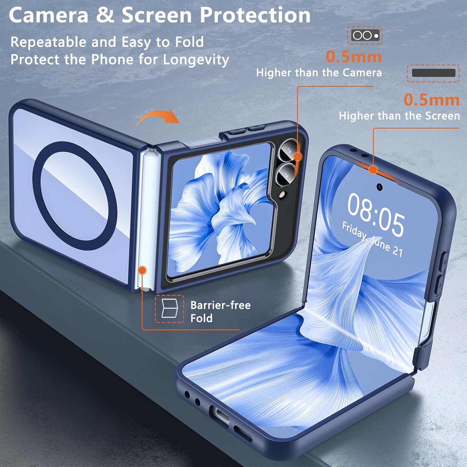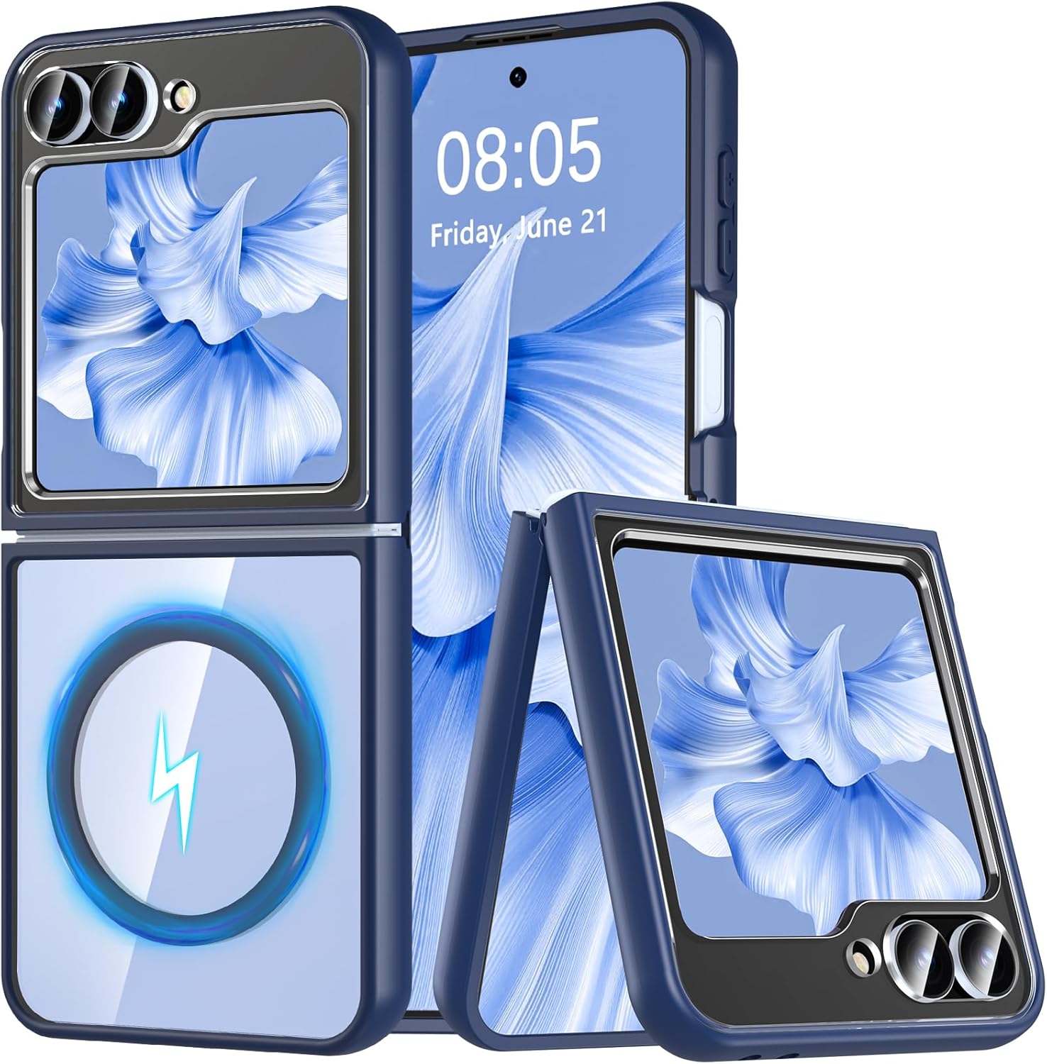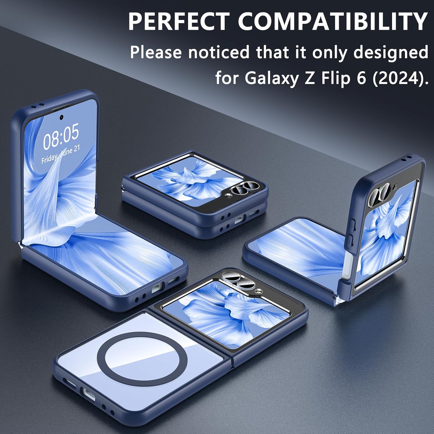 OWKEY калъф за Samsung Galaxy Z Flip 7 FE/Z Flip 6, магнитен калъф за мобилен телефон, съвместим с Magsafe, устойчив на надраскване, тънък, защитен калъф, броня (син)