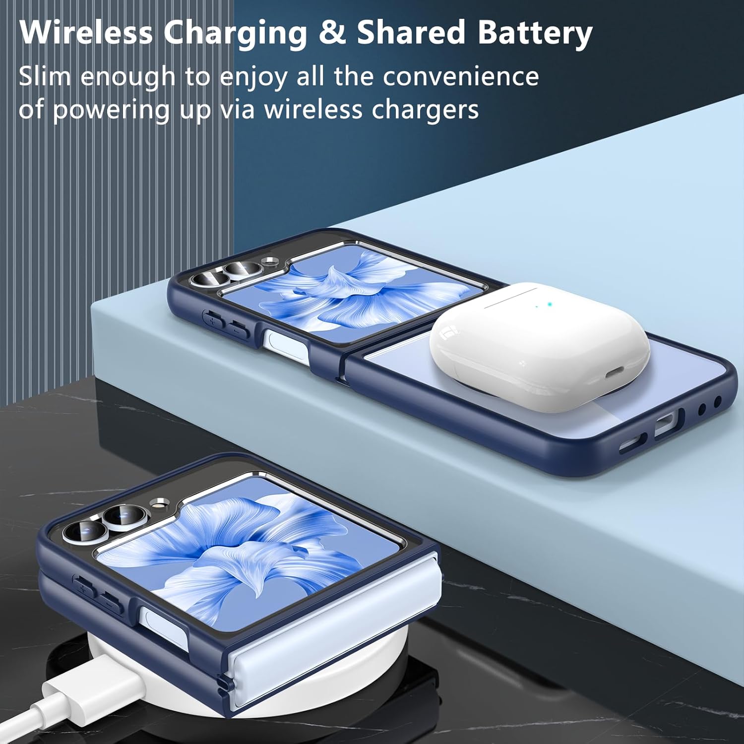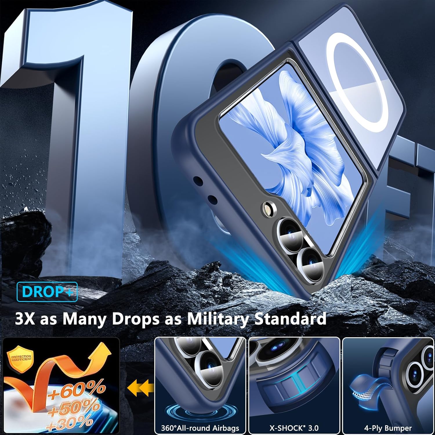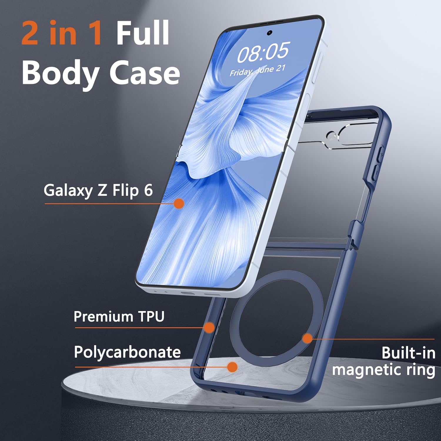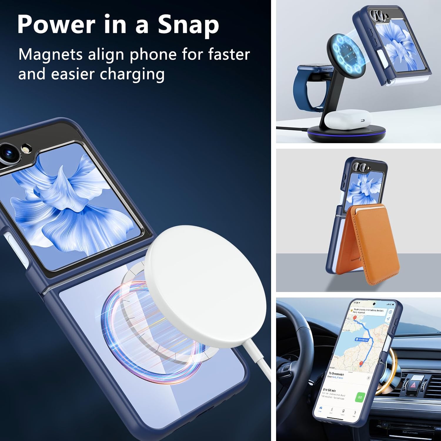 OWKEY калъф за Samsung Galaxy Z Flip 7 FE/Z Flip 6, магнитен калъф за мобилен телефон, съвместим с Magsafe, устойчив на надраскване, тънък, защитен калъф, броня (син)