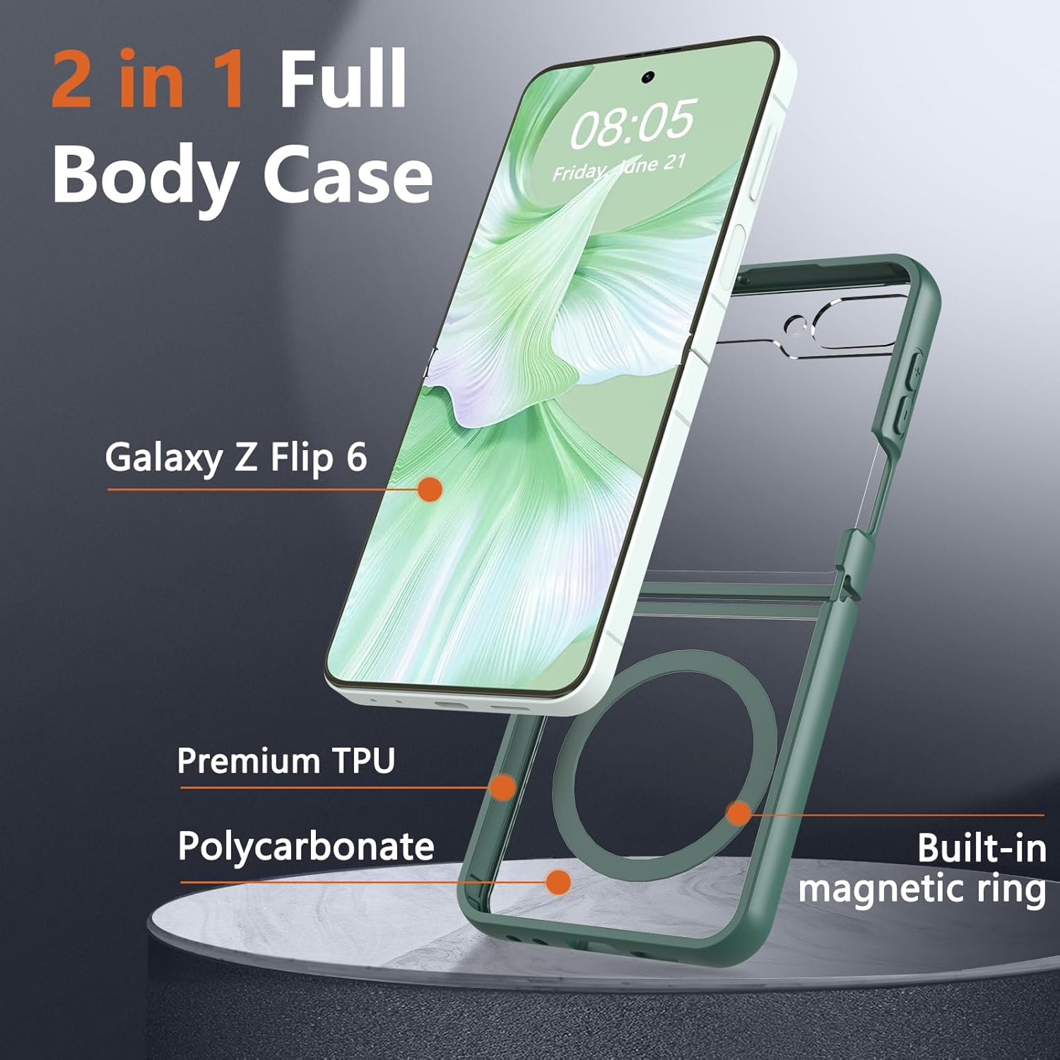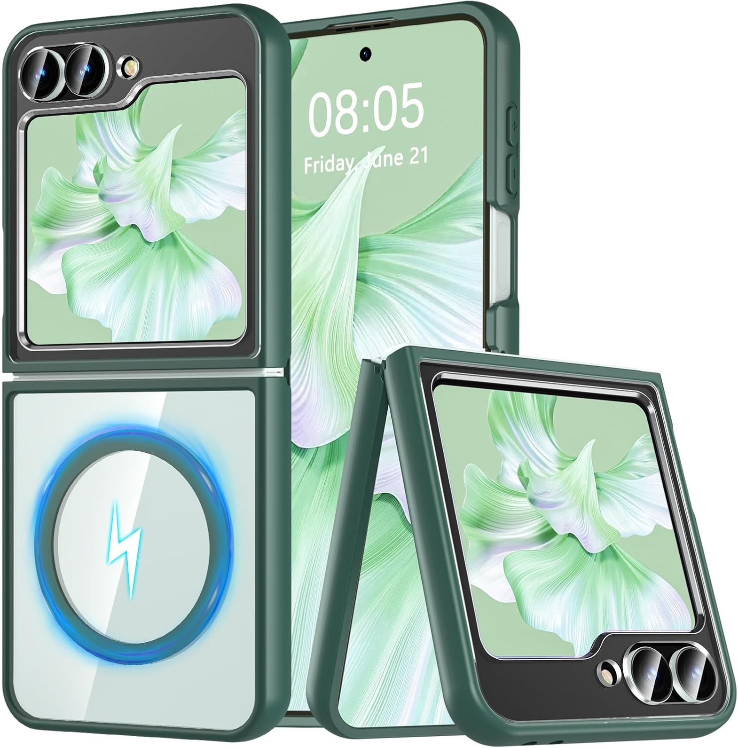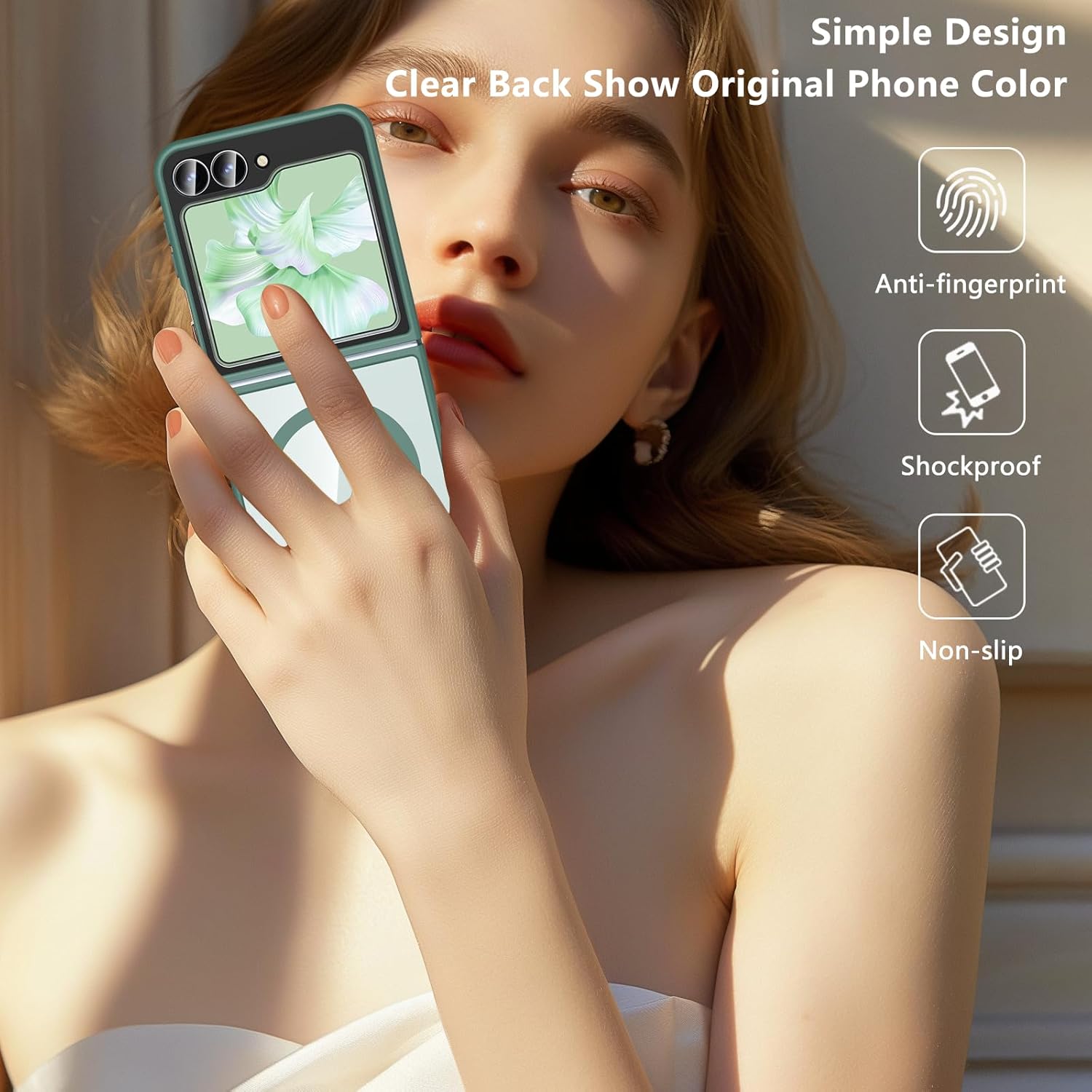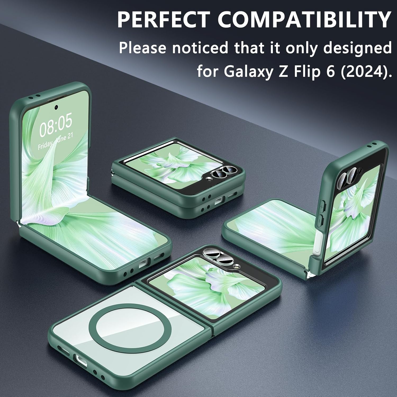 OWKEY калъф за Samsung Galaxy Z Flip 7 FE/Z Flip 6, магнитен калъф за мобилен телефон, съвместим с Magsafe, устойчив на надраскване, тънък, защитен калъф, броня (зелен)