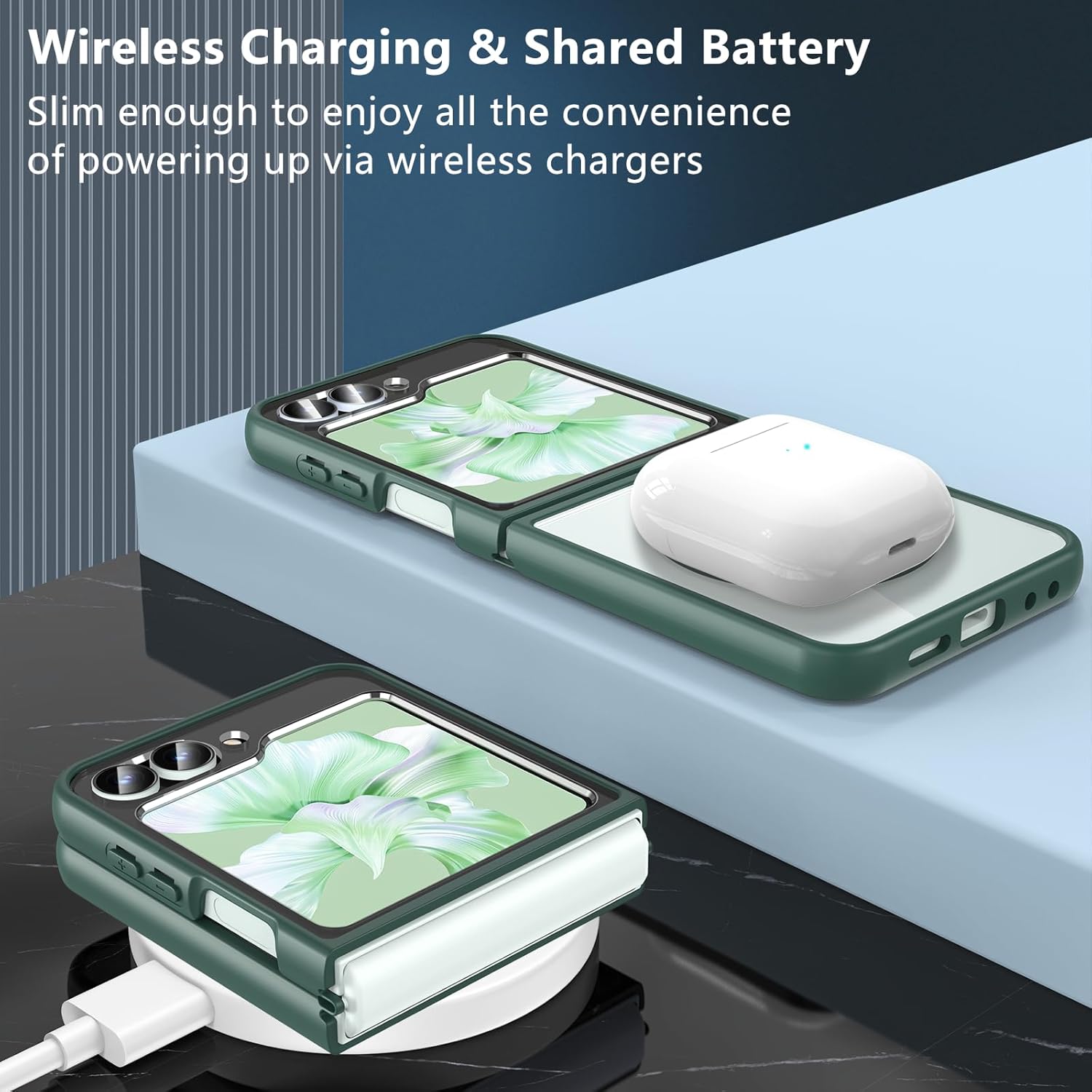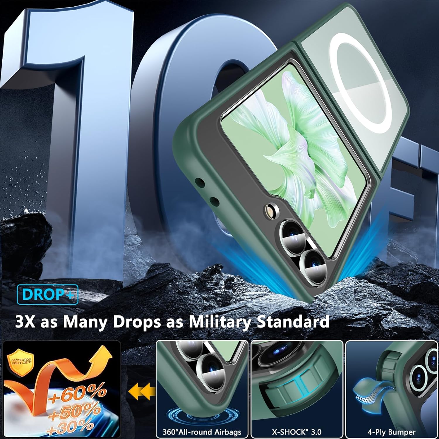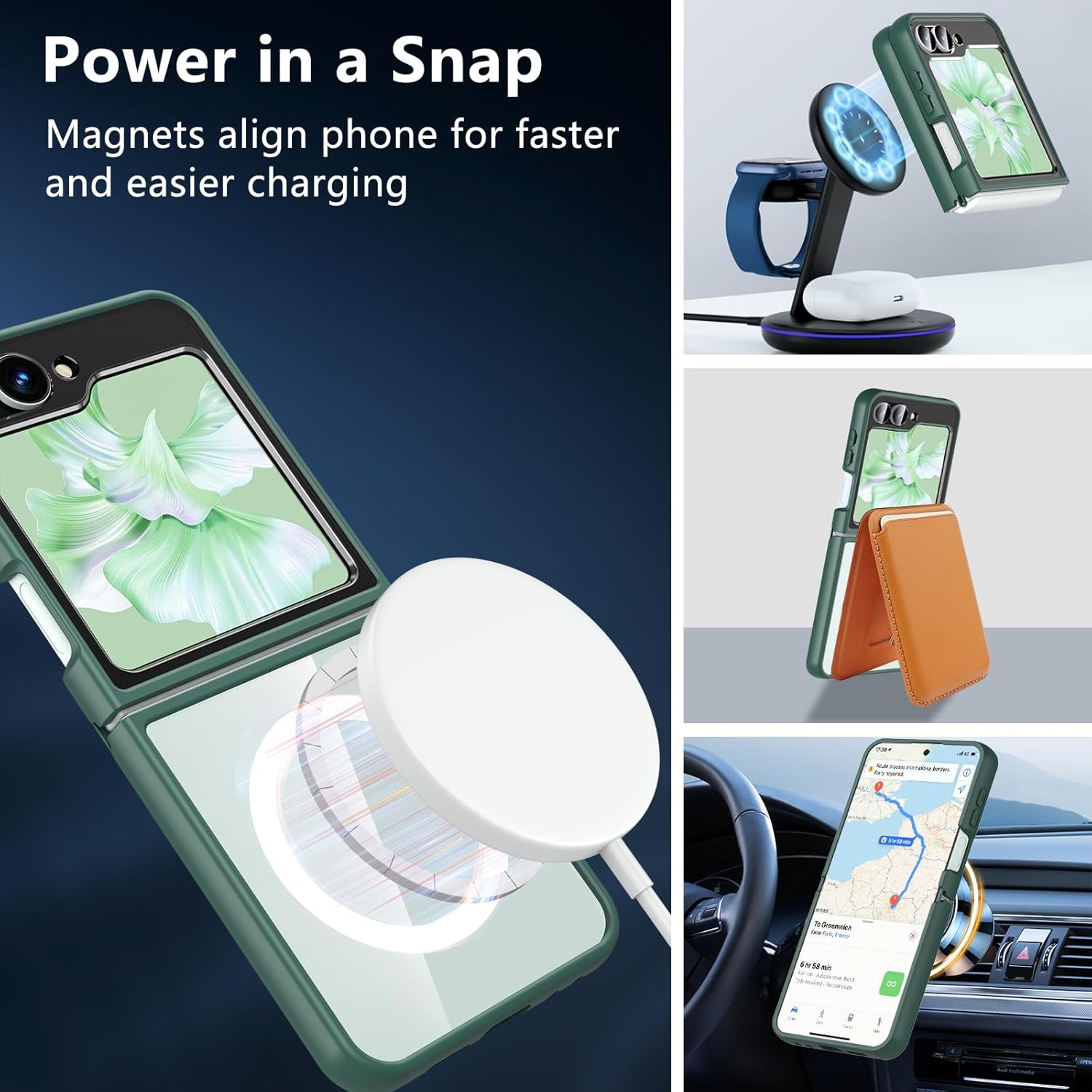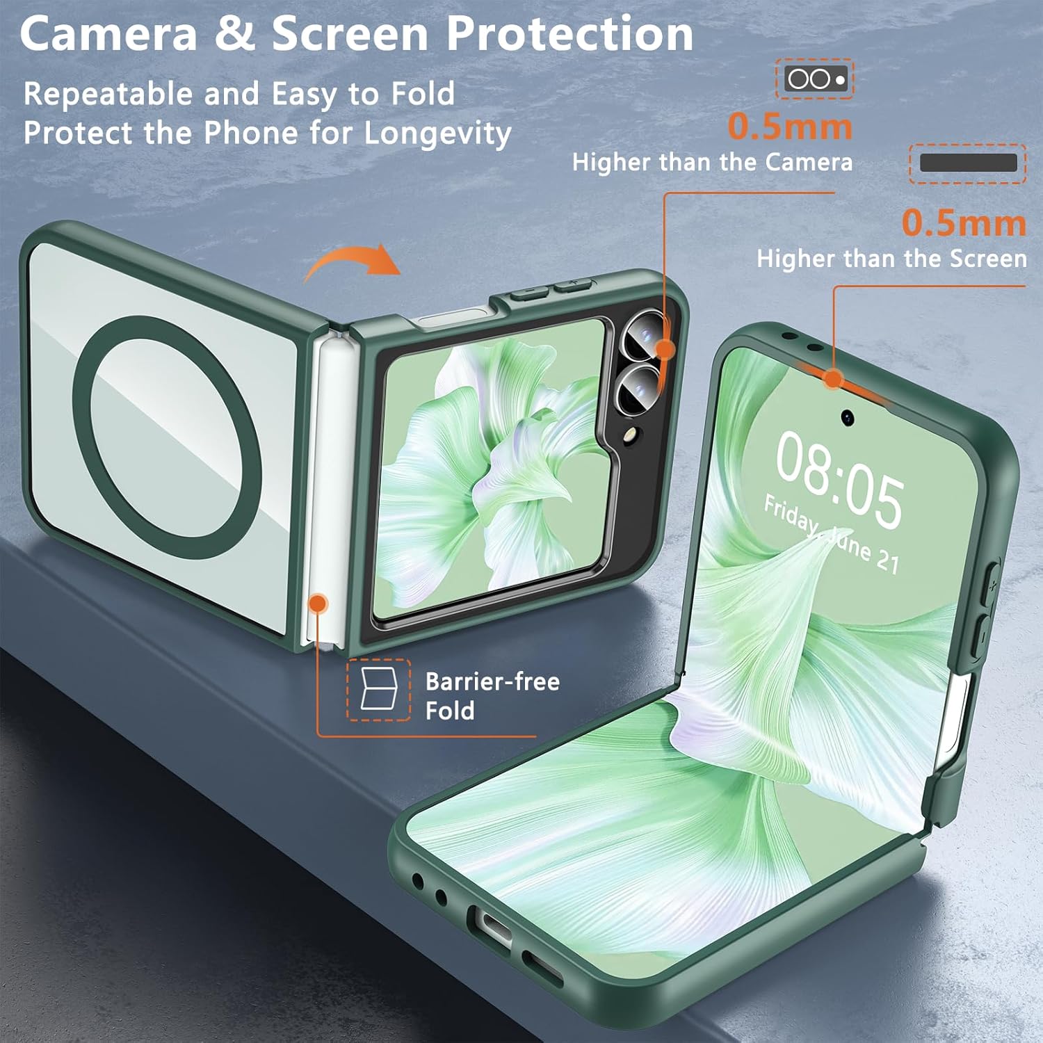 OWKEY калъф за Samsung Galaxy Z Flip 7 FE/Z Flip 6, магнитен калъф за мобилен телефон, съвместим с Magsafe, устойчив на надраскване, тънък, защитен калъф, броня (зелен)