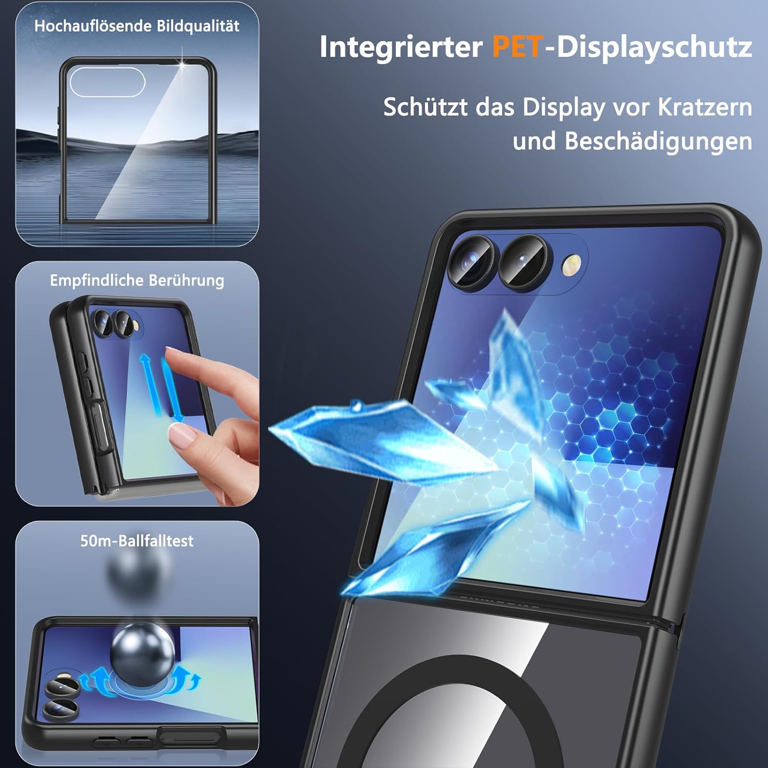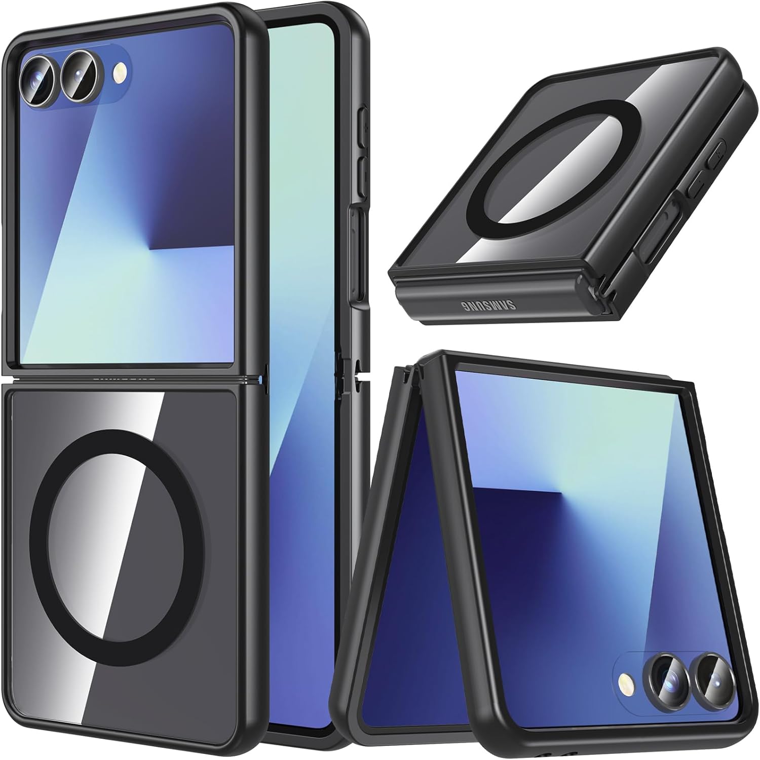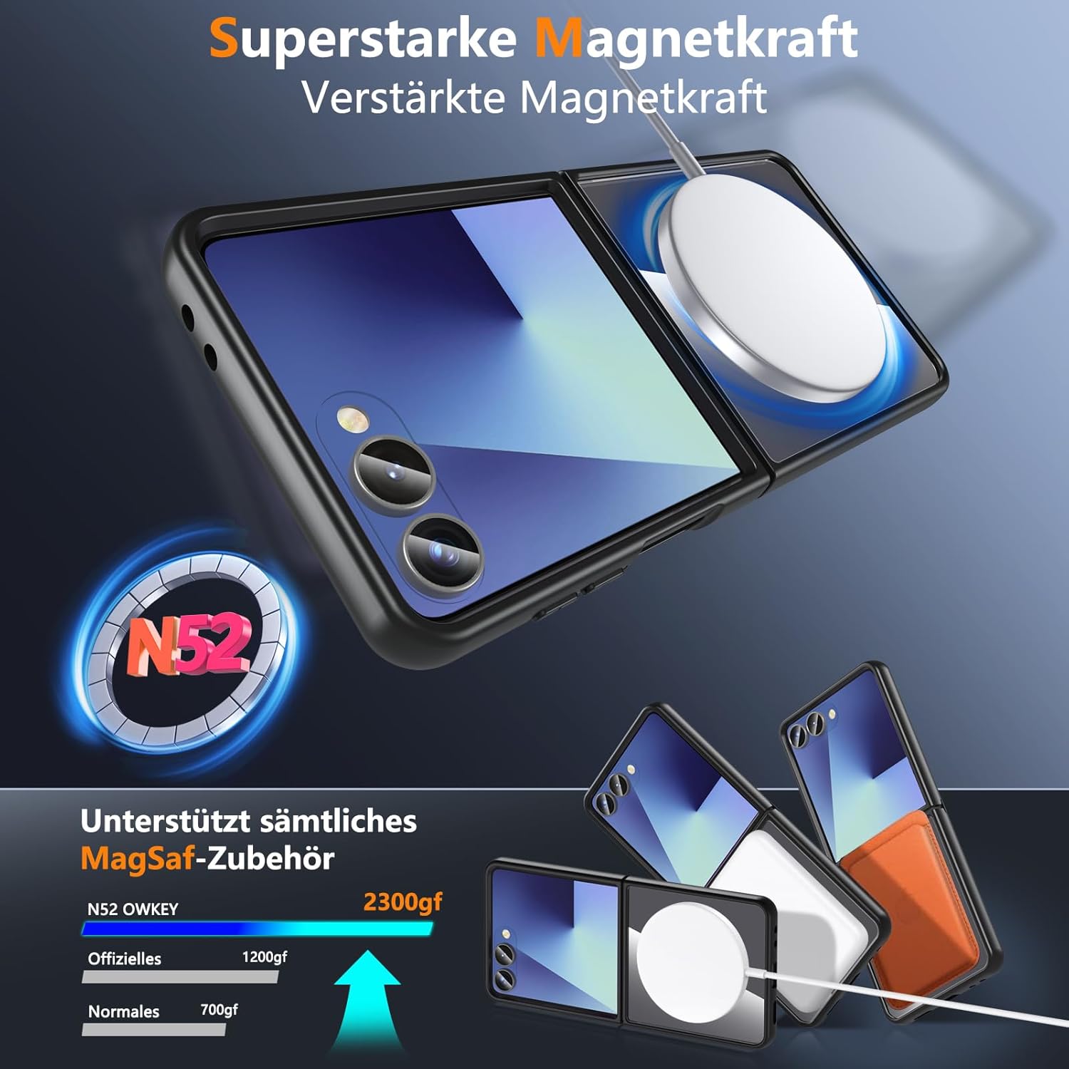 OWKEY калъф за Samsung Galaxy Z Flip 7, магнитен калъф за Samsung Flip 7, съвместим с Magsafe, военна защита, удароустойчив, калъф за мобилен телефон, калъф за Samsung Z Flip 7, тънък калъф за външна употреба, защитен