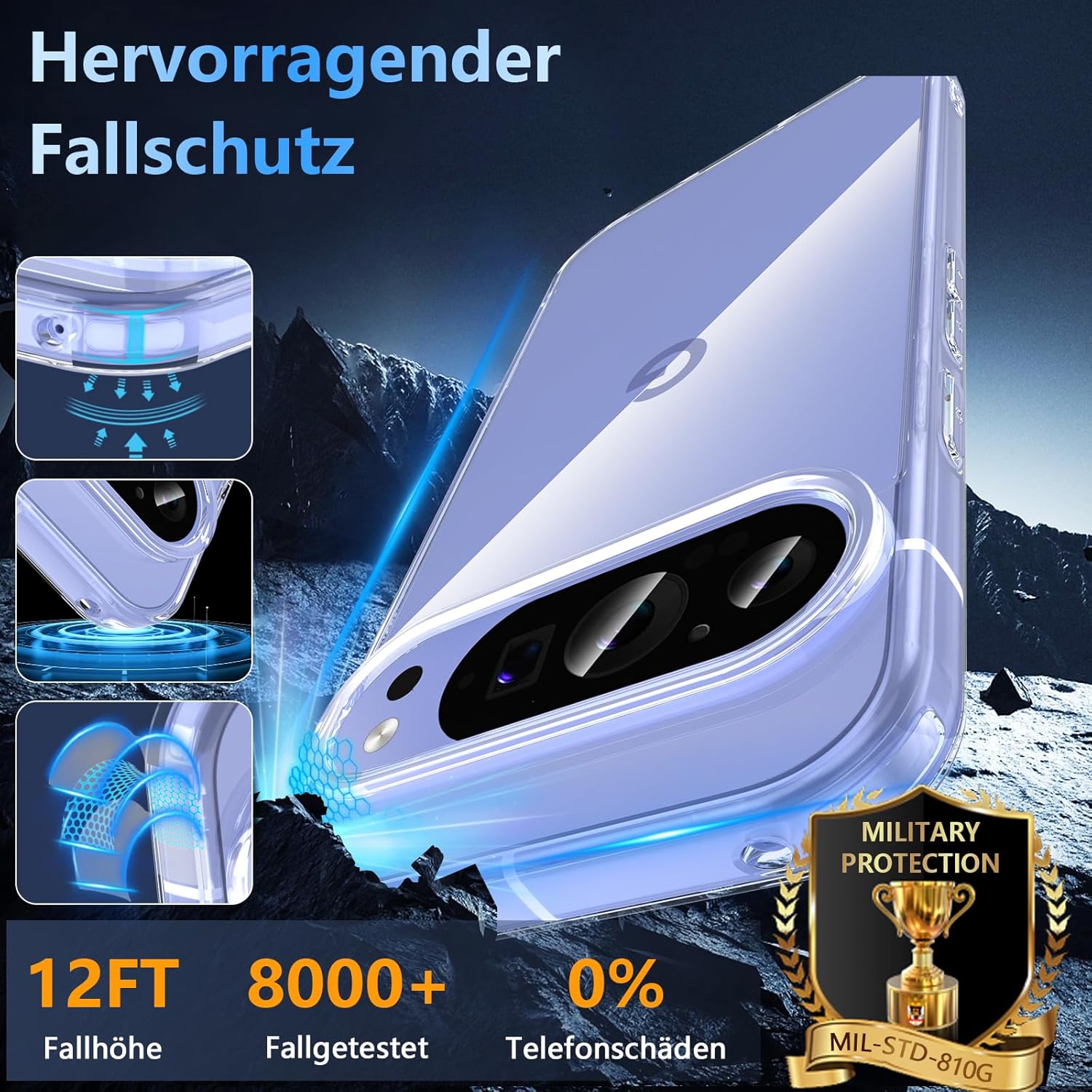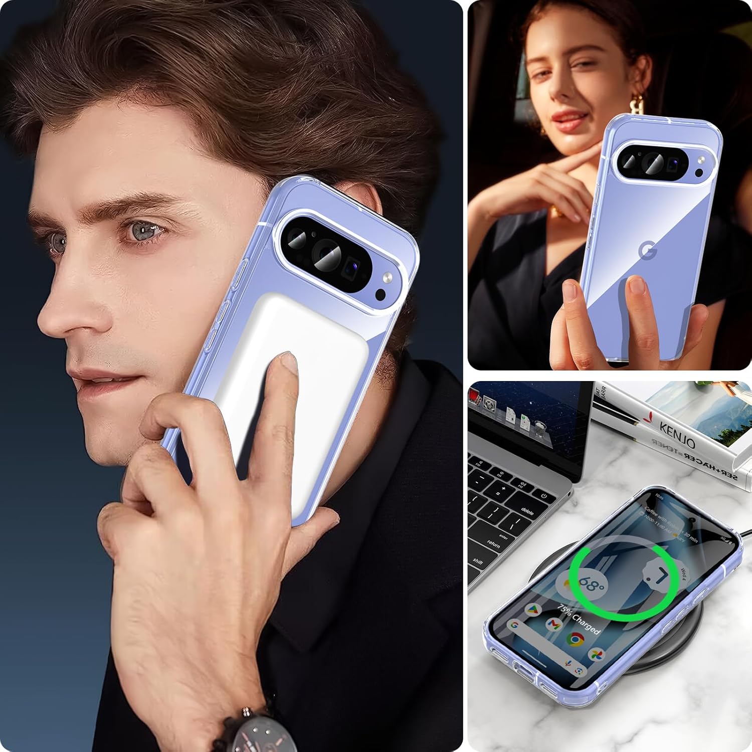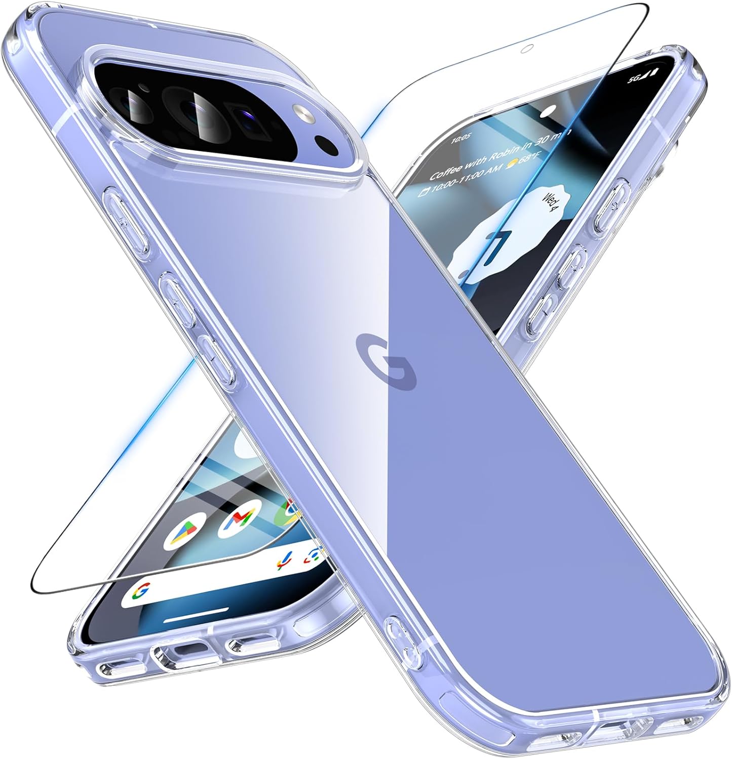 OWKEY Кейс за Google Pixel 10, Кейс за Google Pixel 10 Pro със закалено стъкло [Военен клас защита] Прозрачен заден удароустойчив кейс за мобилен телефон PIXEL10|10 Pro Кейс Тънък капак Защитен кейс