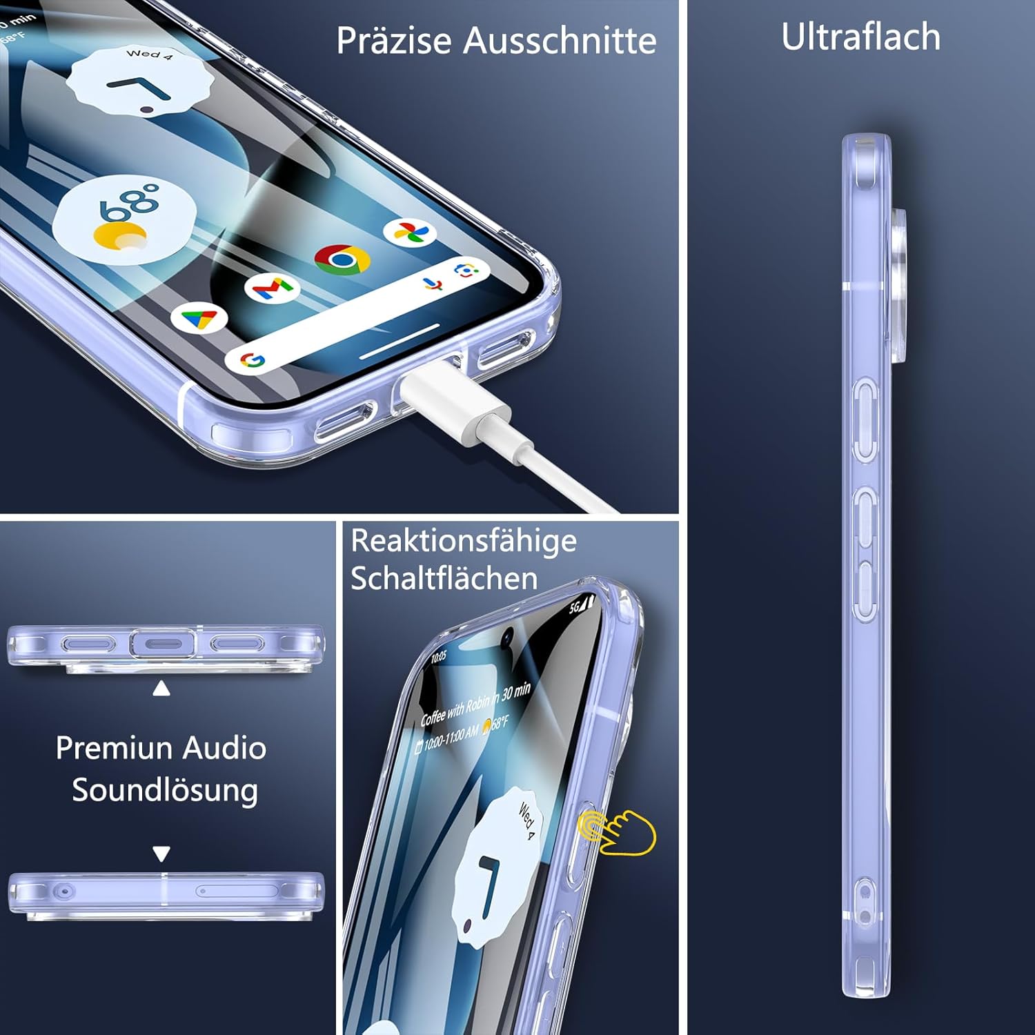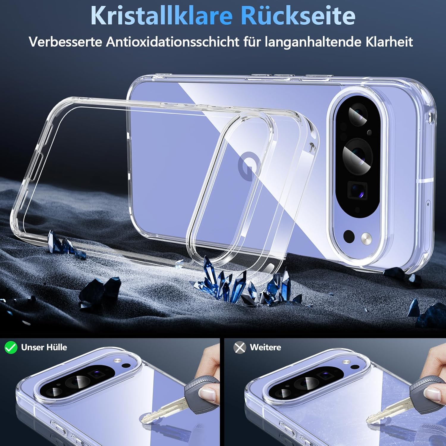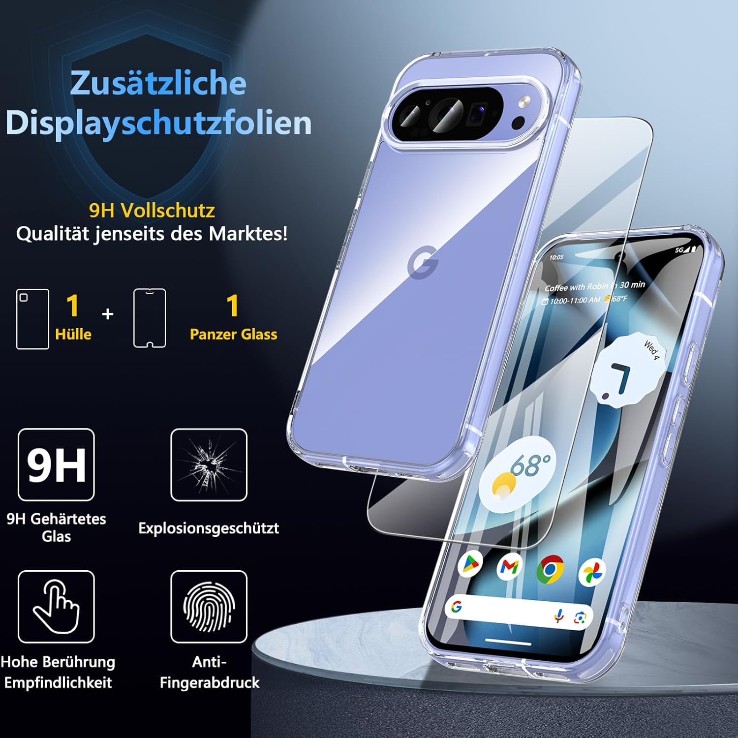 OWKEY Кейс за Google Pixel 10, Кейс за Google Pixel 10 Pro със закалено стъкло [Военен клас защита] Прозрачен заден удароустойчив кейс за мобилен телефон PIXEL10|10 Pro Кейс Тънък капак Защитен кейс