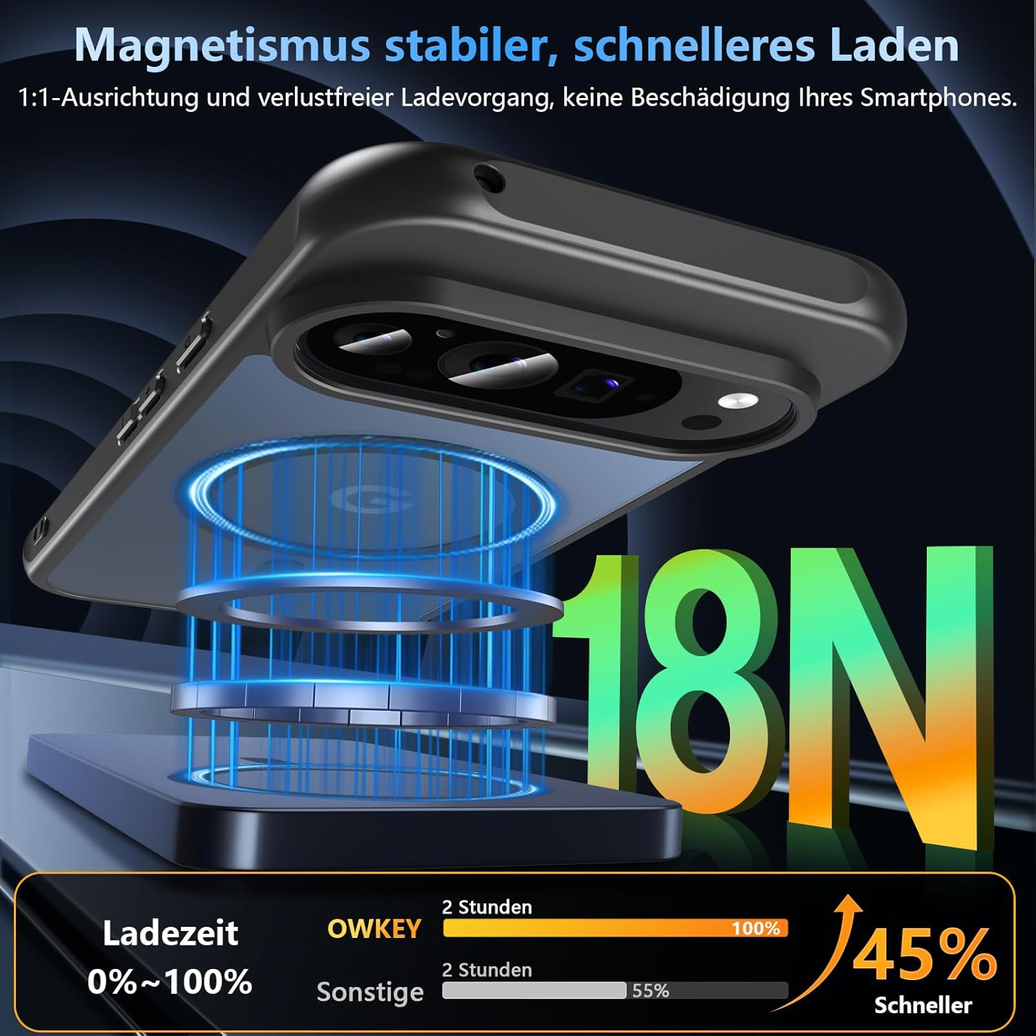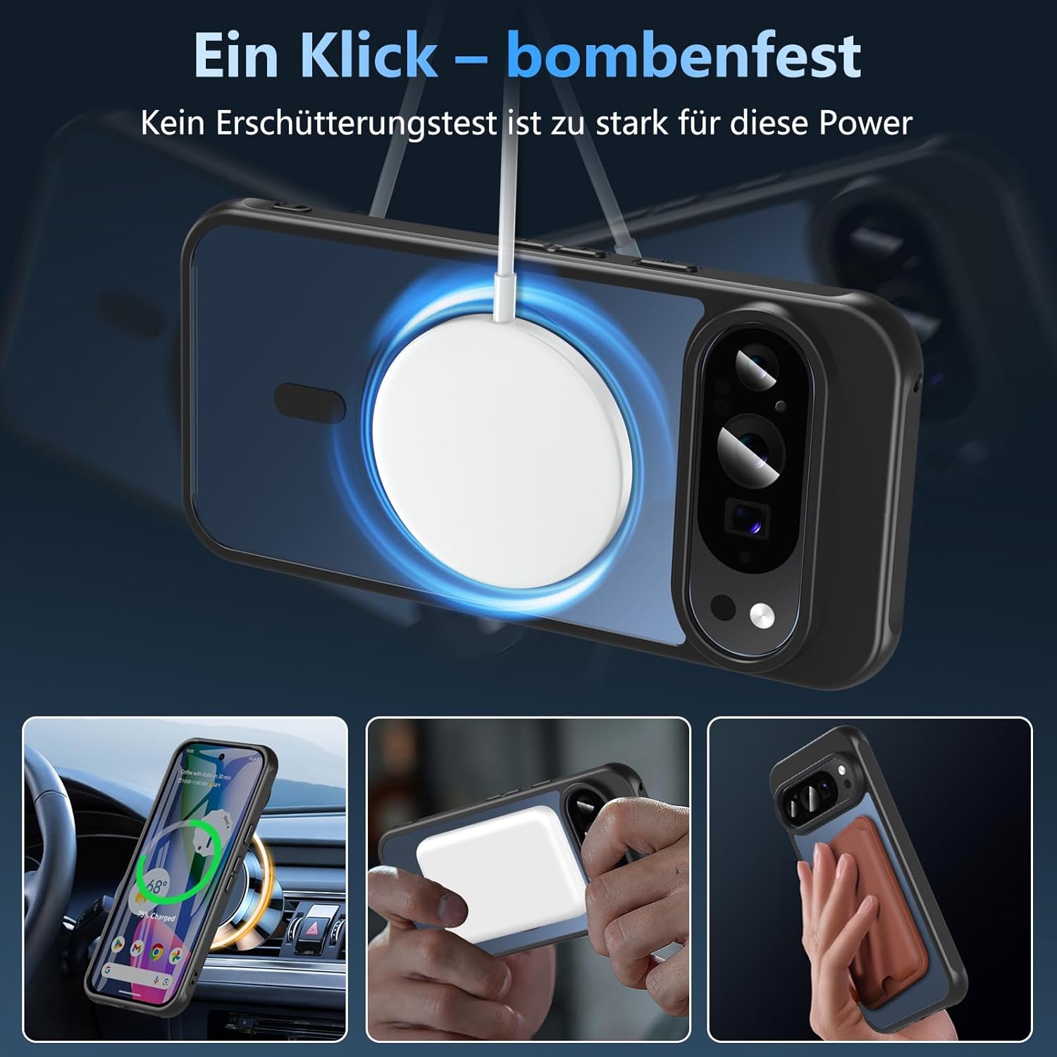 OWKEY Кейс за Google Pixel 10/10 Pro, Магнитен калъф за мобилен телефон Pixel 10/10 Pro за MagSafe със защитно стъкло, тънък военен защитен калъф, устойчив на надраскване (черен)