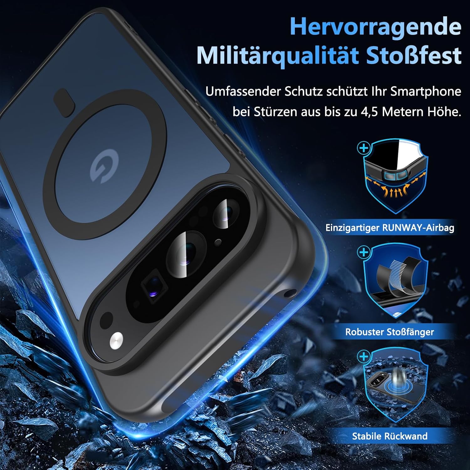 • Защита от военен клас: магнитен калъф за мобилен телефон Galaxy S25, полупрозрачната задна плоча е сертифицирана за тест за падане, има 4 вградени въздушни възглавници в ъглите за абсорбиране на удари, може да предпази вашия телефон Samsung Galaxy S25 от случайни падания, удари и драскотини.