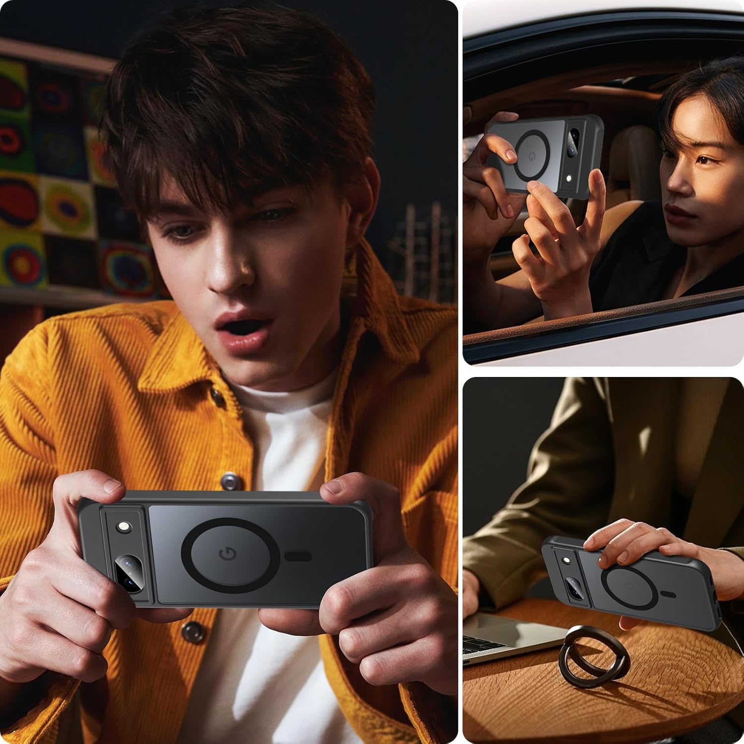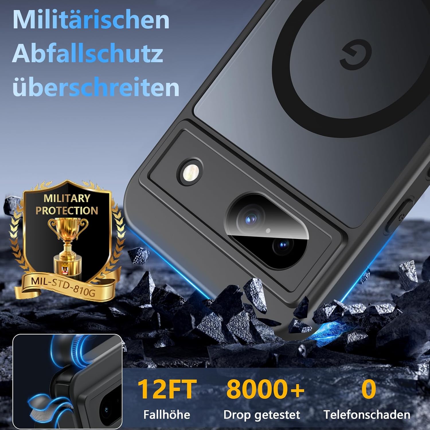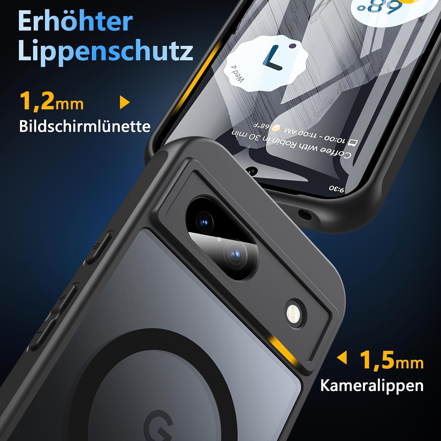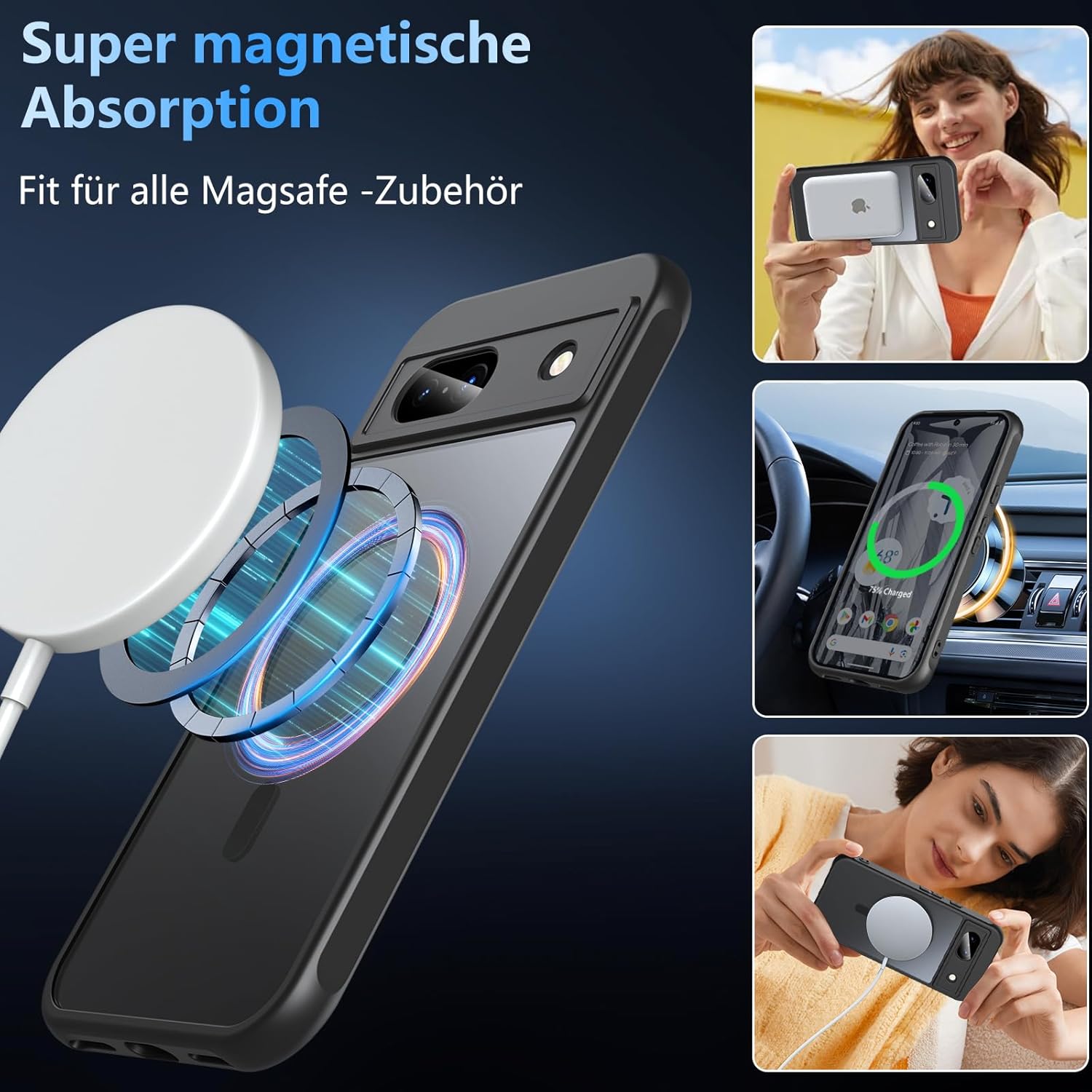 OWKEY Кейс за Google Pixel 8A 5G, Магнитен калъф за мобилен телефон Google Pixel 8A за MagSafe със защитно стъкло, тънък военен защитен калъф за Google Pixel 8A (черен)