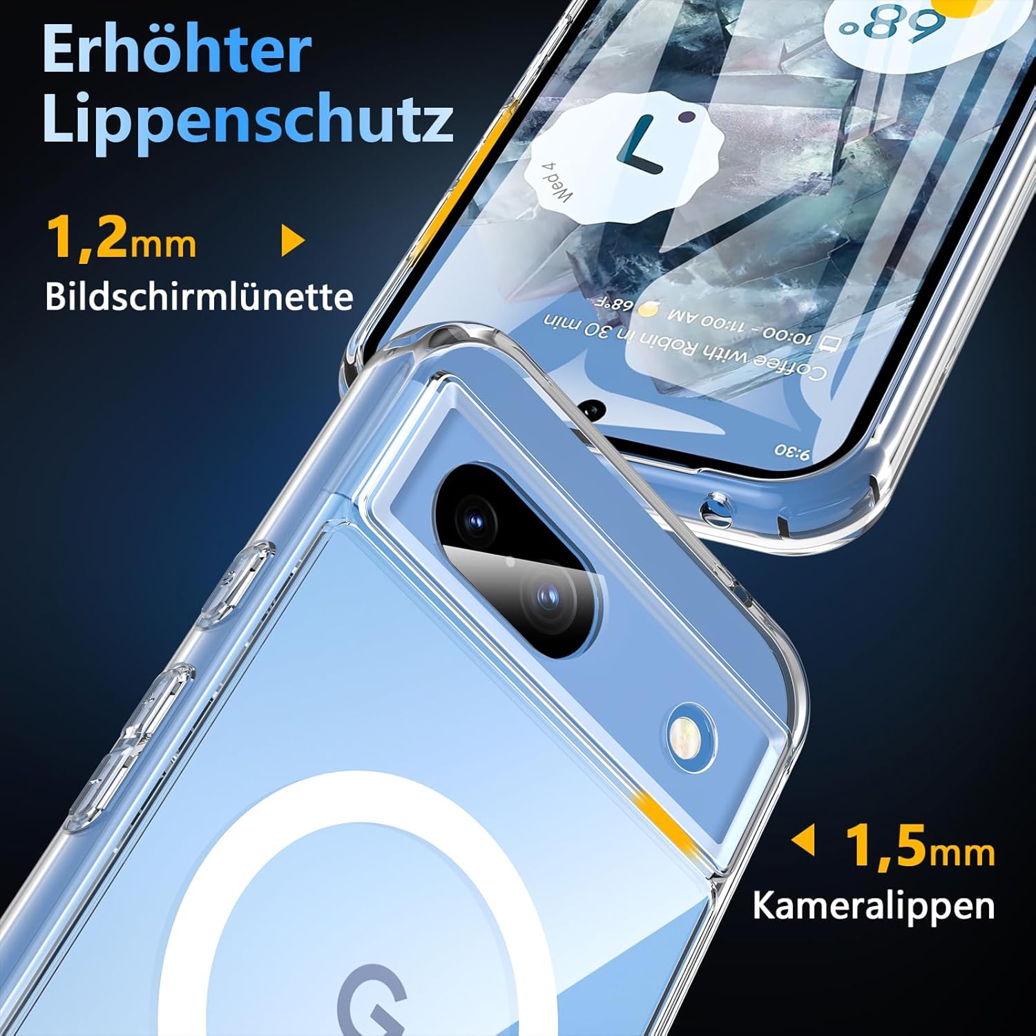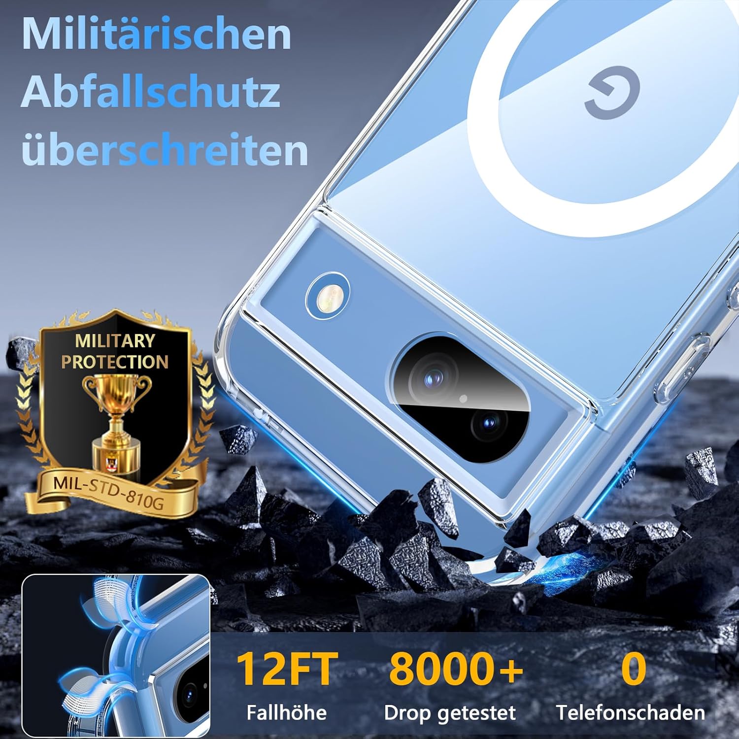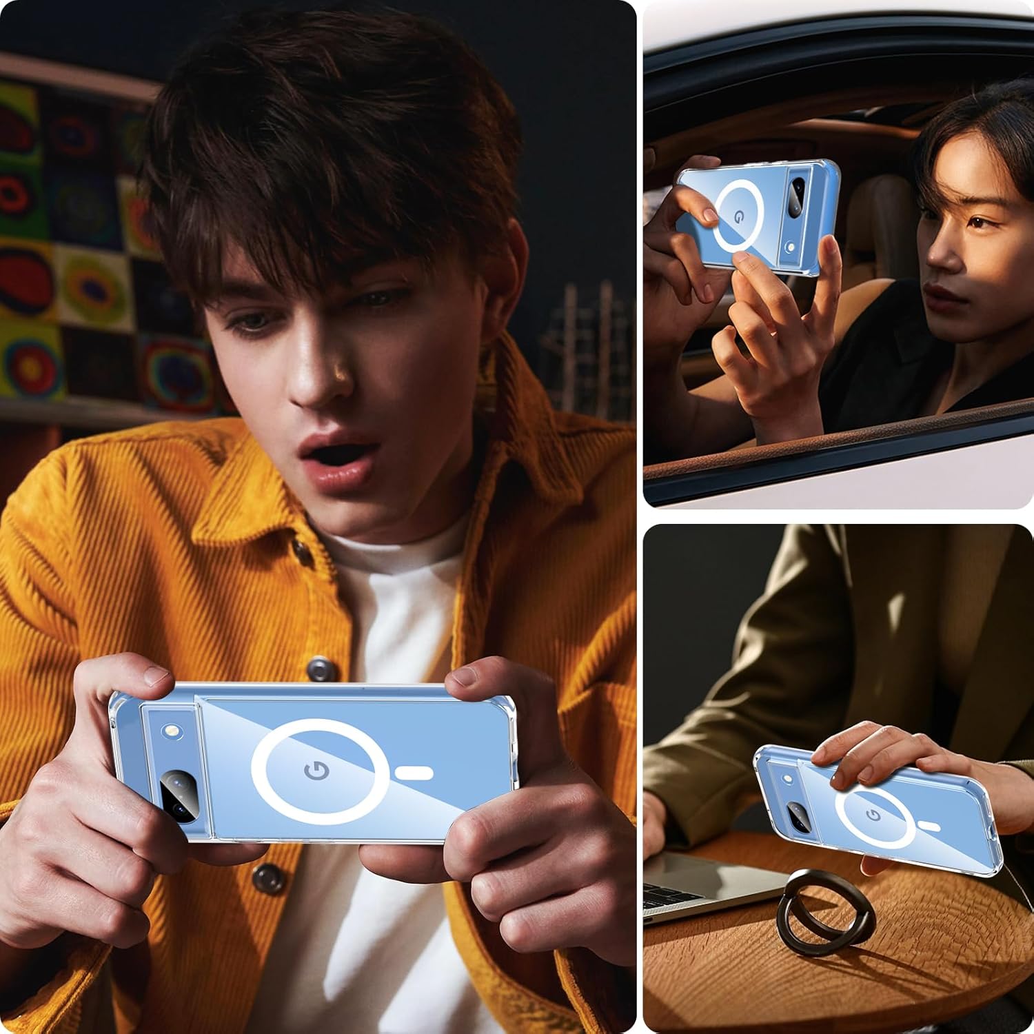 OWKEY Кейс за Google Pixel 8A 5G, Магнитен калъф за мобилен телефон Google Pixel 8A за MagSafe със защитно стъкло, тънък военен защитен калъф за Google Pixel 8A (прозрачен)