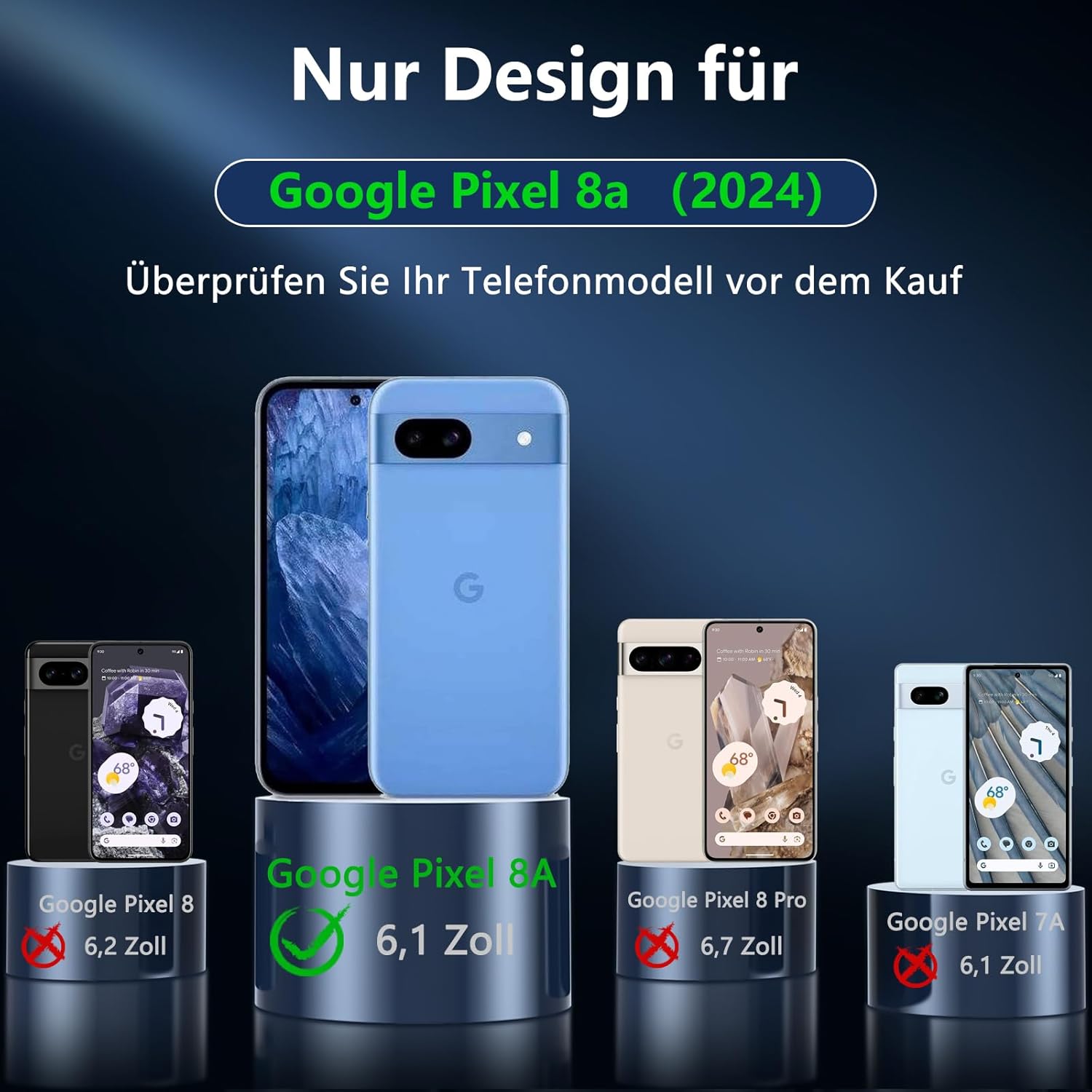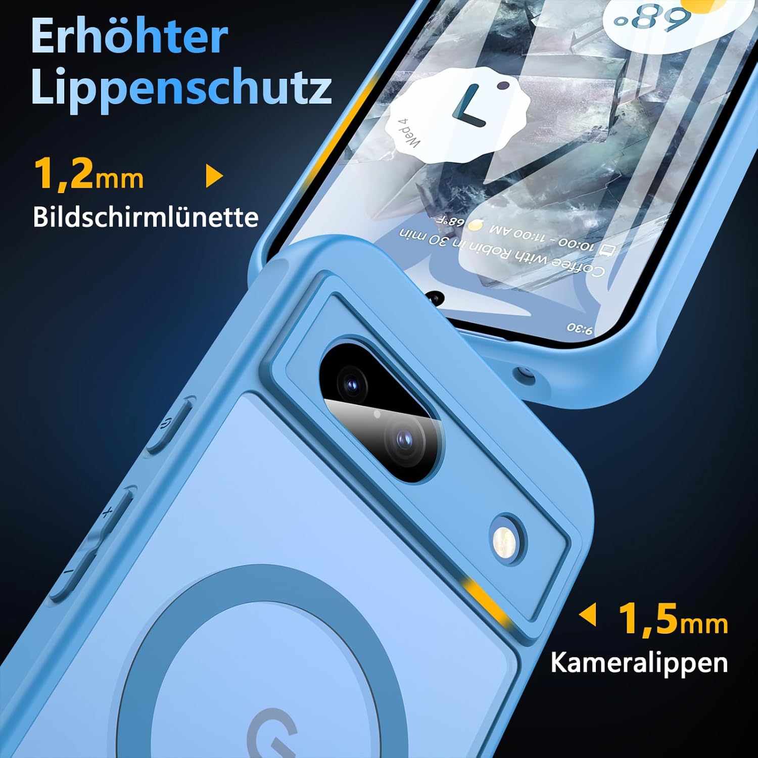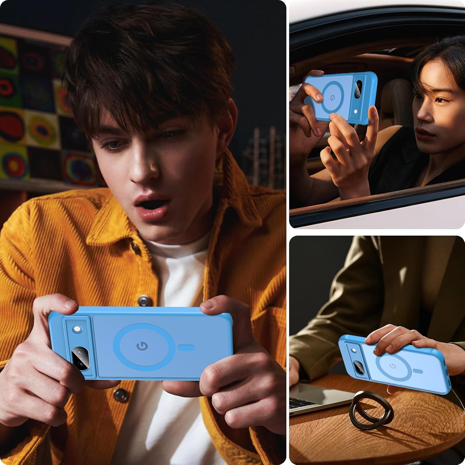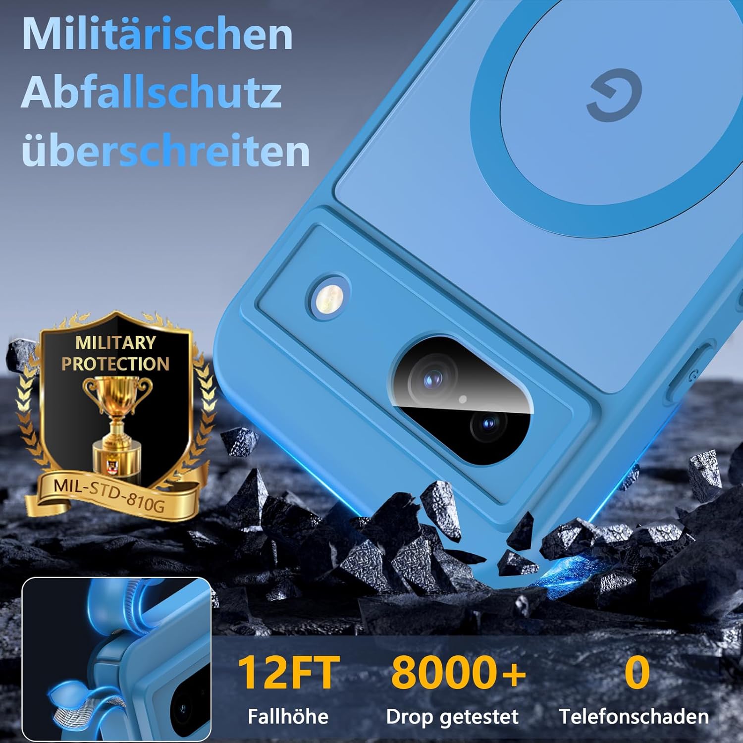 OWKEY Кейс за Google Pixel 8A 5G, Магнитен калъф за мобилен телефон Google Pixel 8A за MagSafe със защитно стъкло, тънък военен защитен калъф за Google Pixel 8A (син)