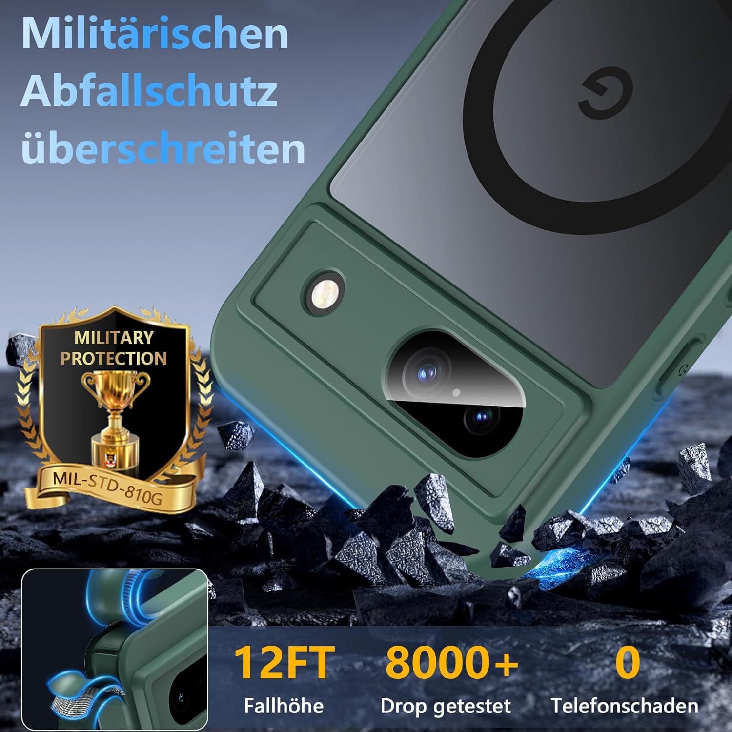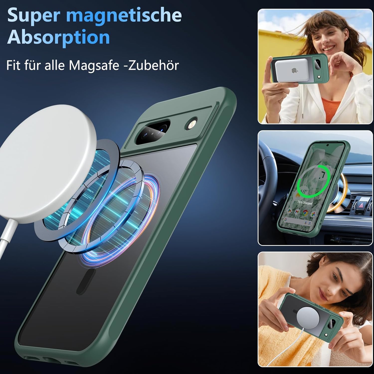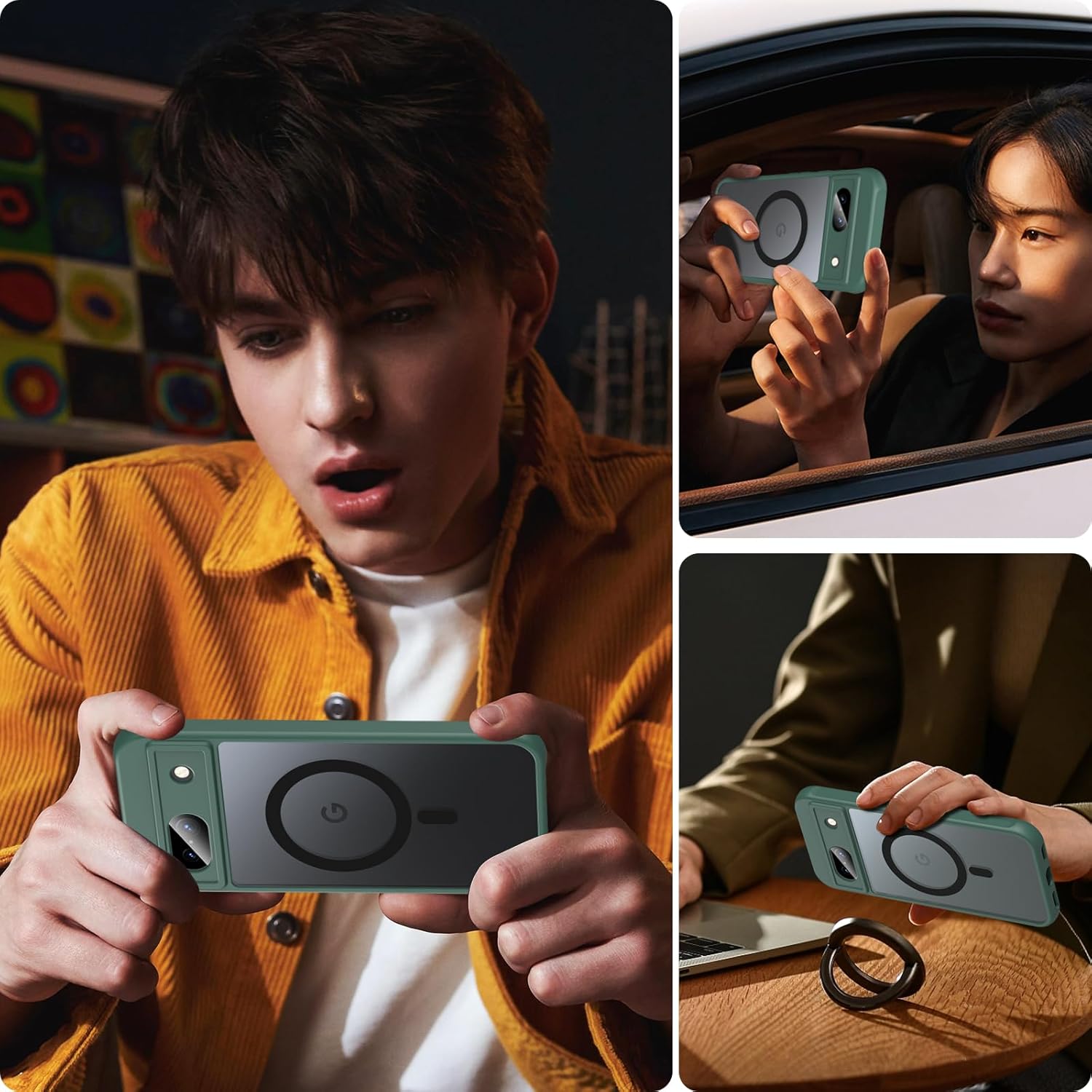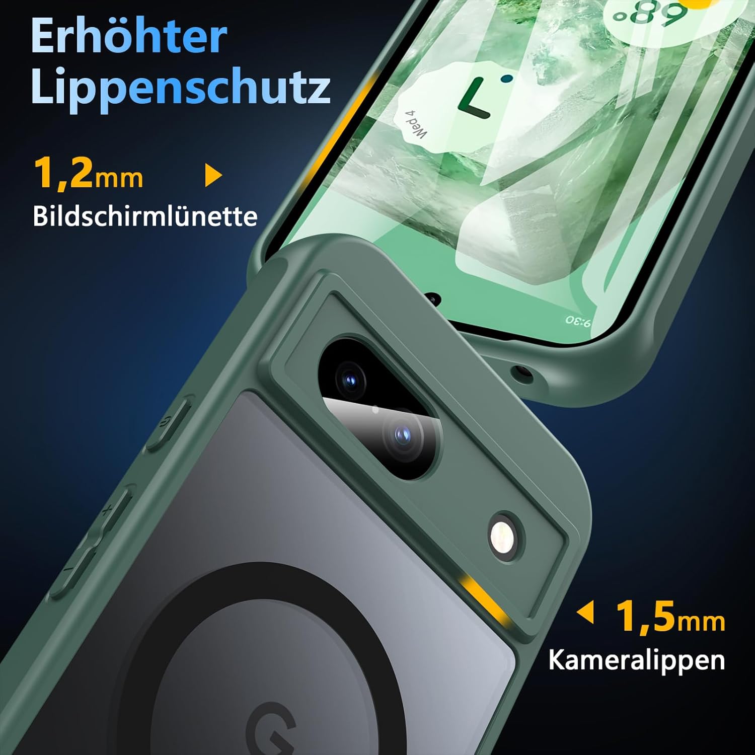 OWKEY Кейс за Google Pixel 8A 5G, Магнитен калъф за мобилен телефон Google Pixel 8A за MagSafe със защитно стъкло, тънък военен защитен калъф за Google Pixel 8A (зелен)