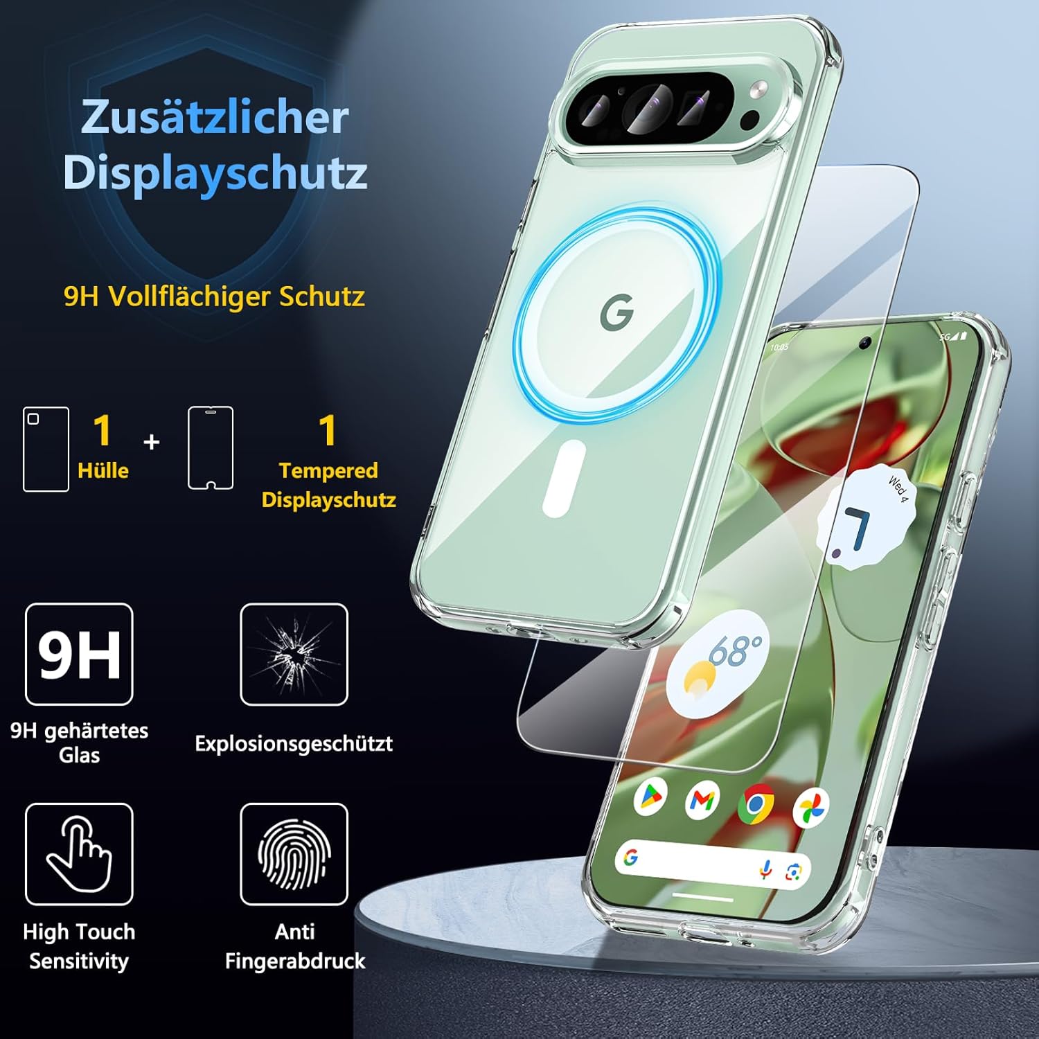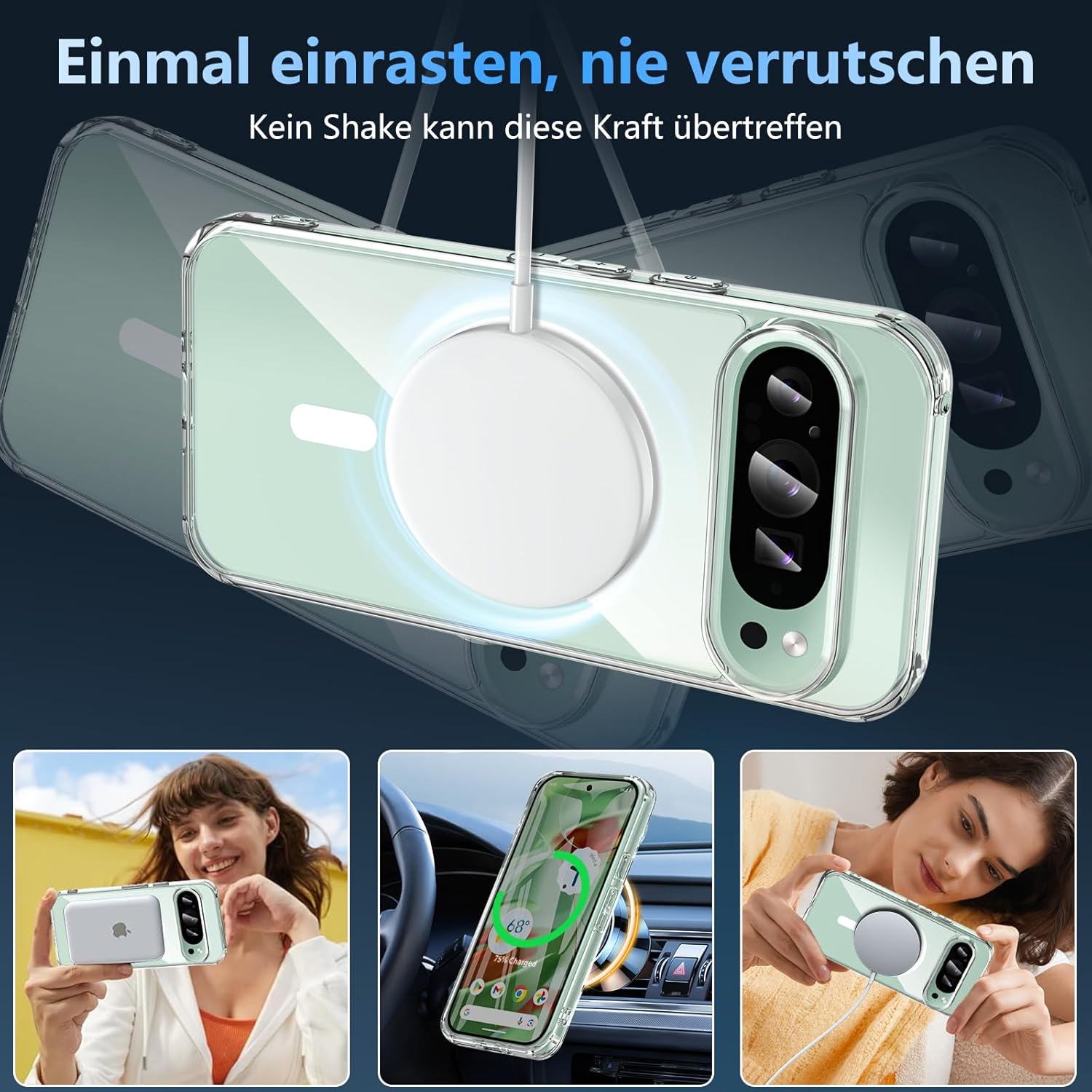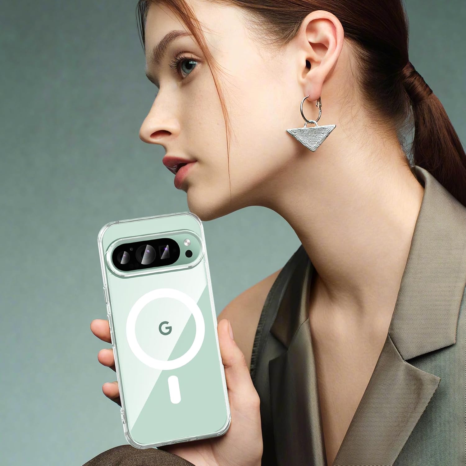 OWKEY Кейс за Google Pixel 9 Pro, Магнитен кейс за Google Pixel 9 за Magsafe със закалено стъкло, [Военен клас защита] Удароустойчив кейс за мобилен телефон PixeL9 Pro, тънък защитен калъф