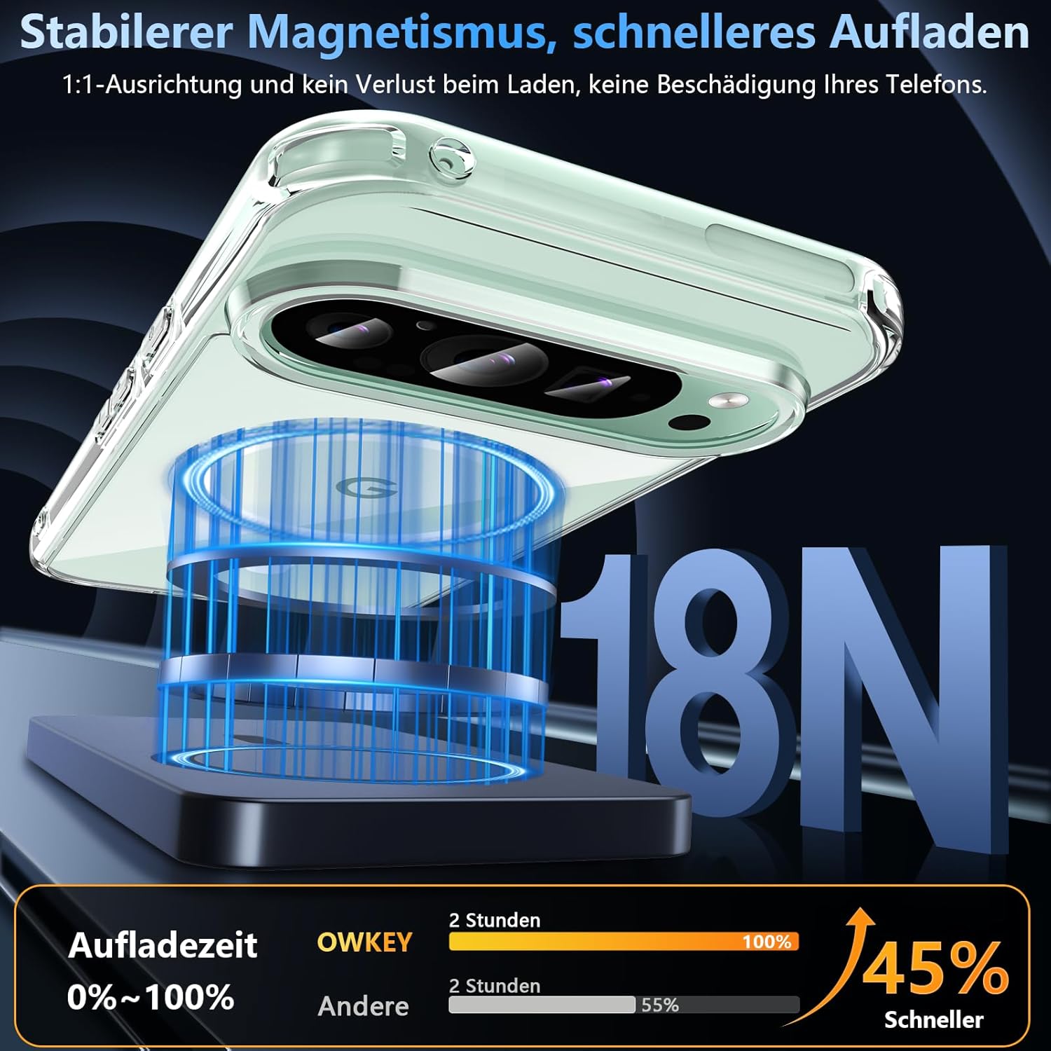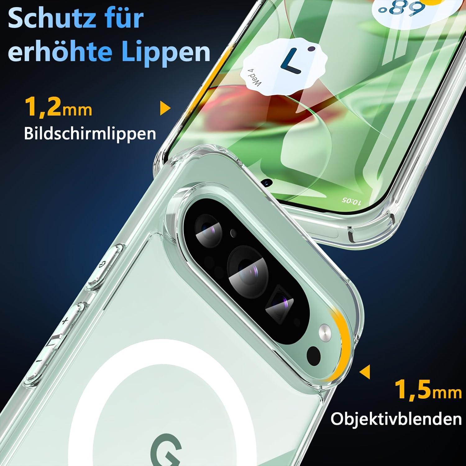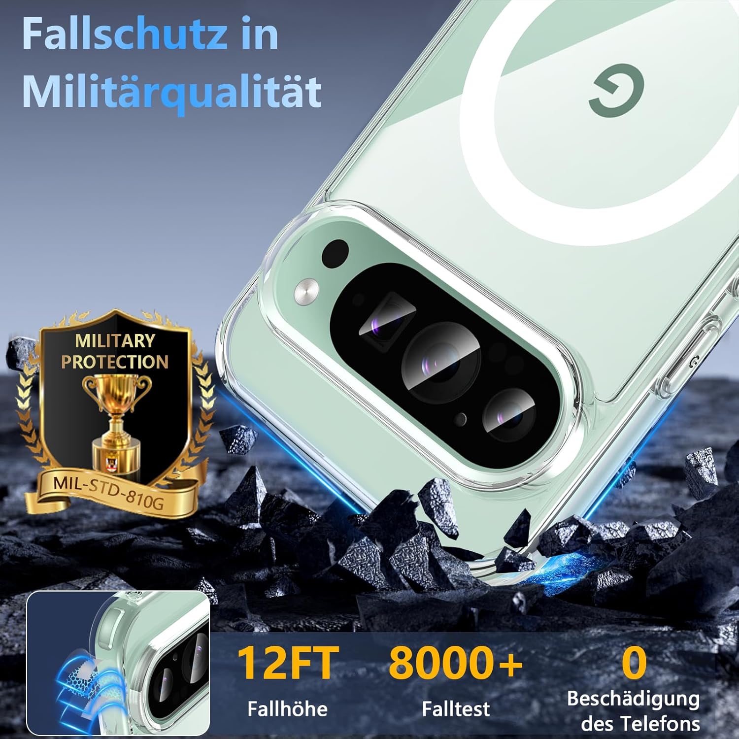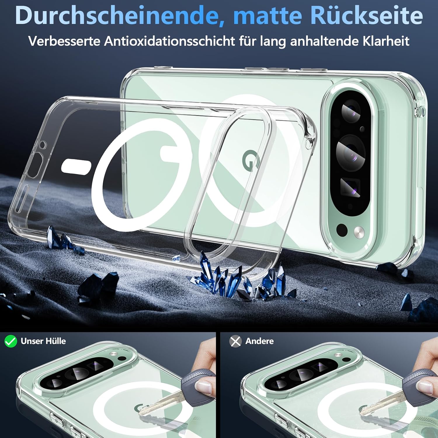 OWKEY Кейс за Google Pixel 9 Pro, Магнитен кейс за Google Pixel 9 за Magsafe със закалено стъкло, [Военен клас защита] Удароустойчив кейс за мобилен телефон PixeL9 Pro, тънък защитен калъф