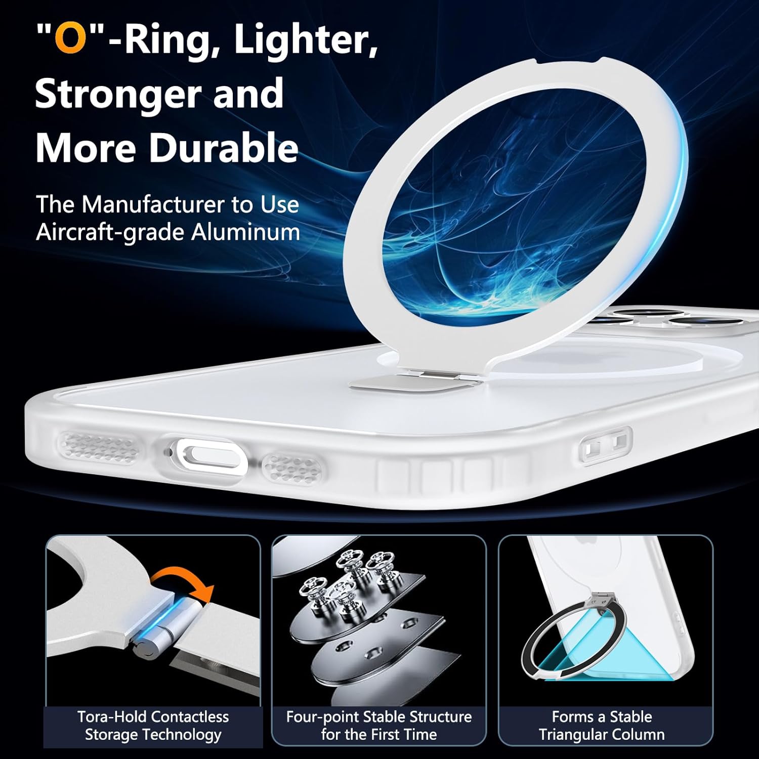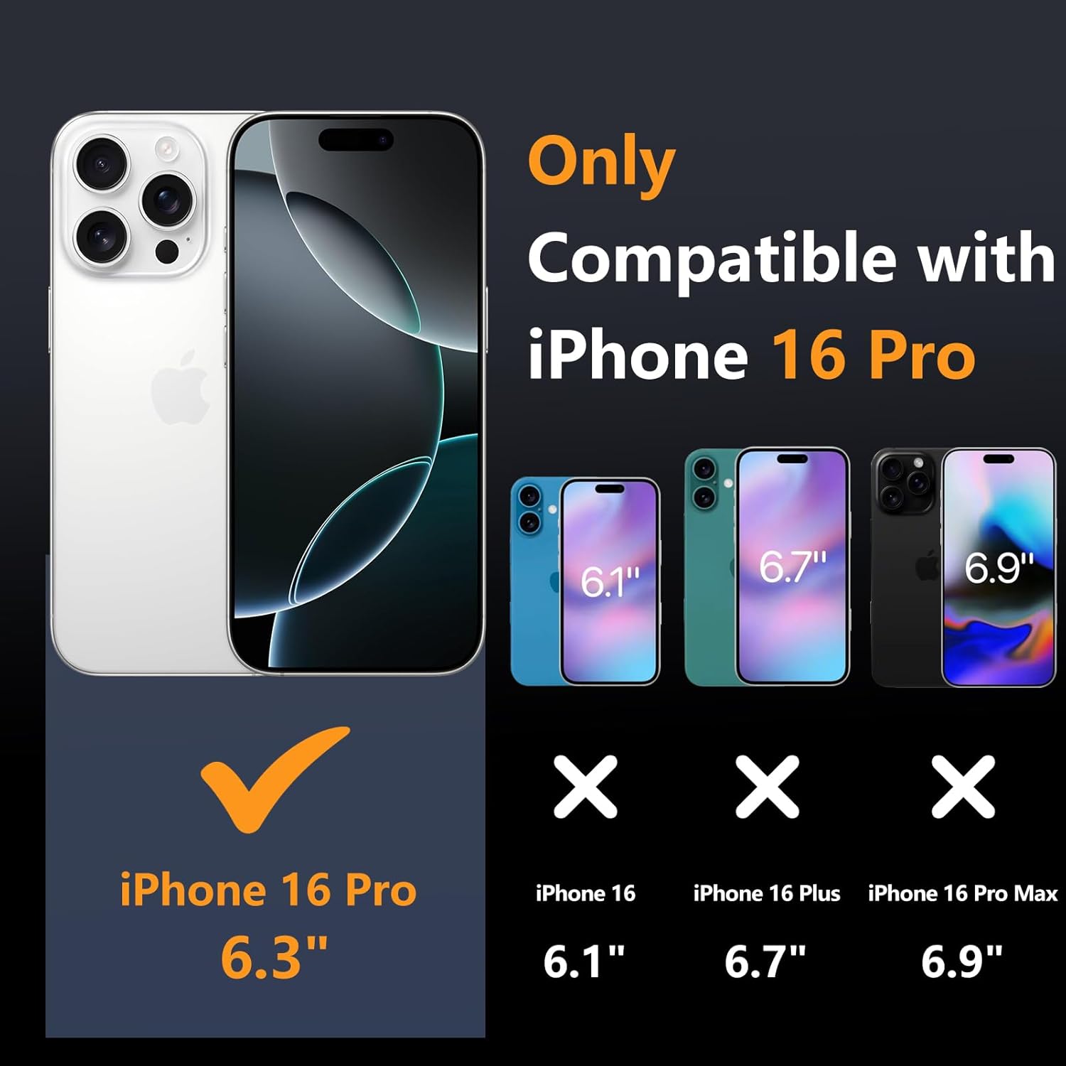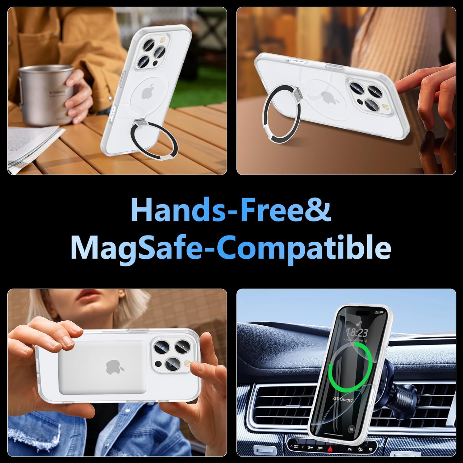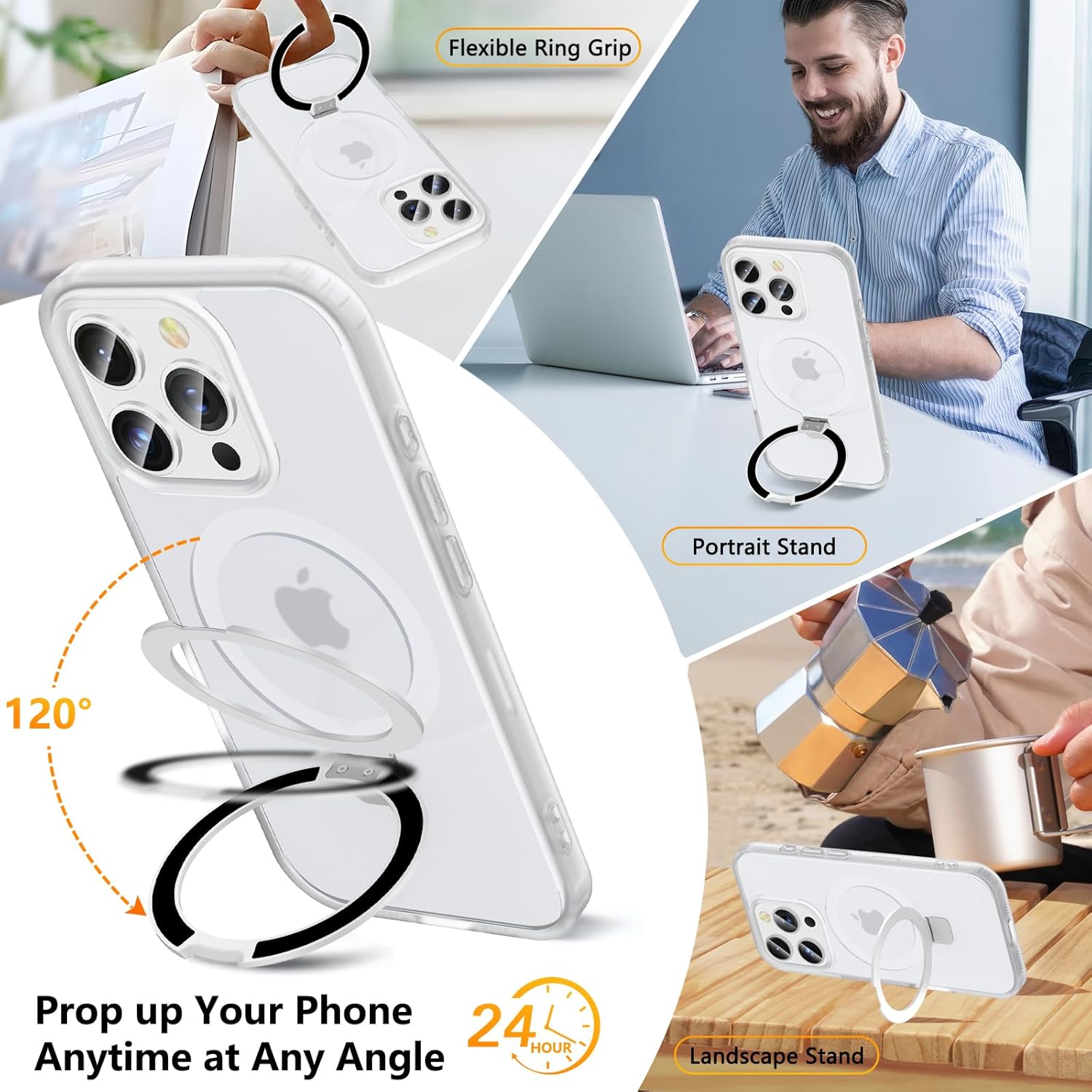 OWKEY Кейс за iPhone 16 Pro със стойка, съвместим с MagSafe, магнитен калъф за мобилен телефон за iPhone 16 Pro със закалено стъкло [военен клас защита] удароустойчив, прозрачен, матов, тънък