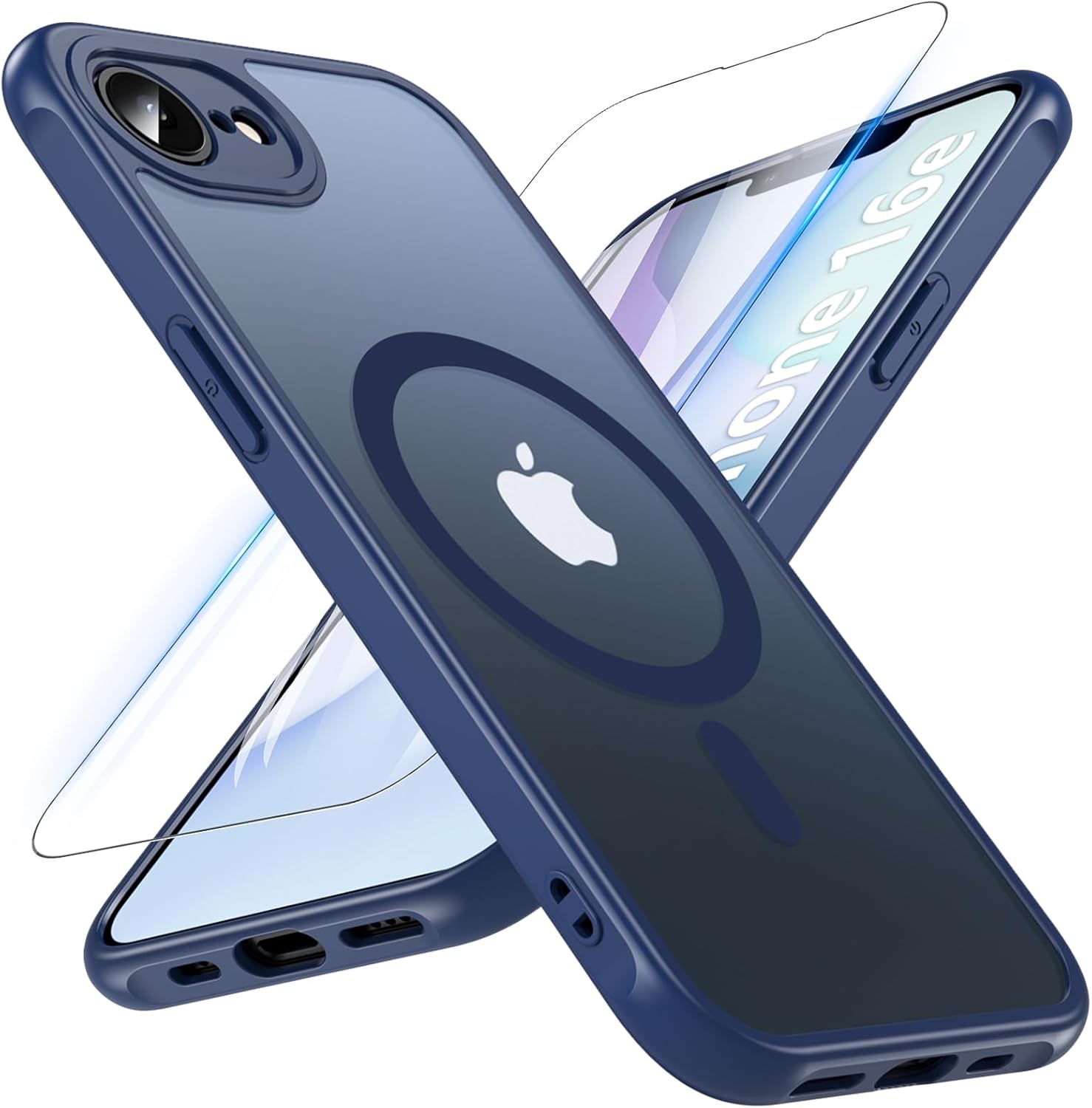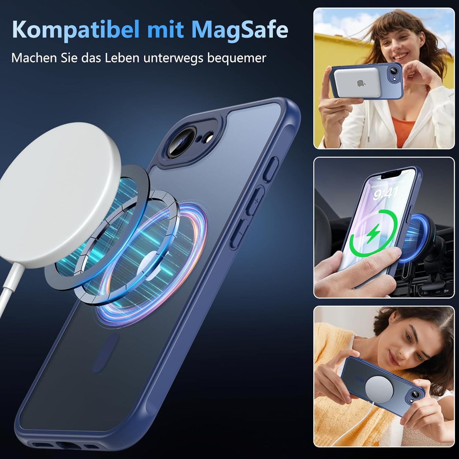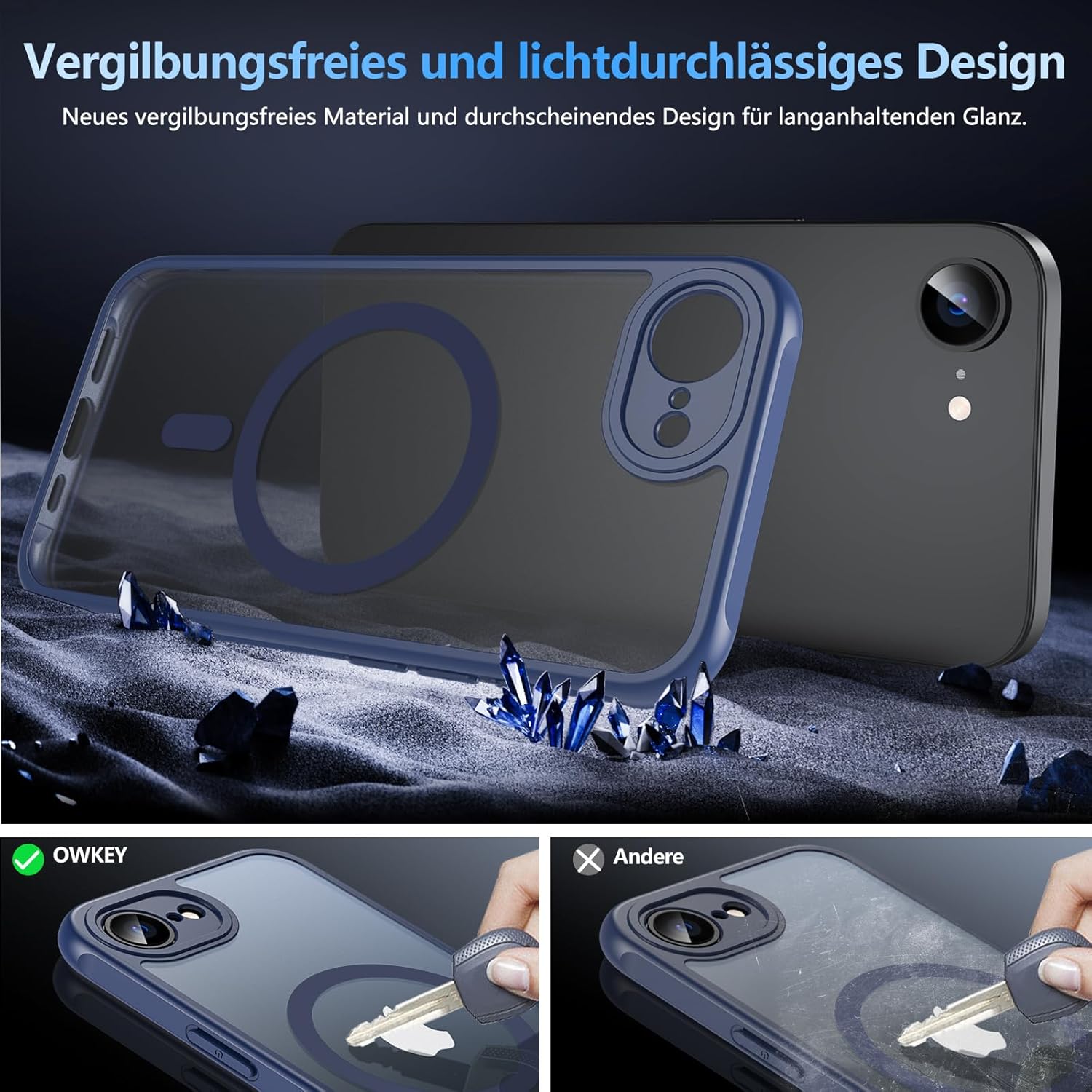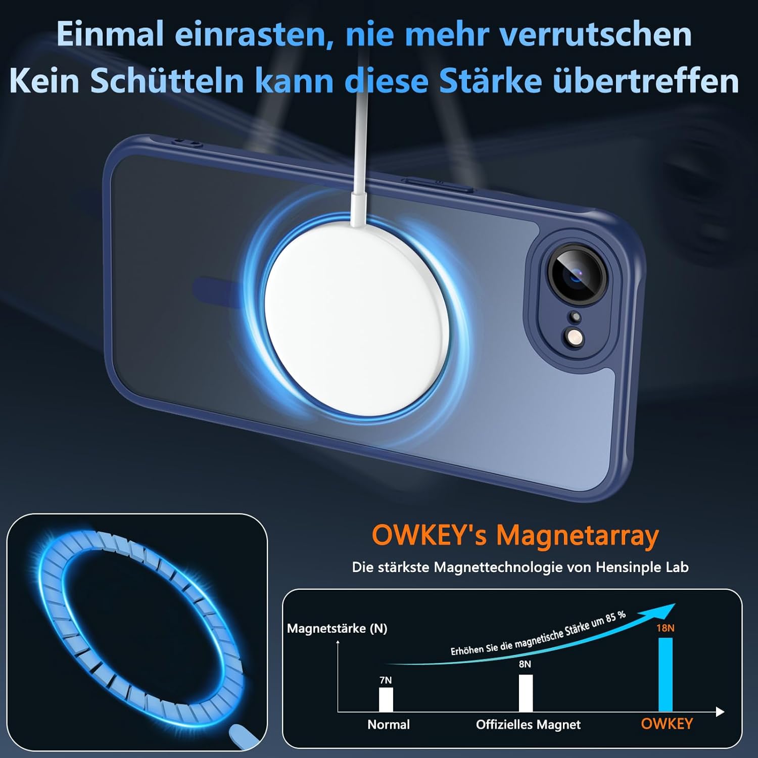 OWKEY Кейс за iPhone 16e/iPhone SE 4/iPhone SE 2025 за Magsafe със закалено стъкло, [Военен клас защита] Магнитен прозрачен удароустойчив калъф за мобилен телефон iPhone SE 4/16E Тънък калъф