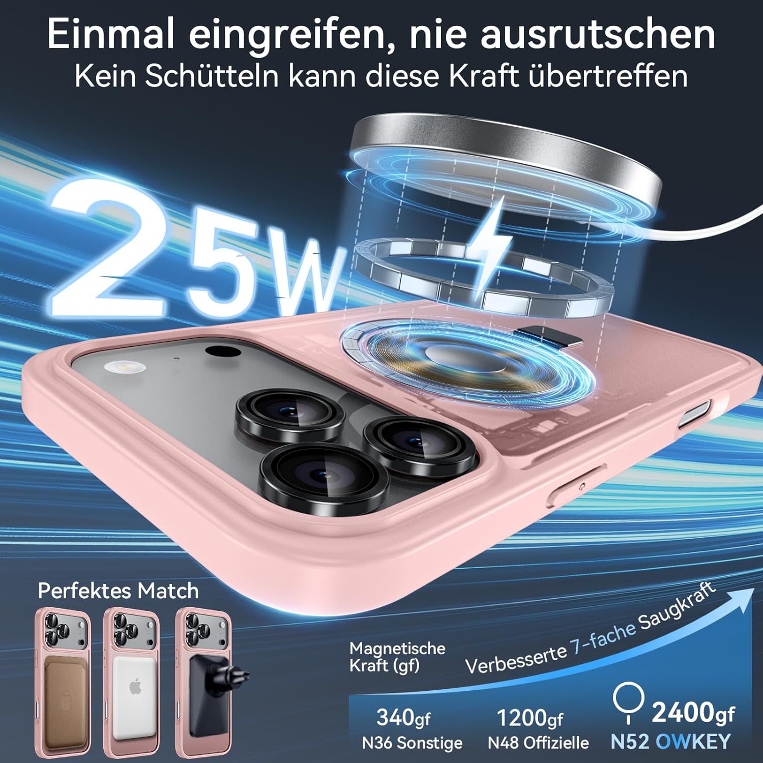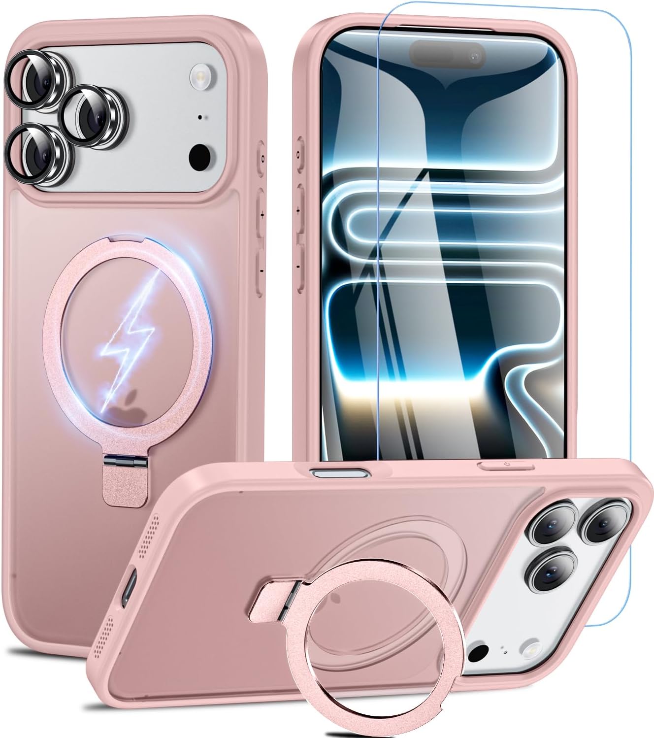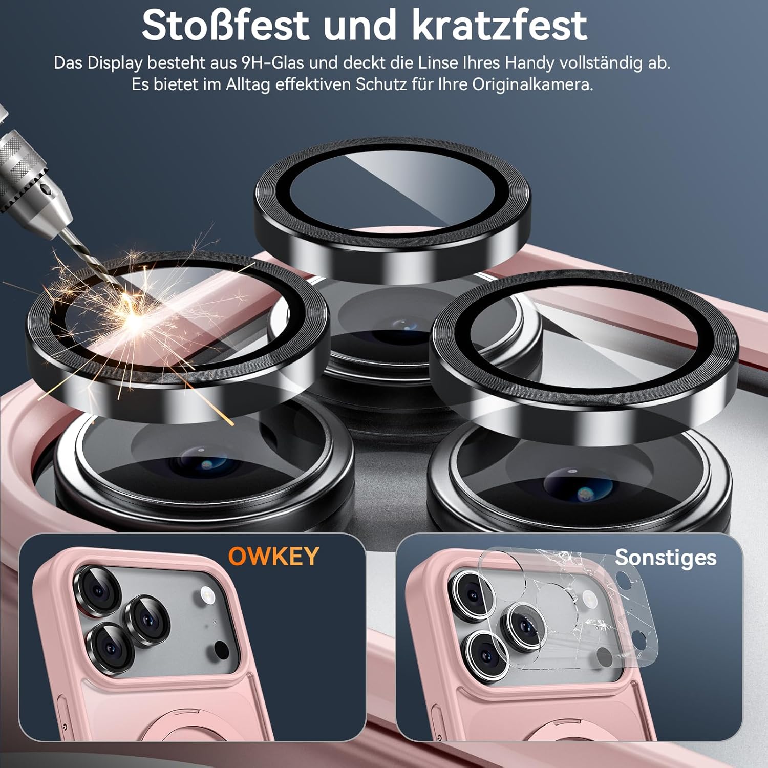 OWKEY Кейс за iPhone 17 Pro Max със защитно стъкло за камерата, съвместим с MagSafe, магнитен кейс за iPhone 17 Pro Max 6.9 инча, регулируема стойка, защитен кейс за мобилен телефон по военен стандарт