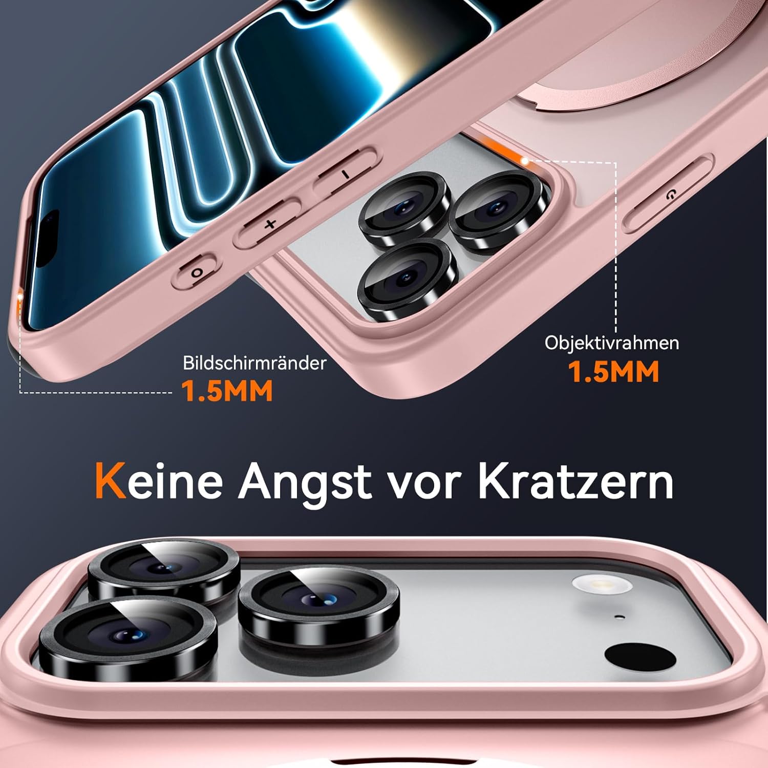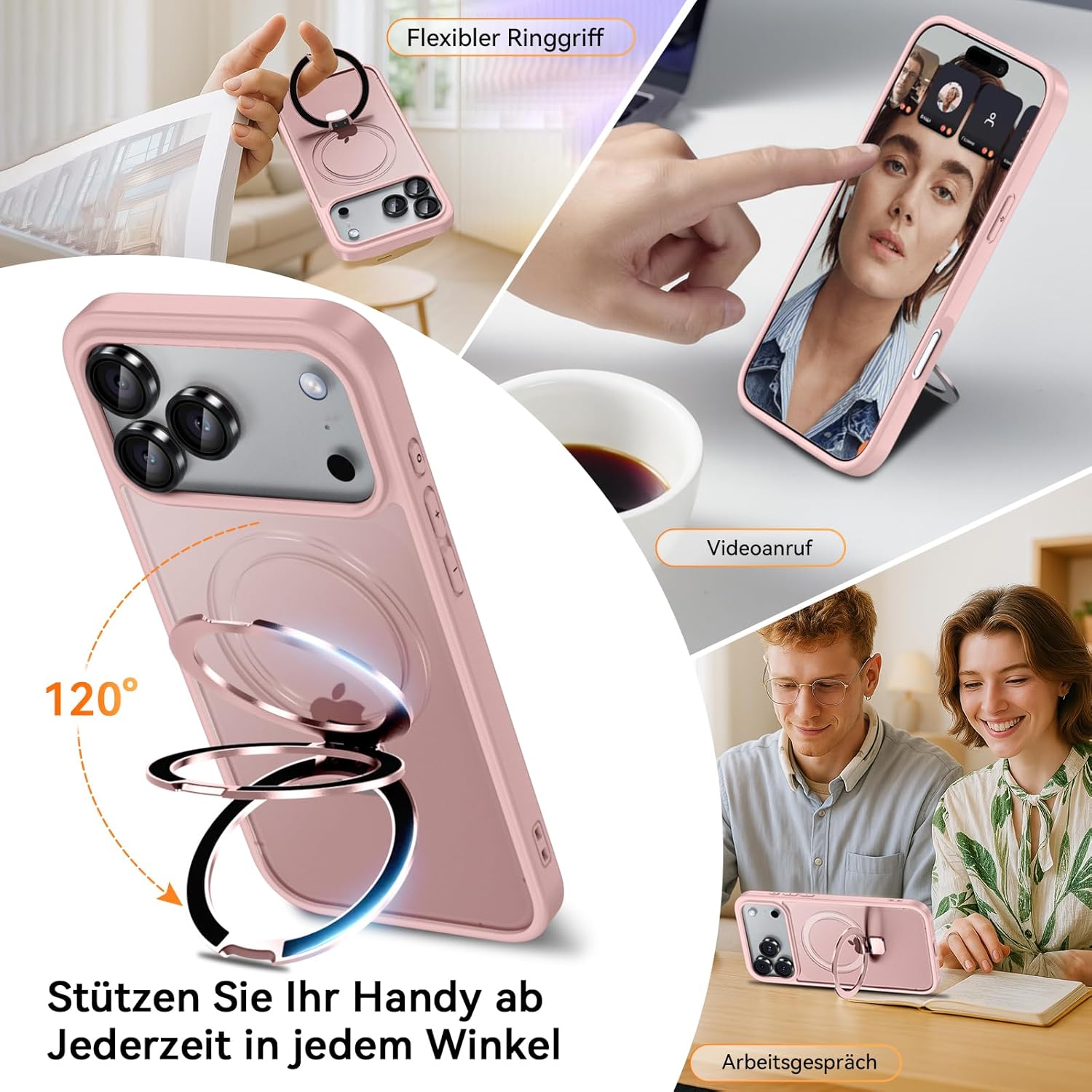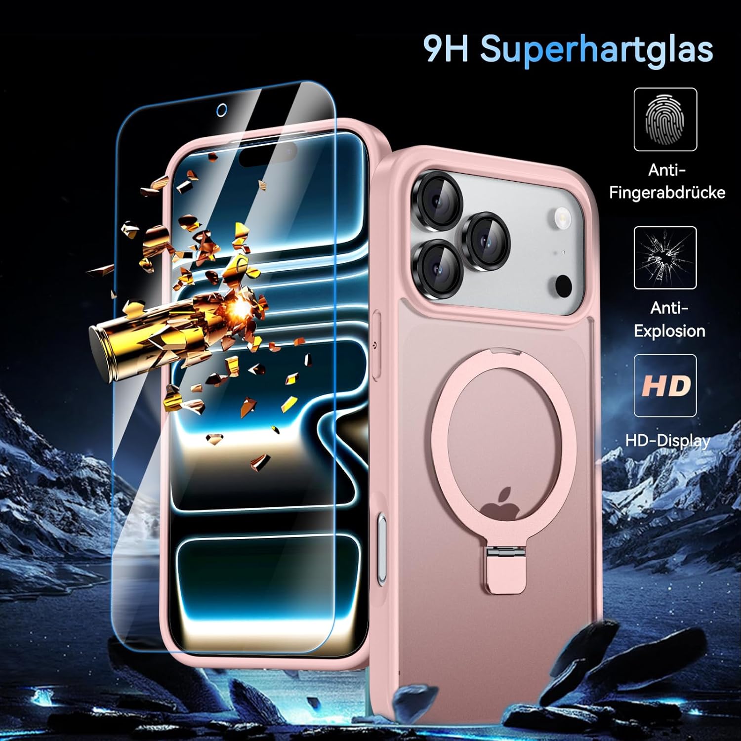 OWKEY Кейс за iPhone 17 Pro Max със защитно стъкло за камерата, съвместим с MagSafe, магнитен кейс за iPhone 17 Pro Max 6.9 инча, регулируема стойка, защитен кейс за мобилен телефон по военен стандарт