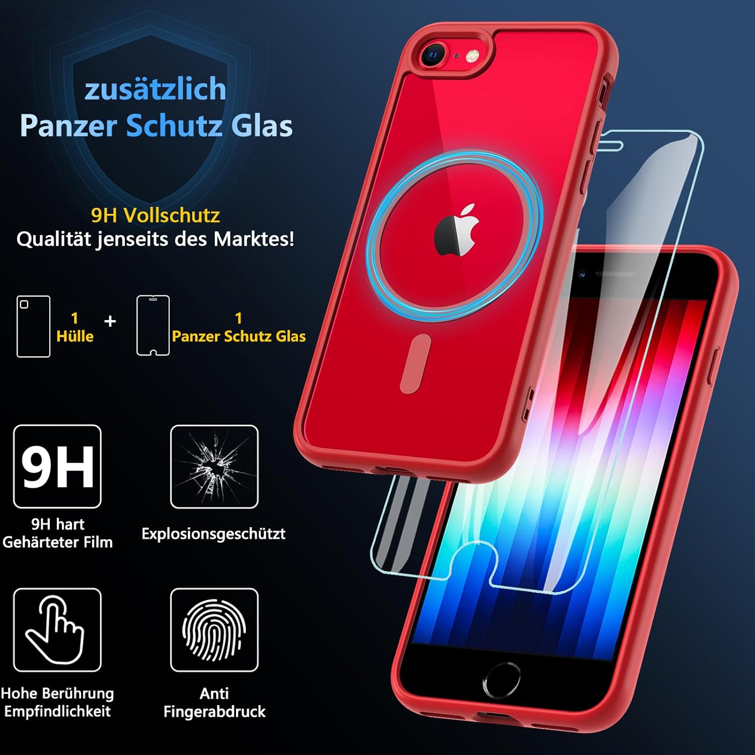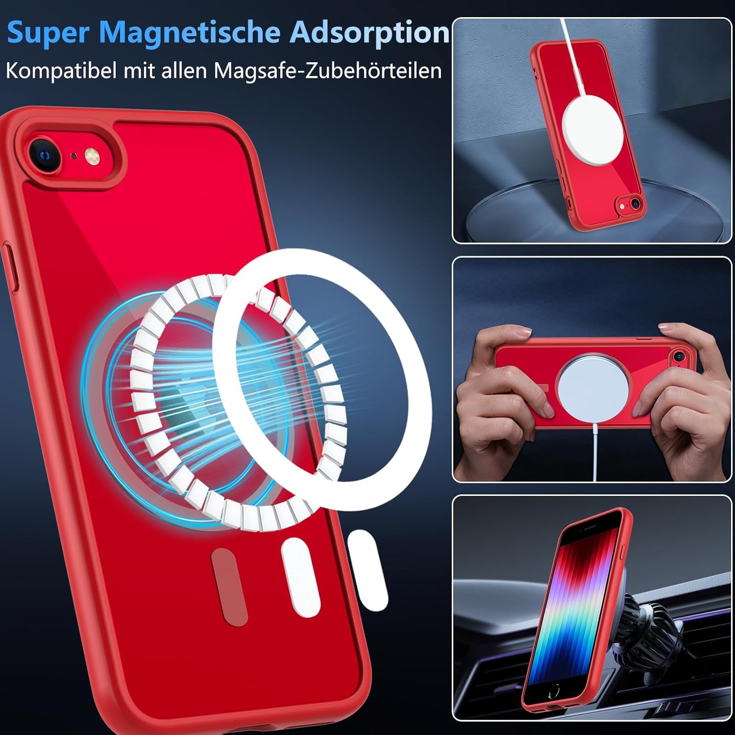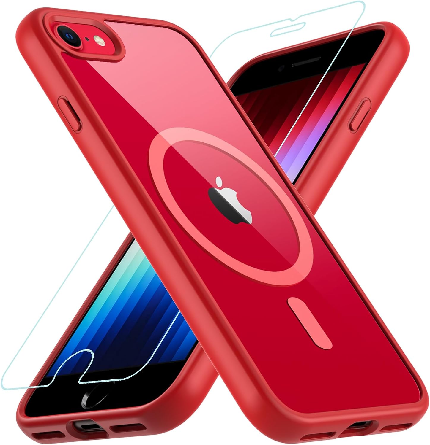 OWKEY Кейс за iPhone SE 2020/2022 (iPhone SE 2/3), iPhone 8/iPhone 7, Магнитен защитен кейс за MagSafe с 9H защитно стъкло, Прозрачен заден калъф за мобилен телефон за iPhone 8/7/6S/6 (червен)