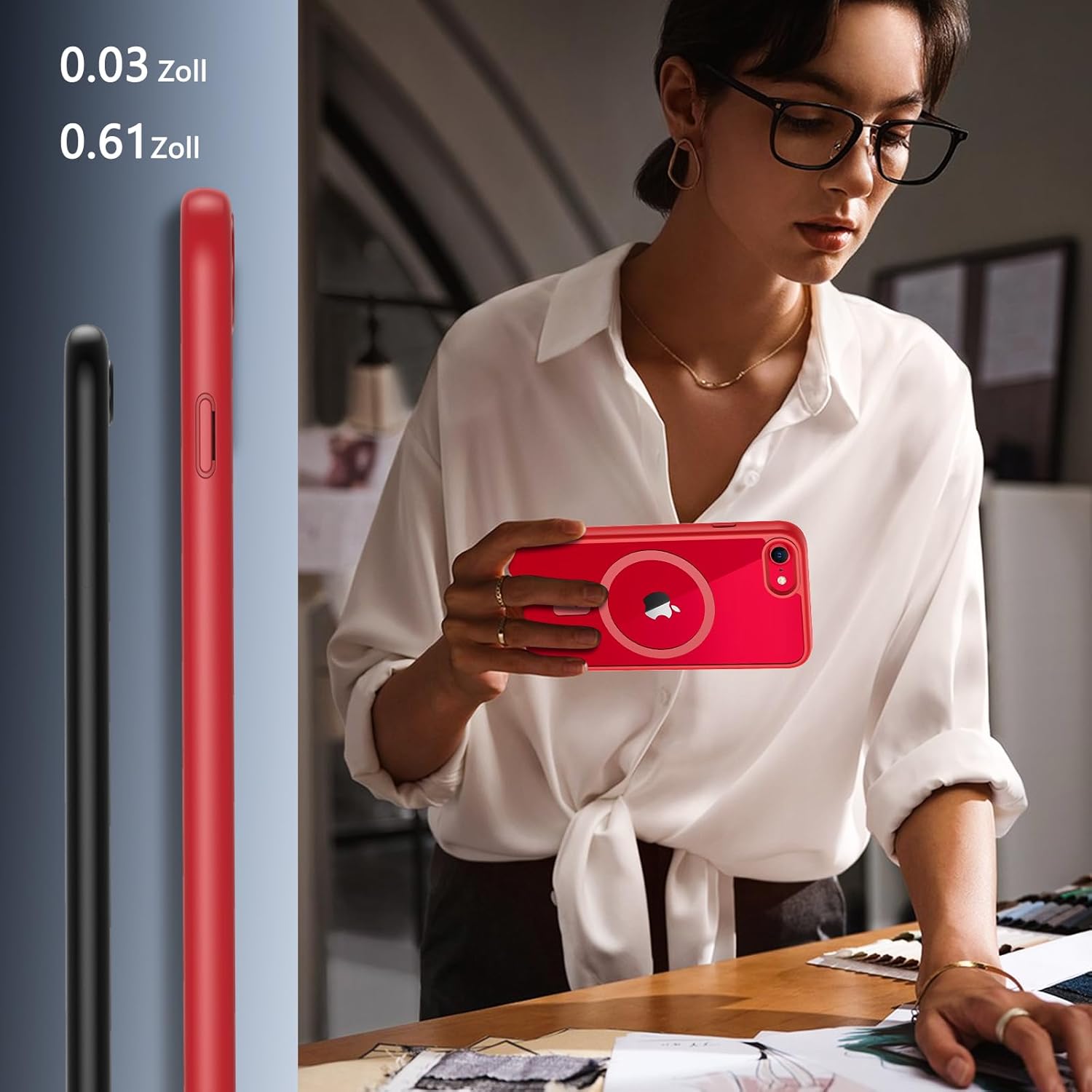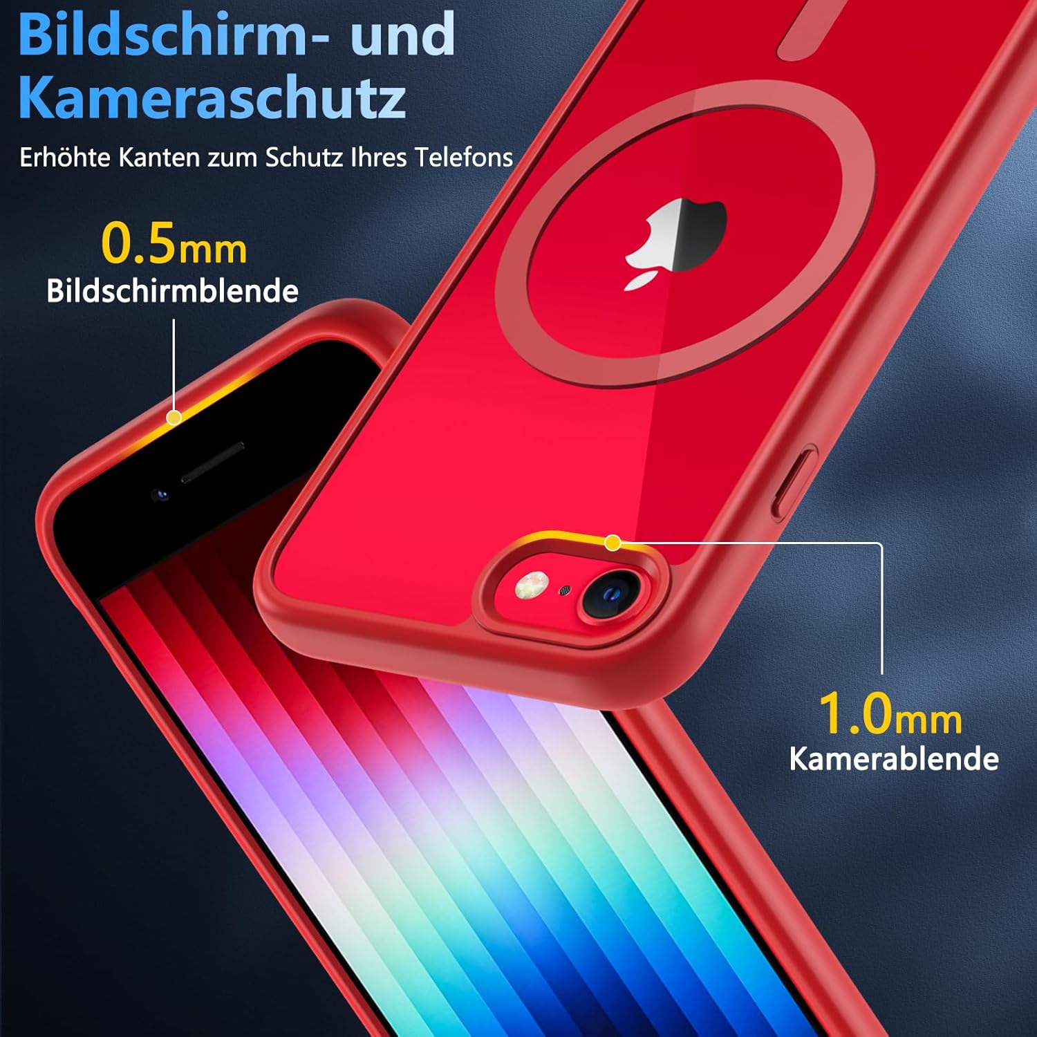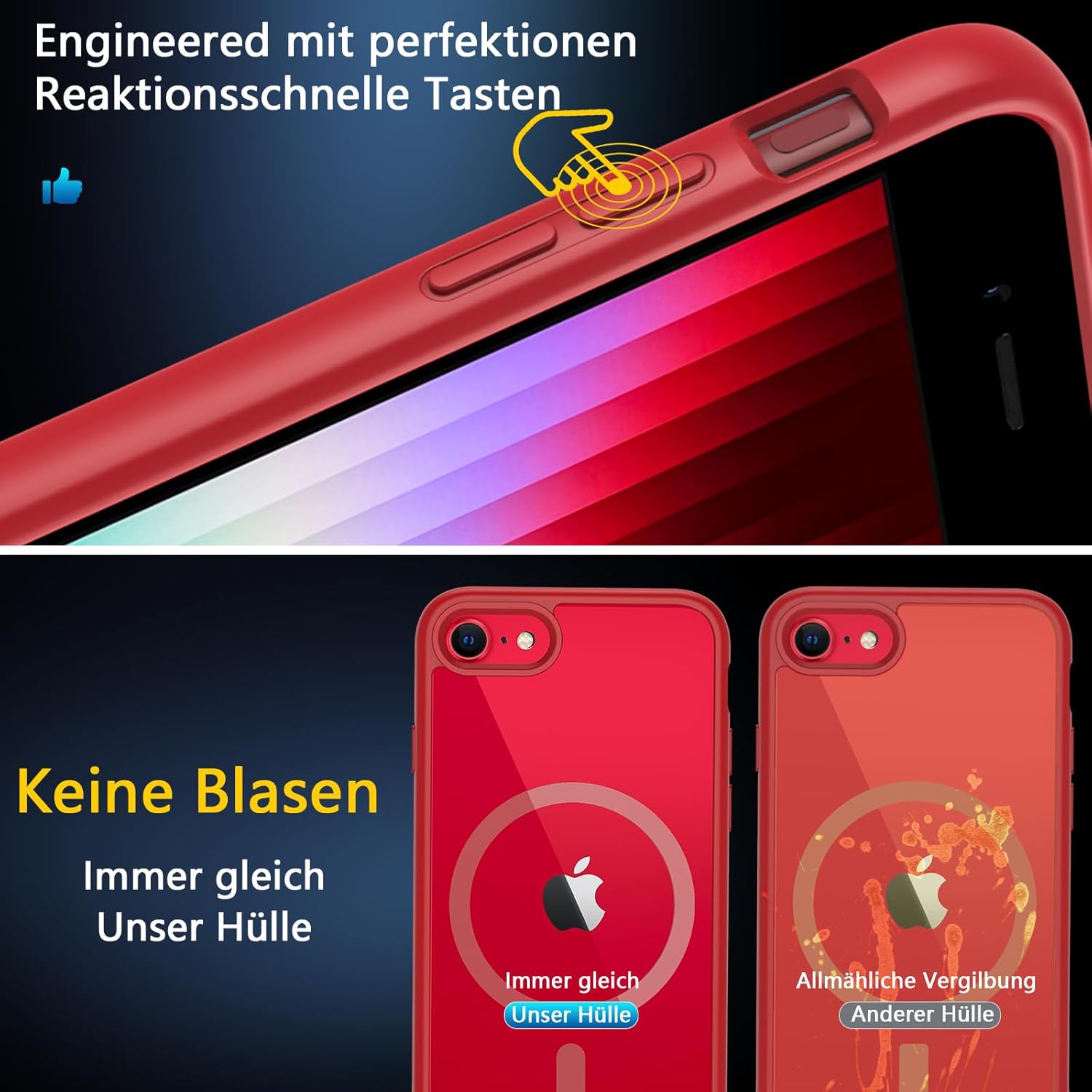 OWKEY Кейс за iPhone SE 2020/2022 (iPhone SE 2/3), iPhone 8/iPhone 7, Магнитен защитен кейс за MagSafe с 9H защитно стъкло, Прозрачен заден калъф за мобилен телефон за iPhone 8/7/6S/6 (червен)