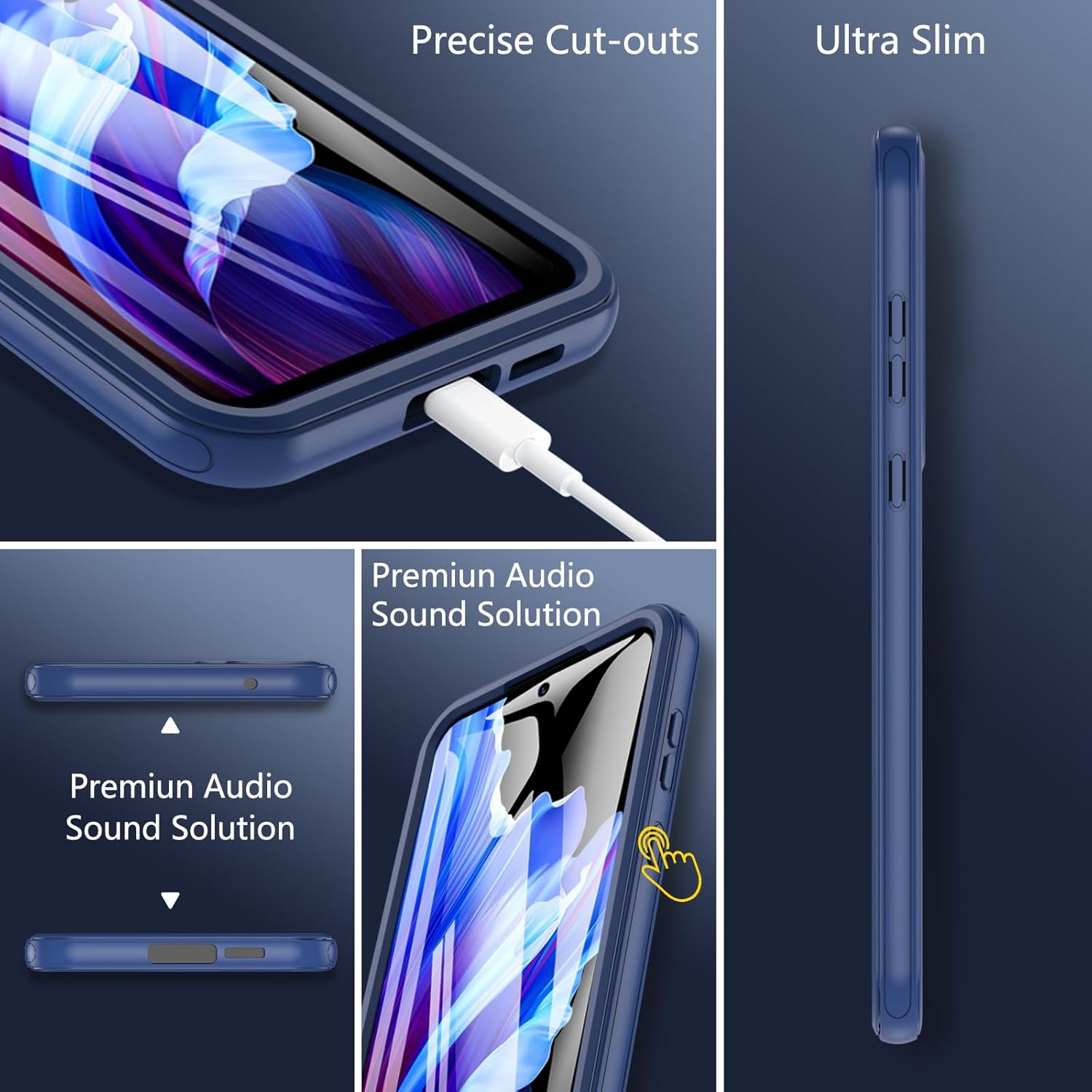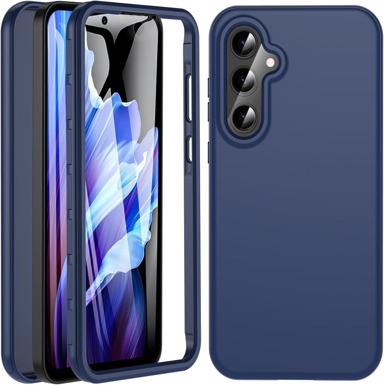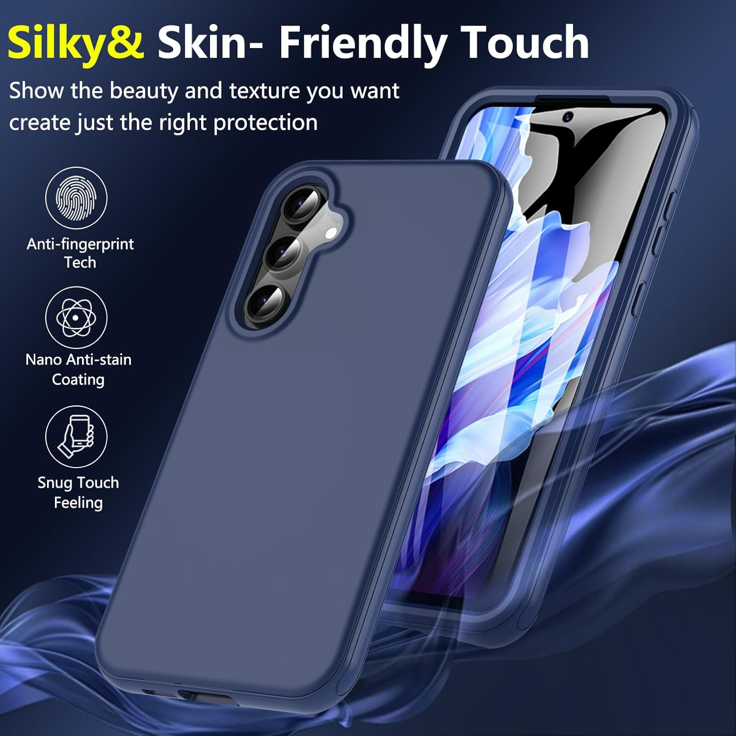 OWKEY Кейс за Samsung Galaxy A55 5G, Калъф за мобилен телефон Samsung A55 5G, 360° всестранна защита, Удароустойчив силиконов здрав калъф-бъмпер, Външен калъф с вграден протектор за екрана, Защитен