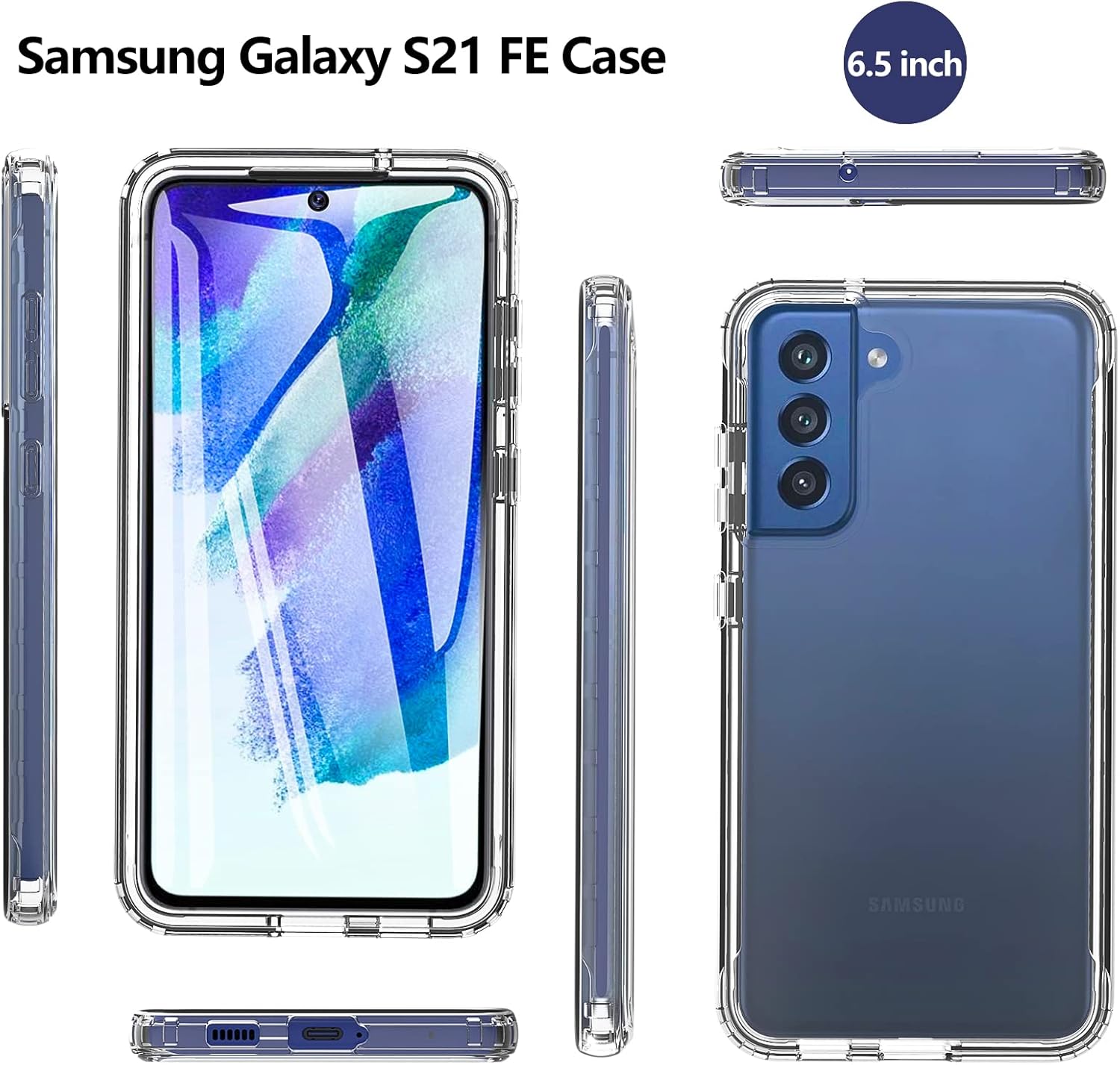 OWKEY Кейс за Samsung Galaxy S21 FE Удароустойчив силиконов калъф за мобилен телефон, 360° всестранна защита с вграден протектор за екрана, устойчив на надраскване калъф-бъмпер за Galaxy S21 FE