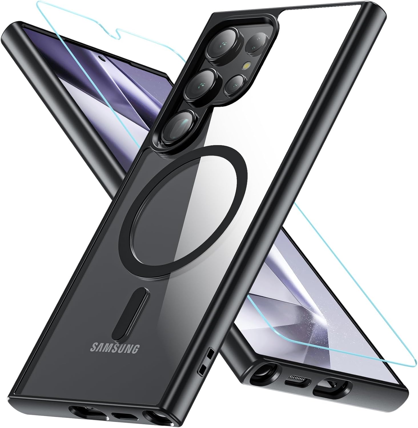 OWKEY Кейс за Samsung Galaxy S24 Ultra 5G 6.8 инча за MagSafe със закалено стъкло, [Военен клас защита] Удароустойчив магнитен кейс за мобилен телефон Samsung S24 Ultra, тънък калъф за външна употреба