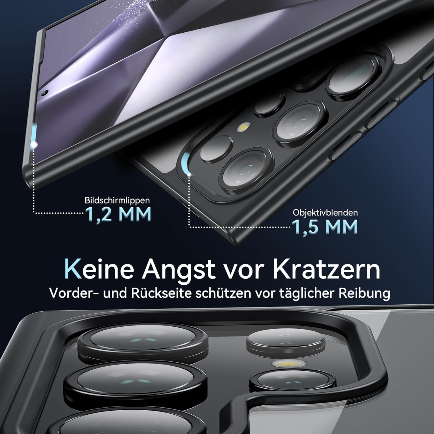 • Reliable 9H protective glass and camera protection: The screen protector of the Samsung S25 Ultra case is made of shatterproof 9H aluminium silicate glass that resists scratches and chips, provides a bare touch feel on the screen and increases visual quality by a 1.5 mm raised screen edge and 1.2 mm raised camera edge to lift the screen and camera from flat surfaces to protect the front screen and rear camera from breakage.